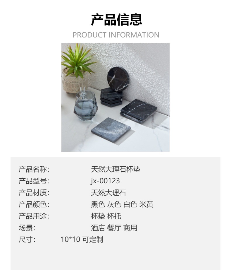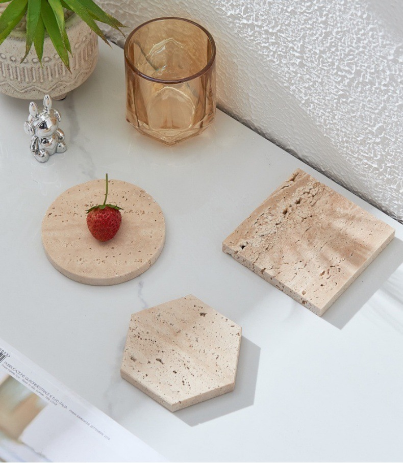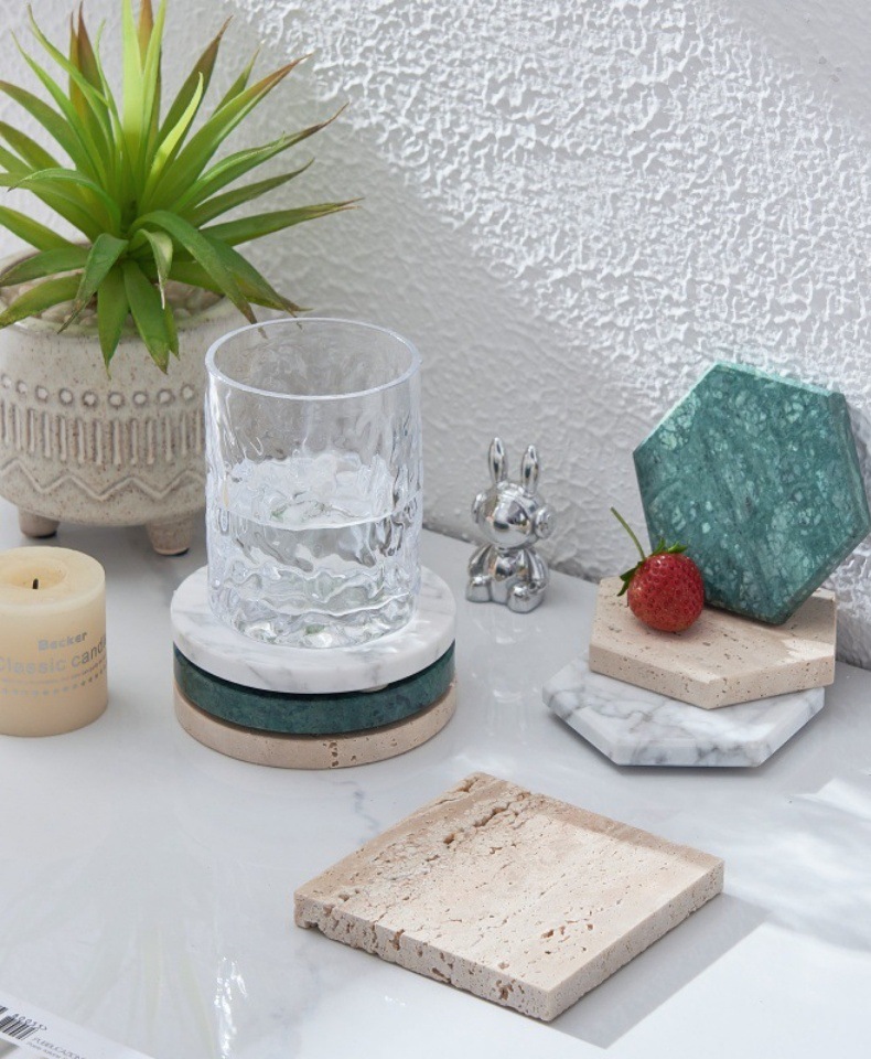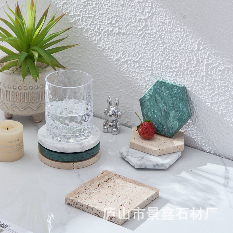 공장 천연 대리석 코스터 광장 라운드 코스터 식사 테이블 단열 차 매트 호텔 장식 장식품