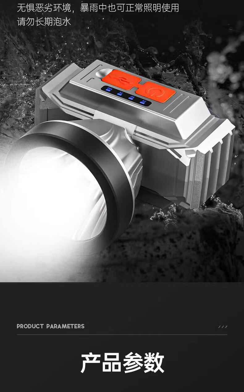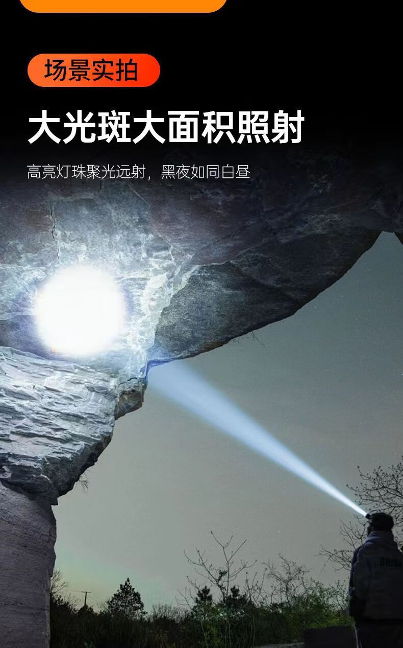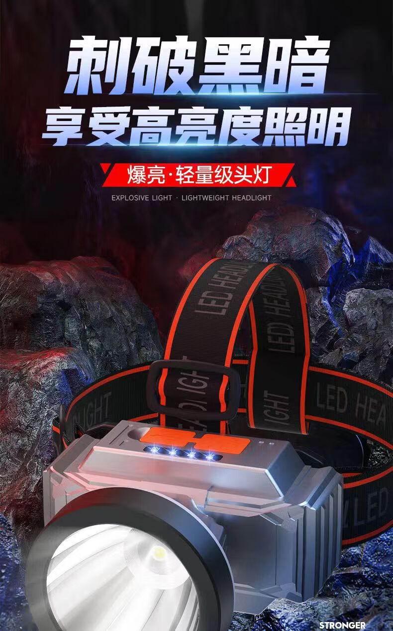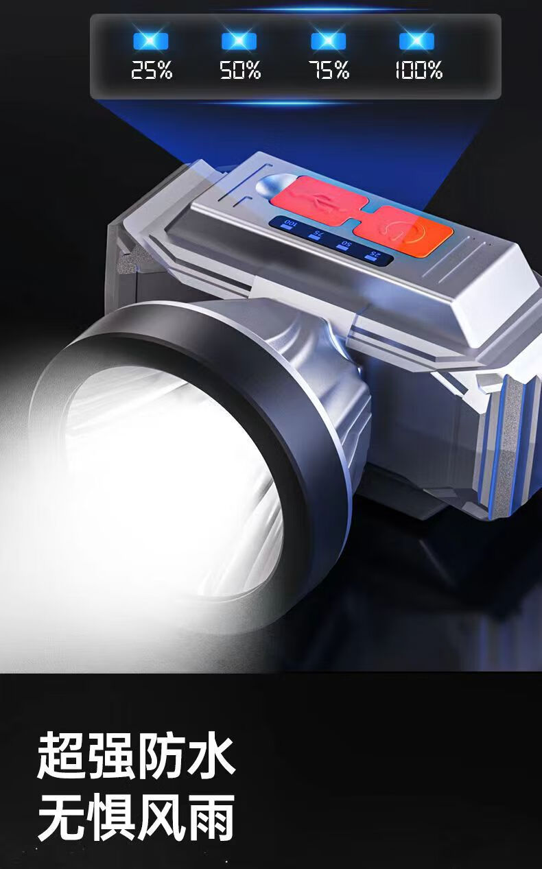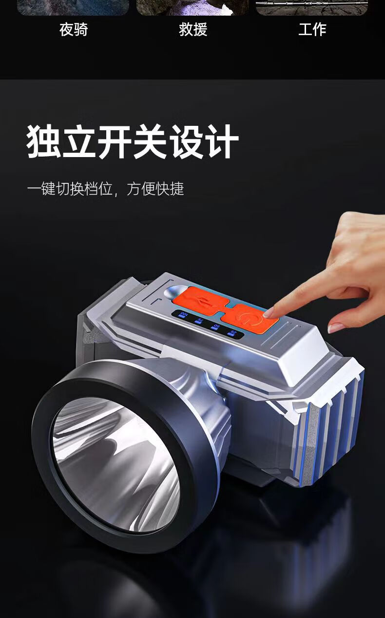 강력한 전조등 장거리 충전식 야외 대용량 리튬 배터리 건설 현장 초장 대기 손전등 광부의 램프 낚시 램프