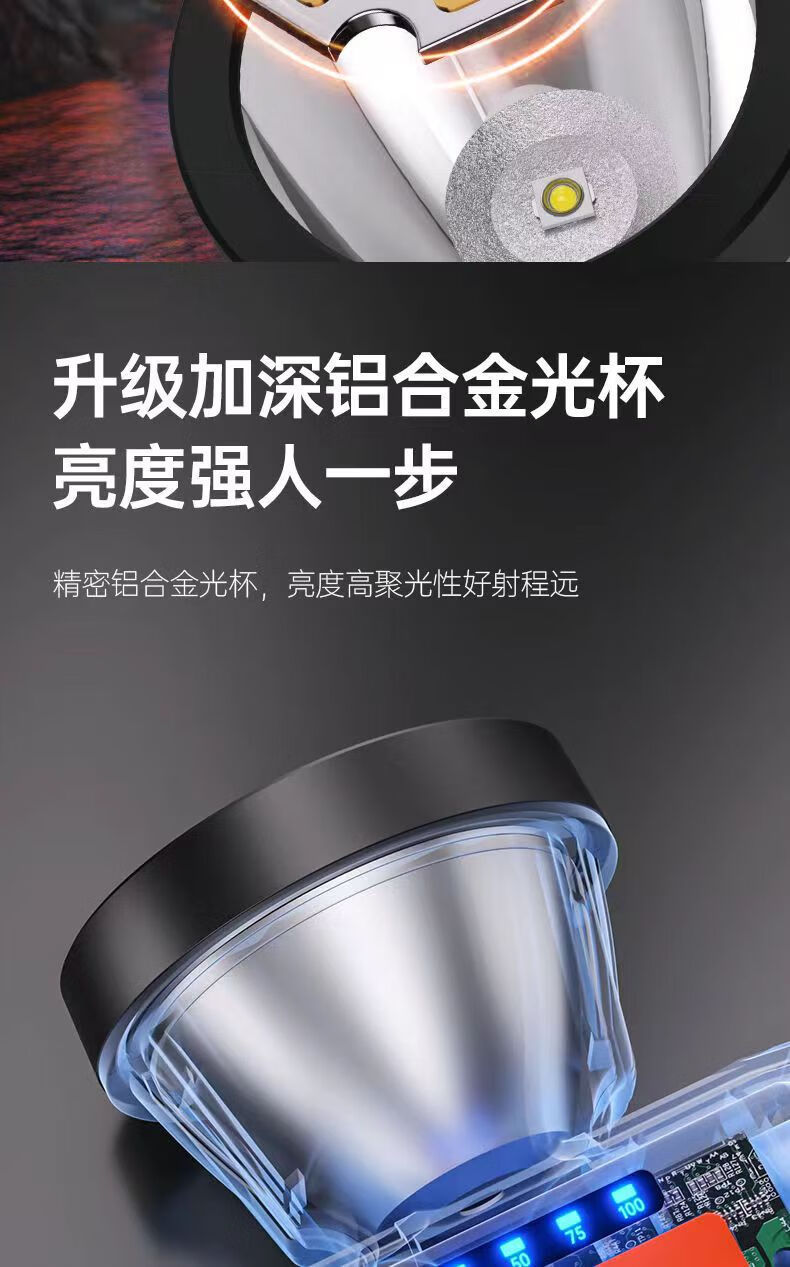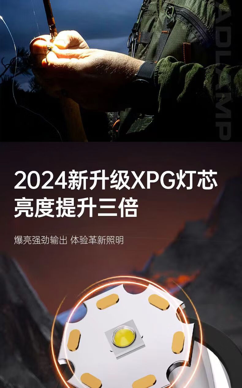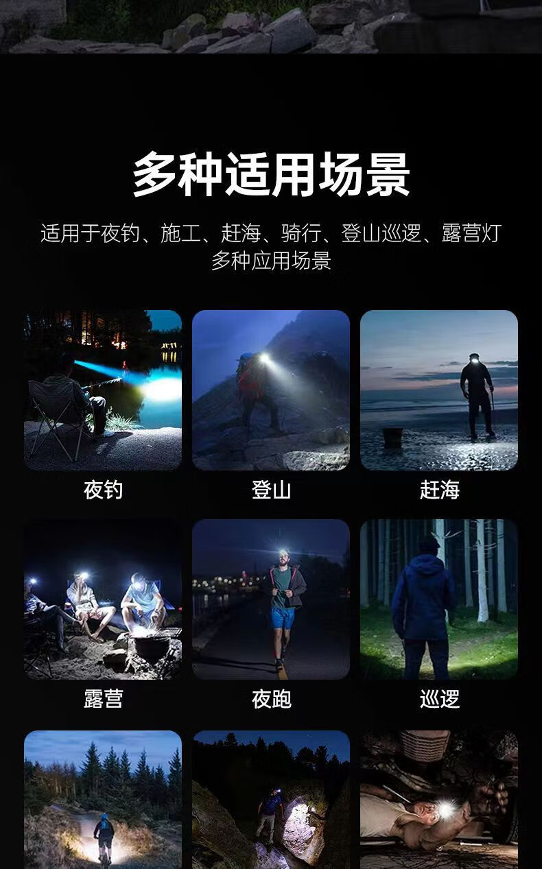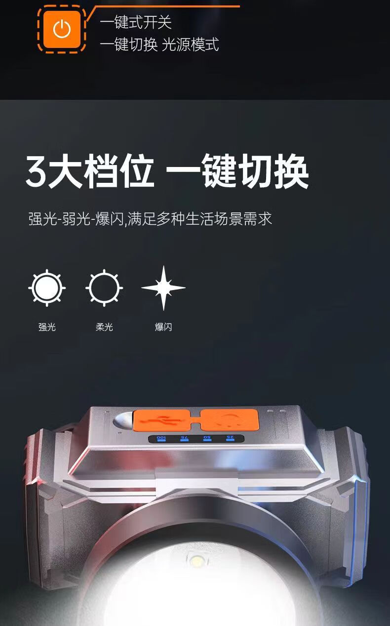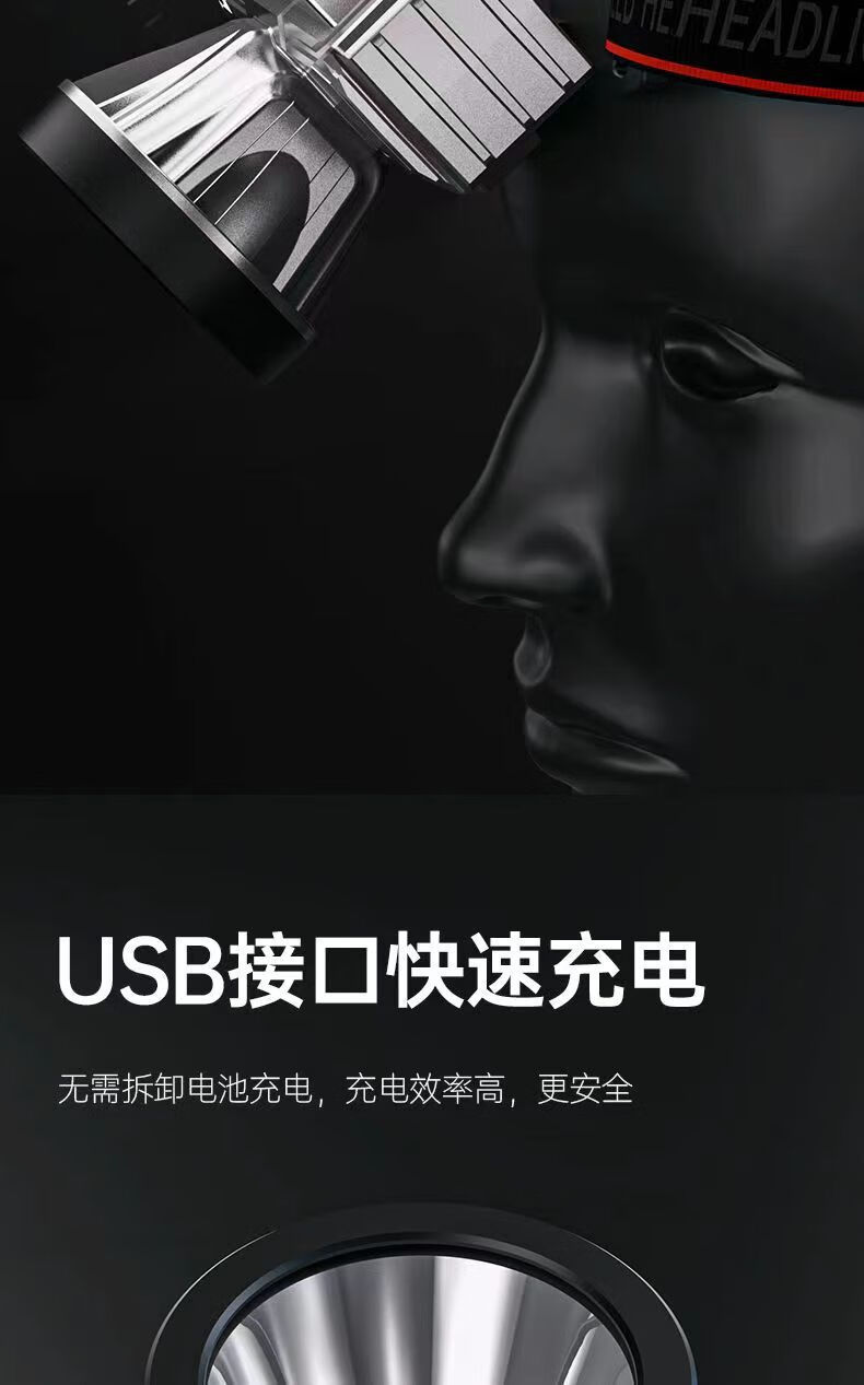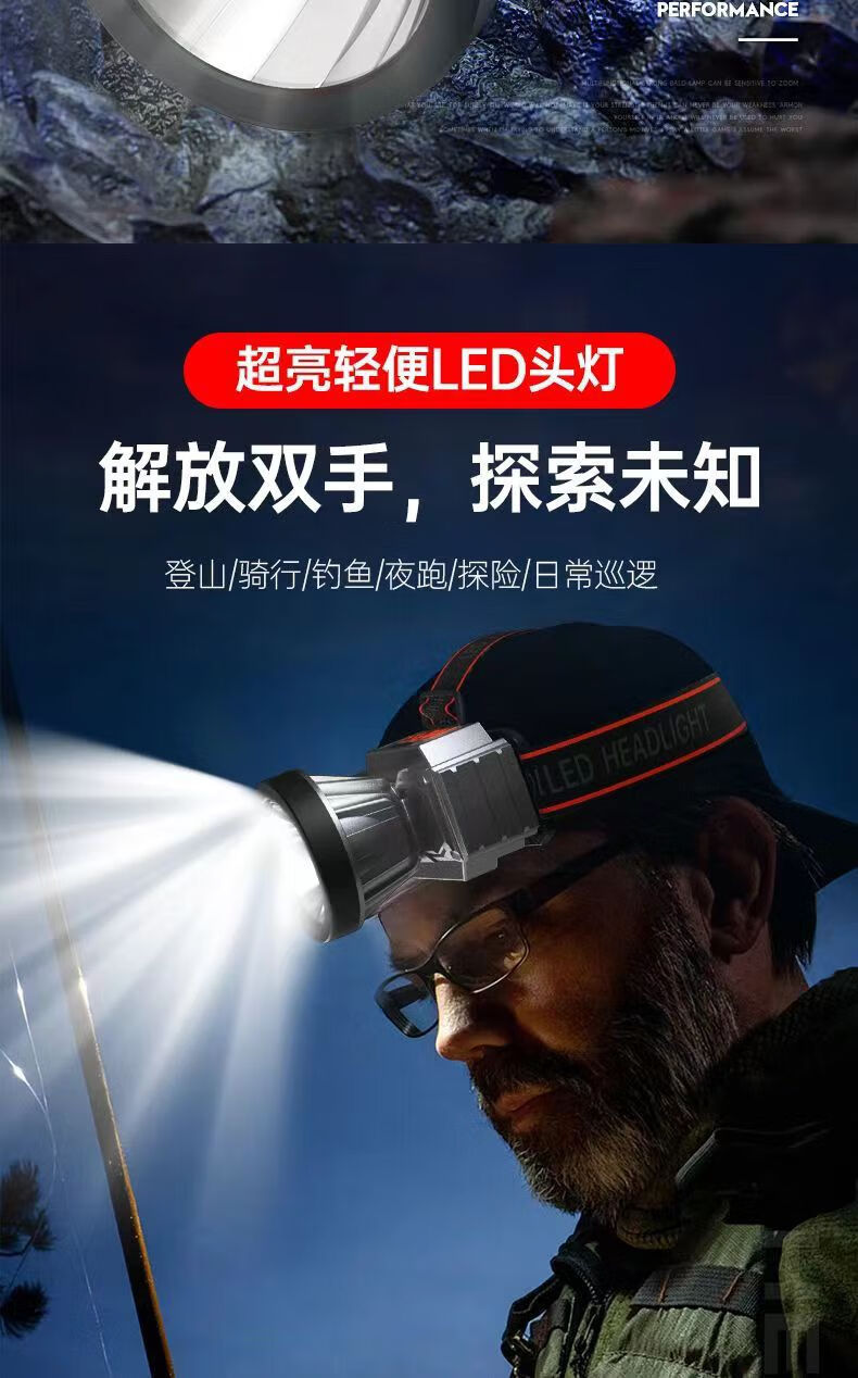 강력한 전조등 장거리 충전식 야외 대용량 리튬 배터리 건설 현장 초장 대기 손전등 광부의 램프 낚시 램프