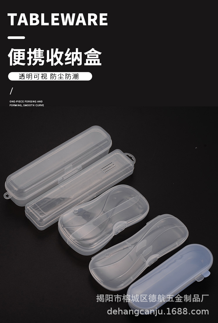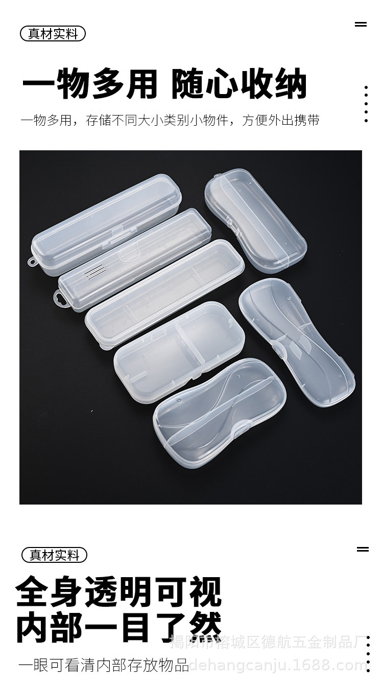 야외 학교 여행 휴대용 숟가락, 포크 및 젓가락 상자 학생 투명한 저장 상자 빈 플라스틱 식기 상자