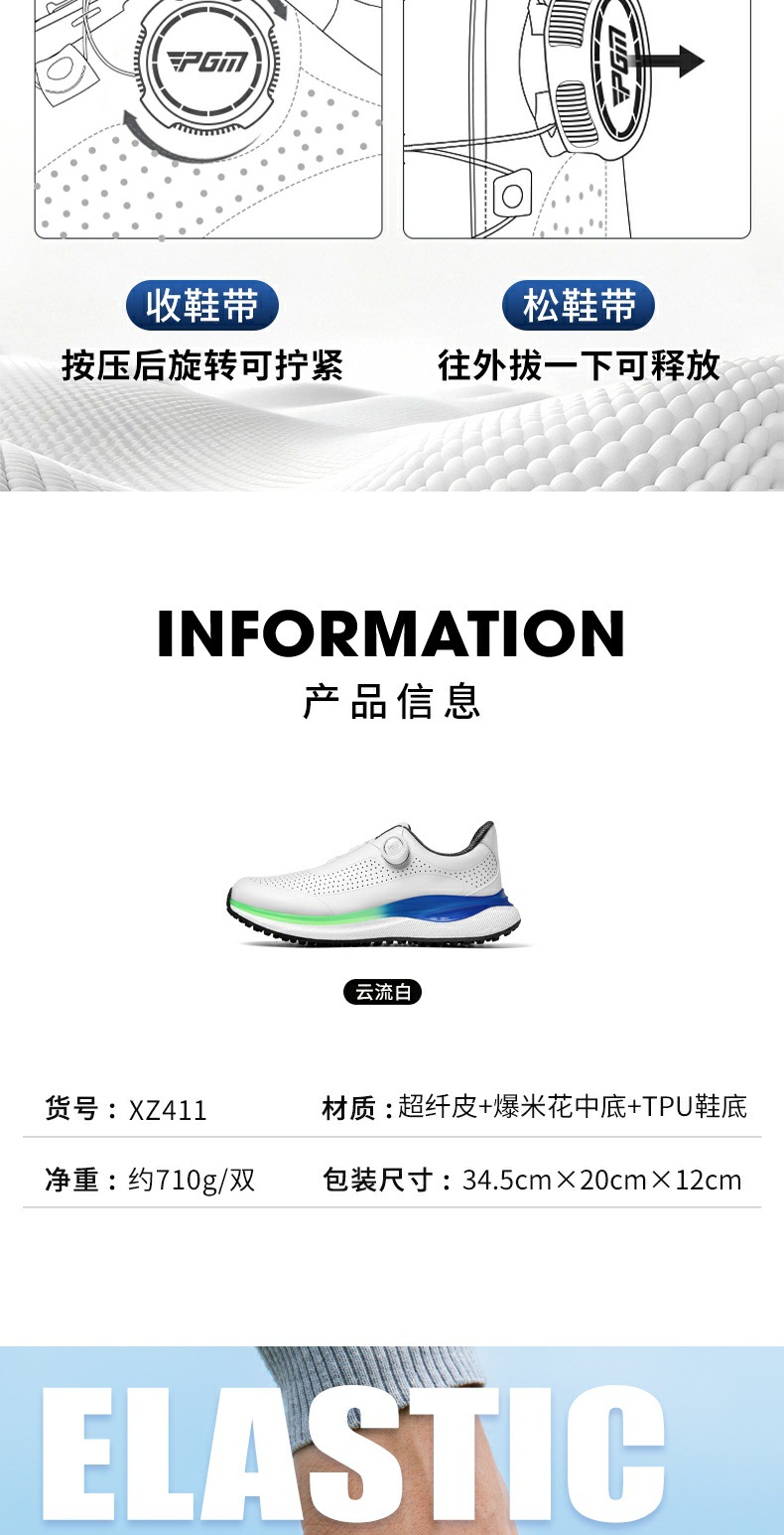 PGM 골프 남성용 스포츠 신발 슈퍼 소프트 팝콘 미드솔 손잡이 신발끈 미끄럼 방지 통기성 골프 신발