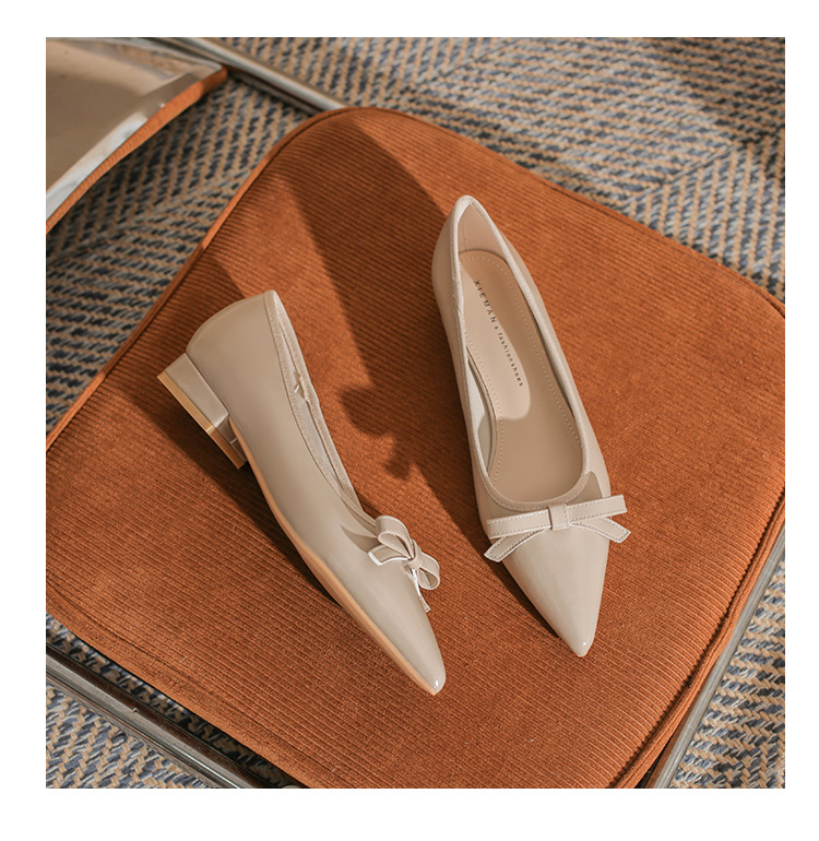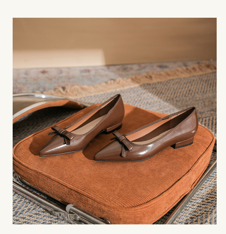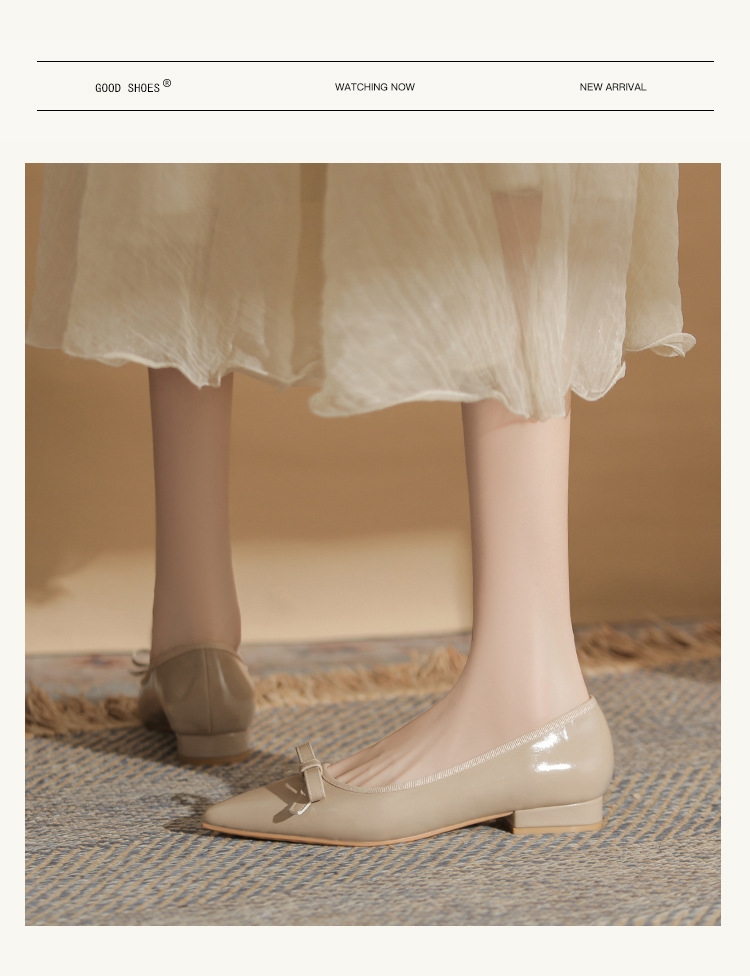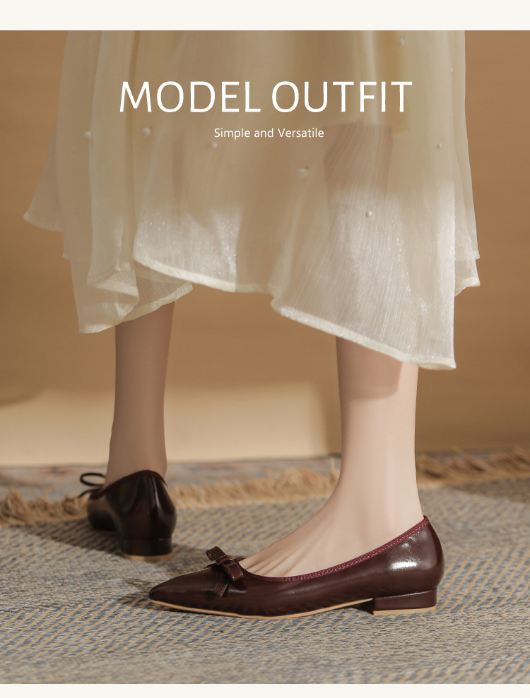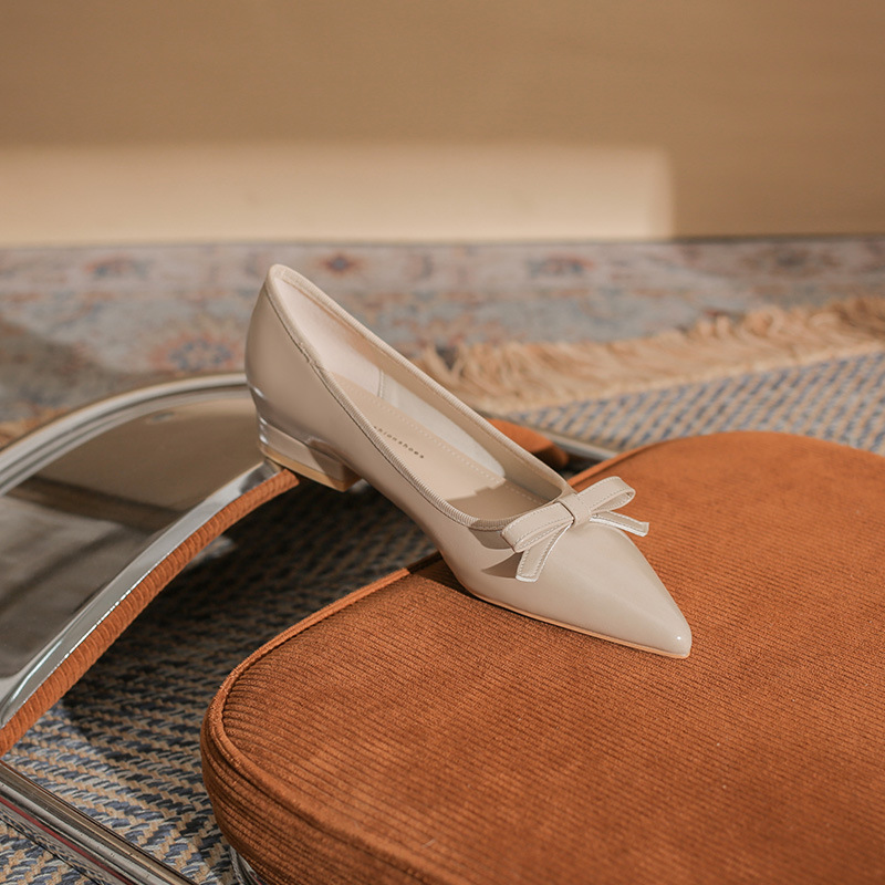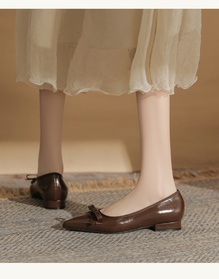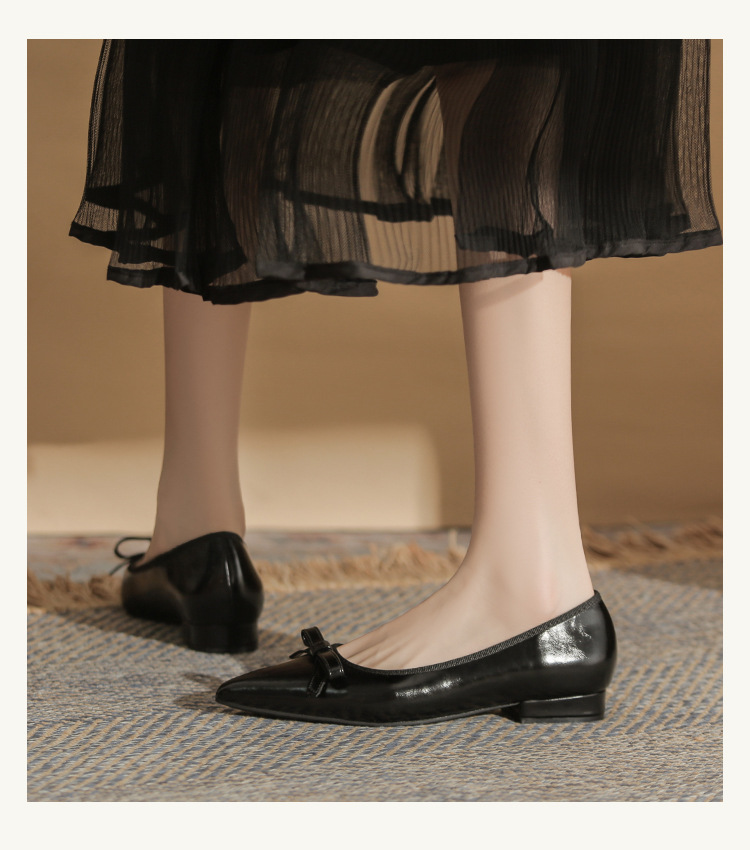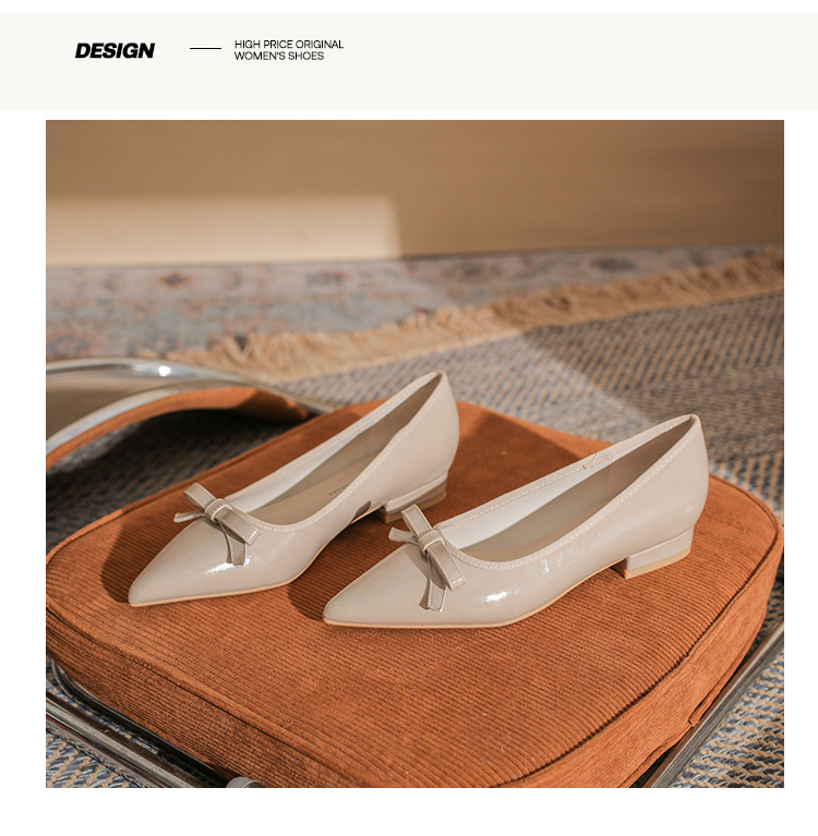 Qianlihu 플랫 펌프스, 발이 피곤하지 않은 뾰족한 앞코, 편안하고 착용하기 쉬운 페이턴트 가죽 슈즈, 여성용 리본 전자상거래 드롭쉬핑 슈즈