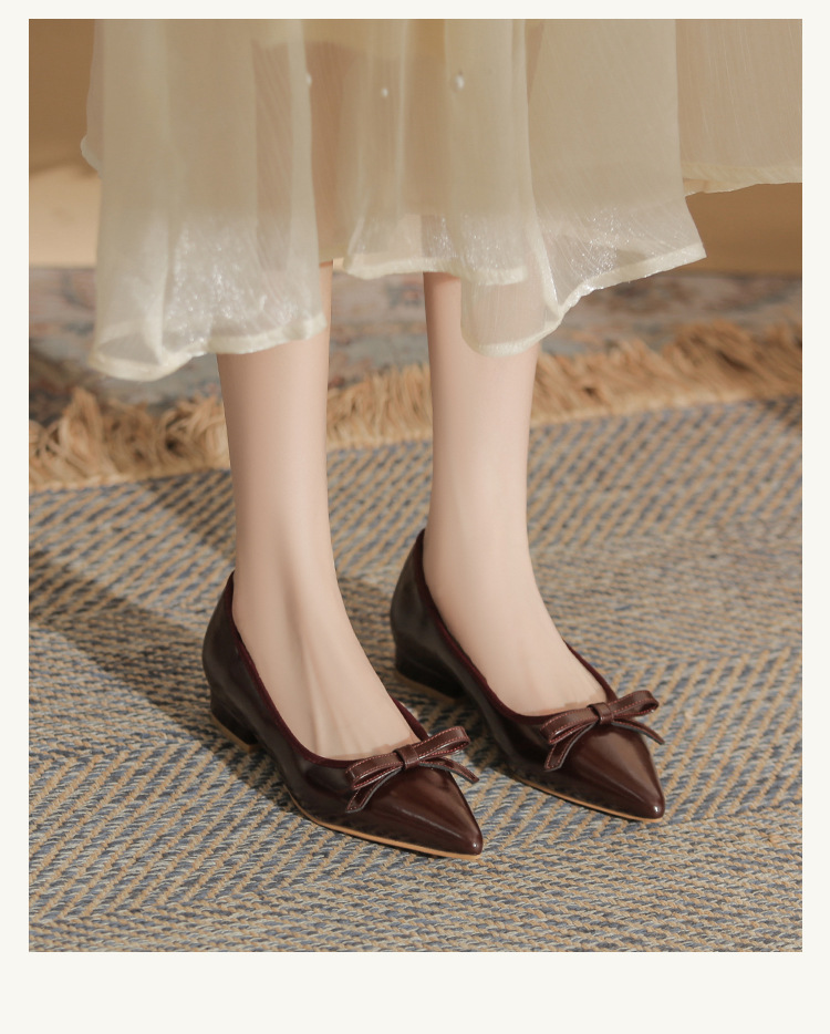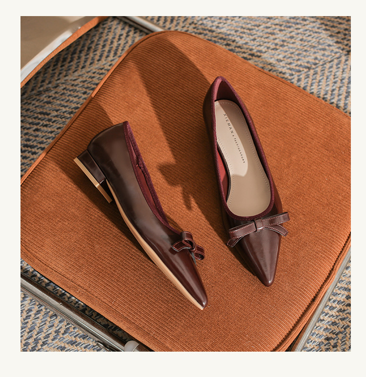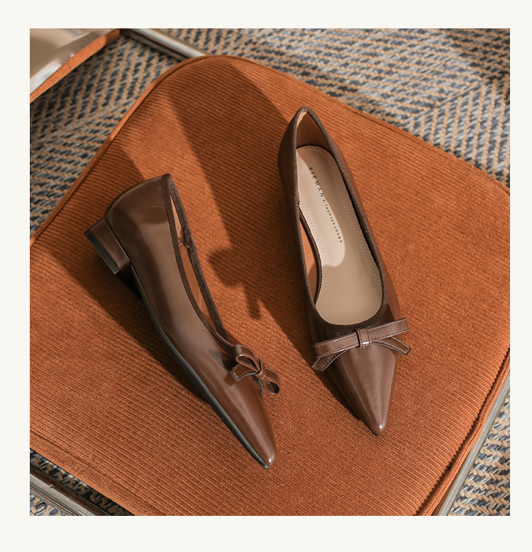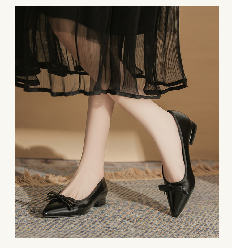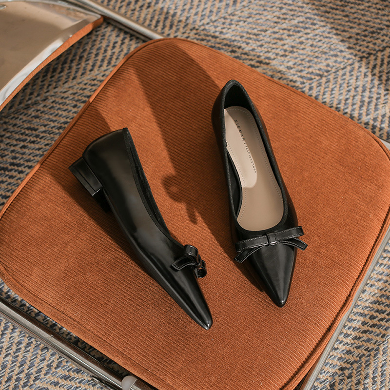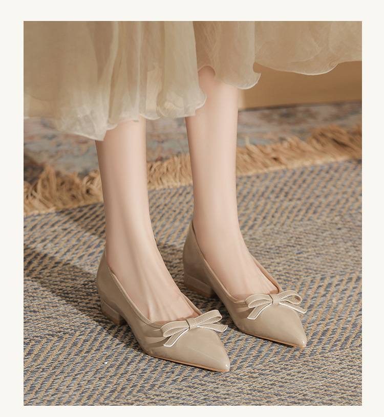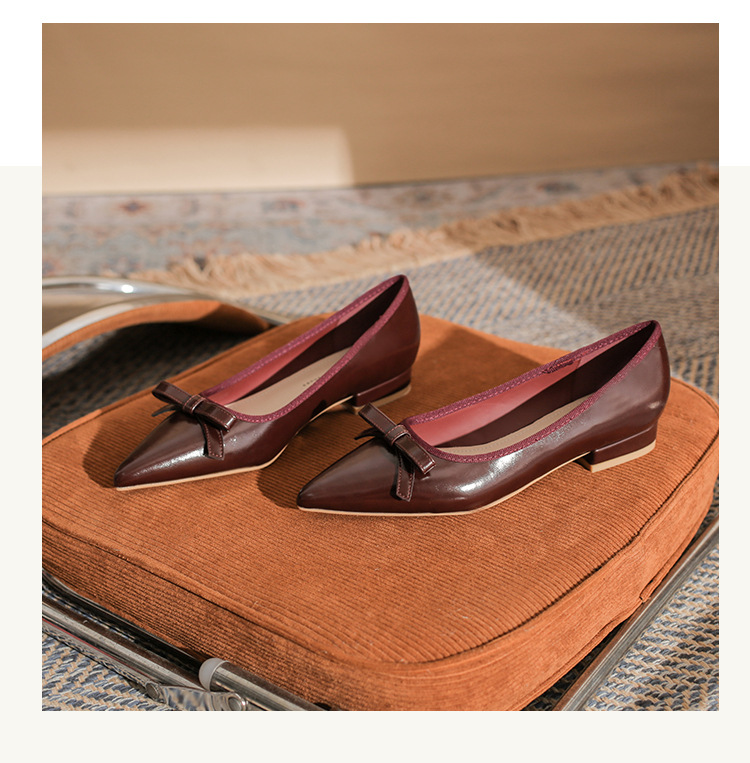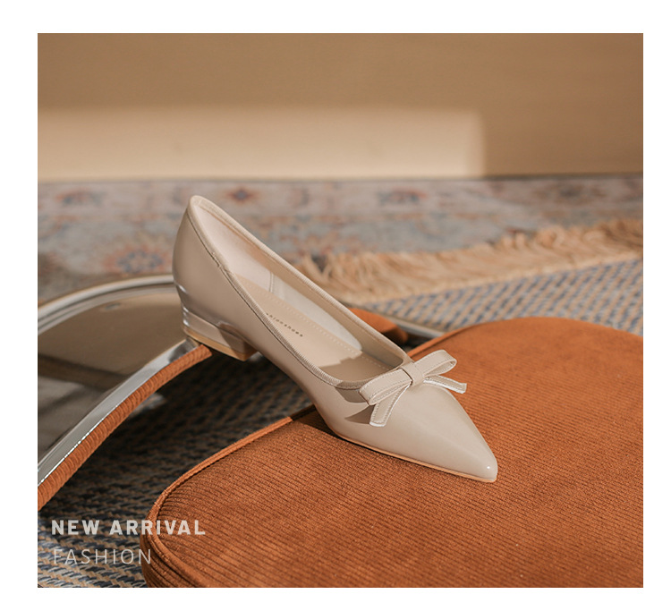 Qianlihu 플랫 펌프스, 발이 피곤하지 않은 뾰족한 앞코, 편안하고 착용하기 쉬운 페이턴트 가죽 슈즈, 여성용 리본 전자상거래 드롭쉬핑 슈즈