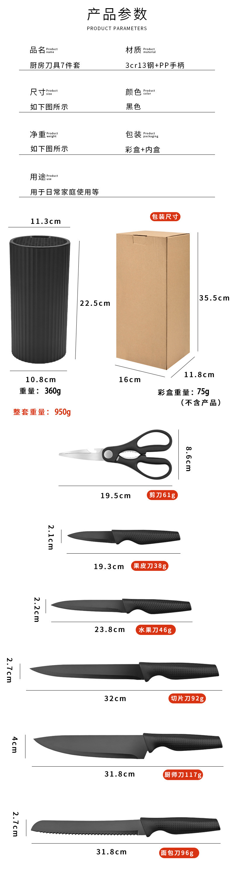 스테인리스 칼 세트 7종(칼 홀더 포함)