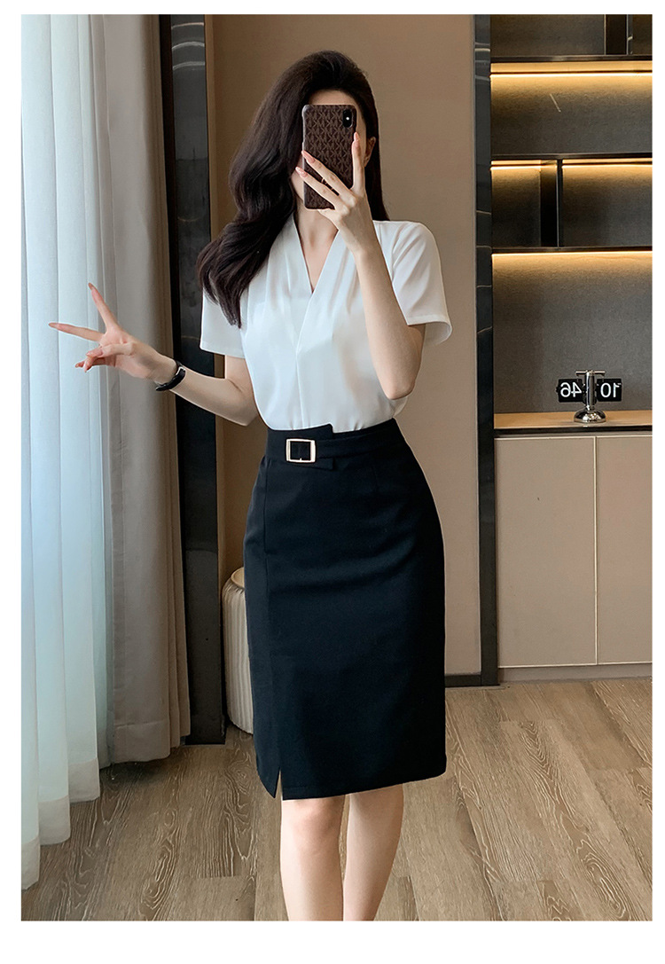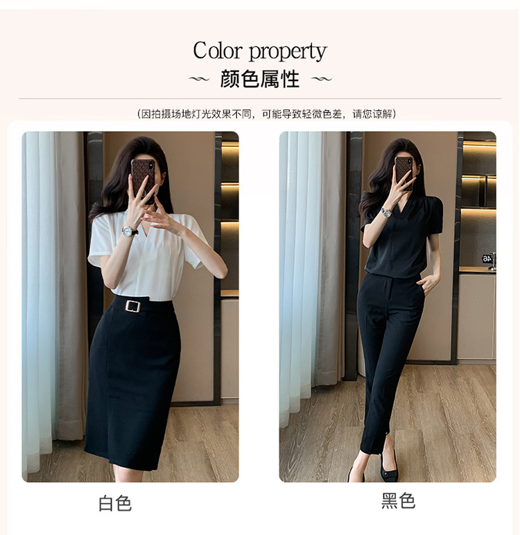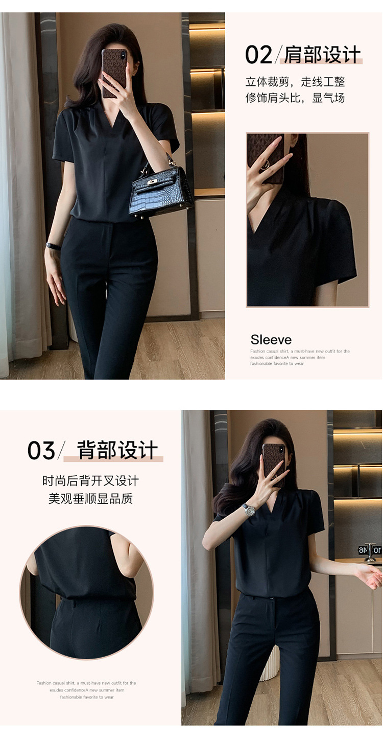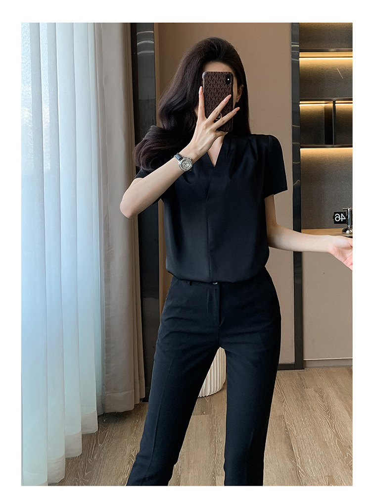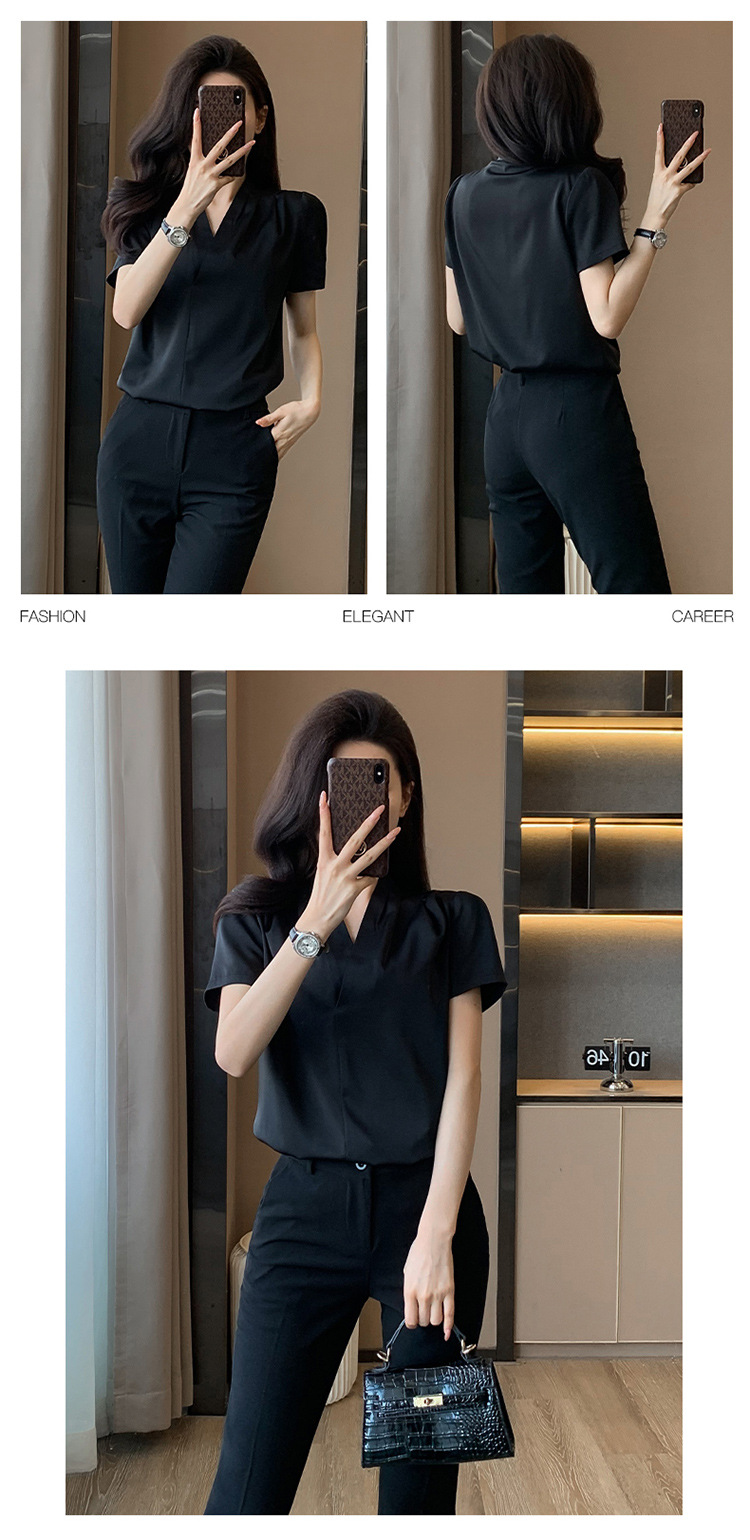 2025 새로운 전문 반팔 V 넥 셔츠 여성 여름 사업 통근 OL 작업 옷 시폰 우아한 셔츠