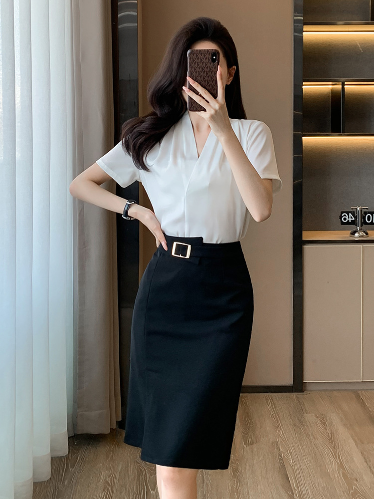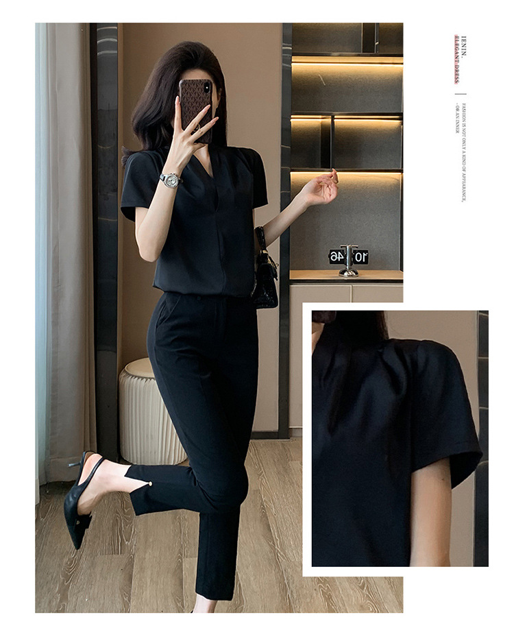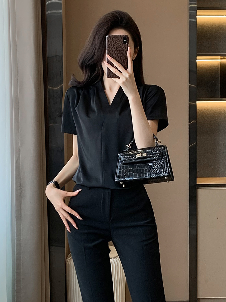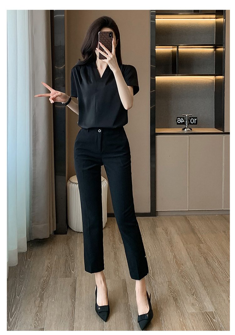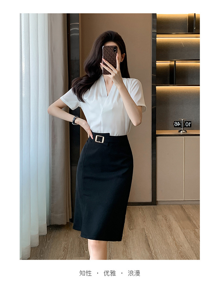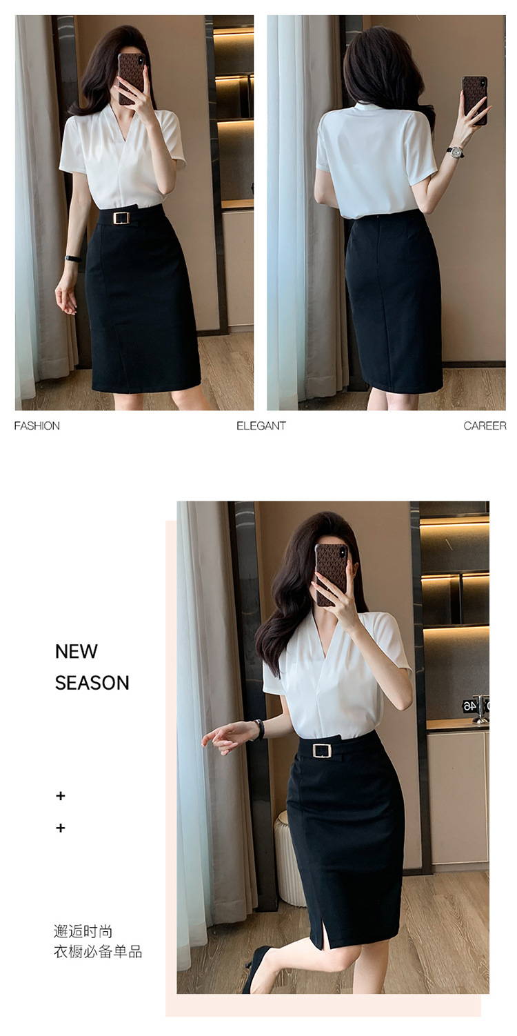 2025 새로운 전문 반팔 V 넥 셔츠 여성 여름 사업 통근 OL 작업 옷 시폰 우아한 셔츠