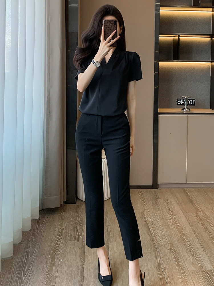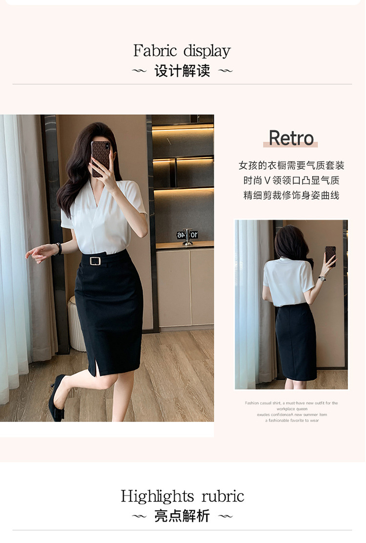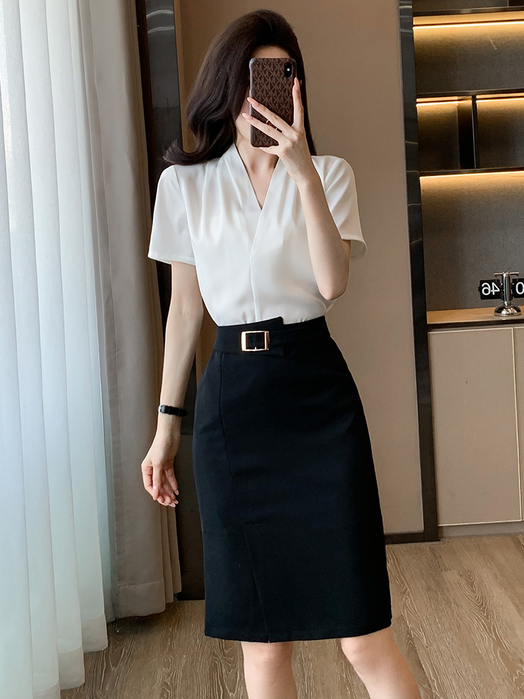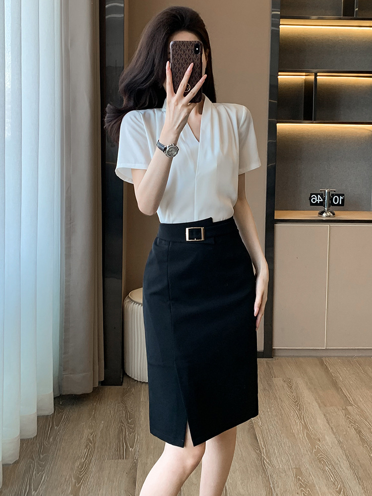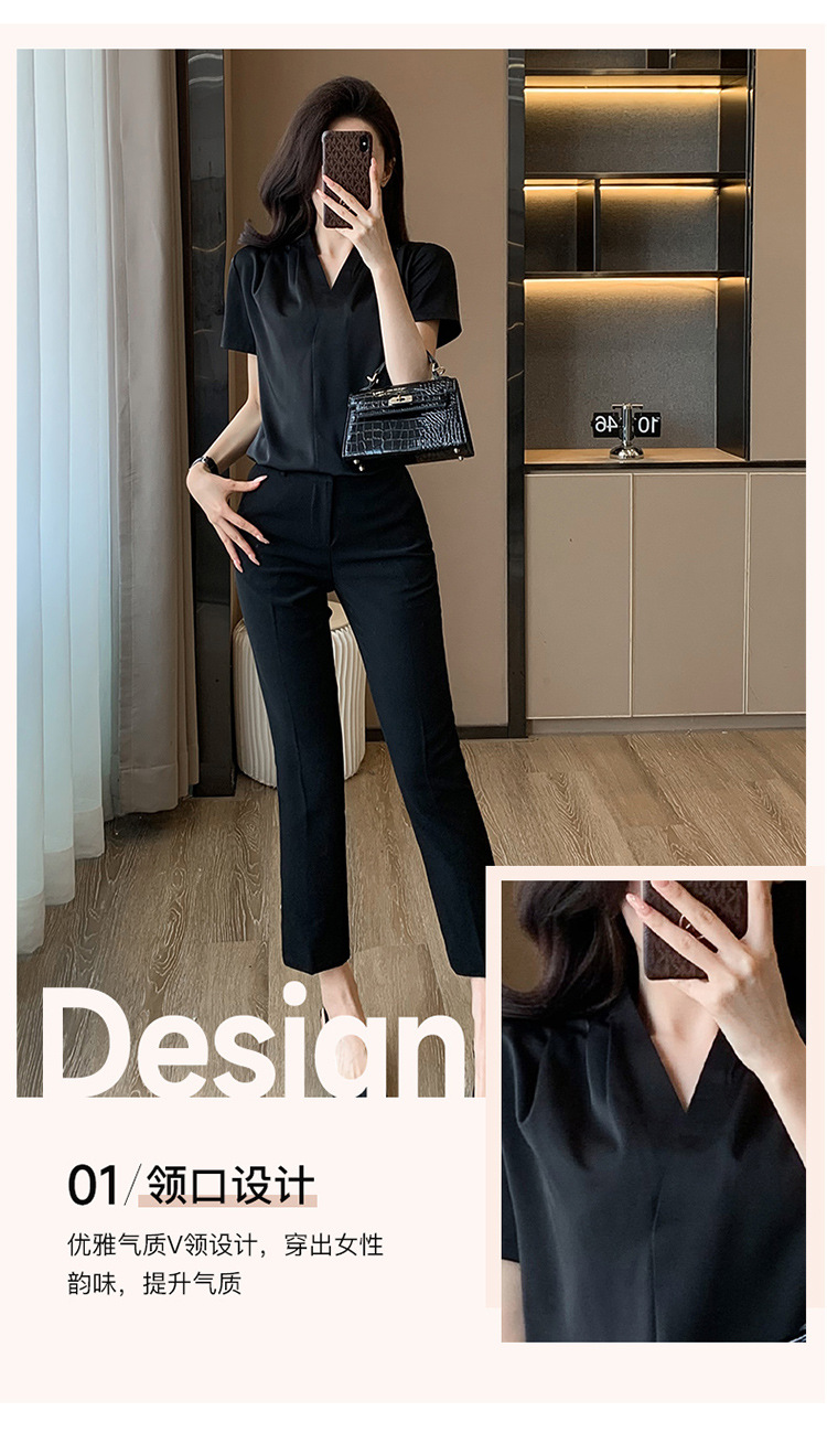 2025 새로운 전문 반팔 V 넥 셔츠 여성 여름 사업 통근 OL 작업 옷 시폰 우아한 셔츠