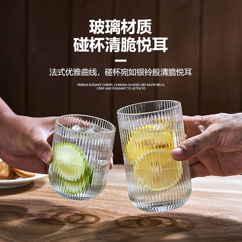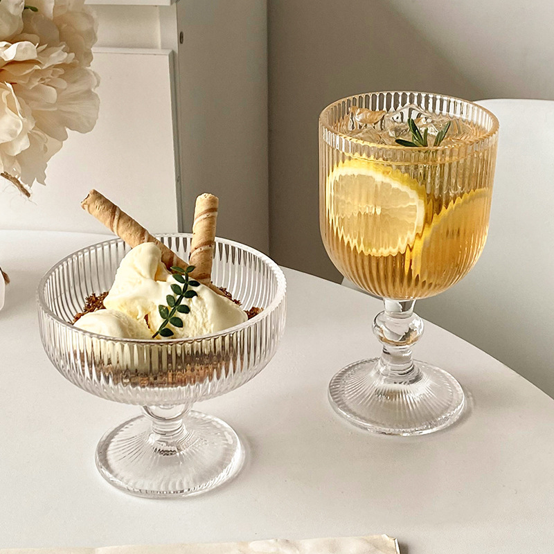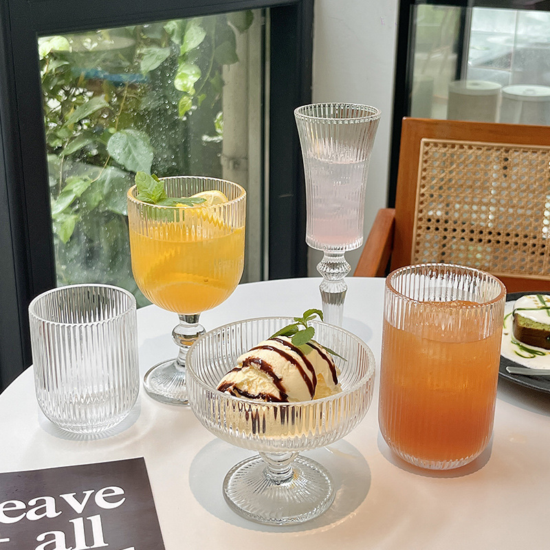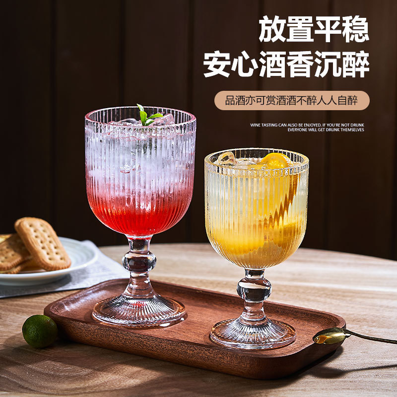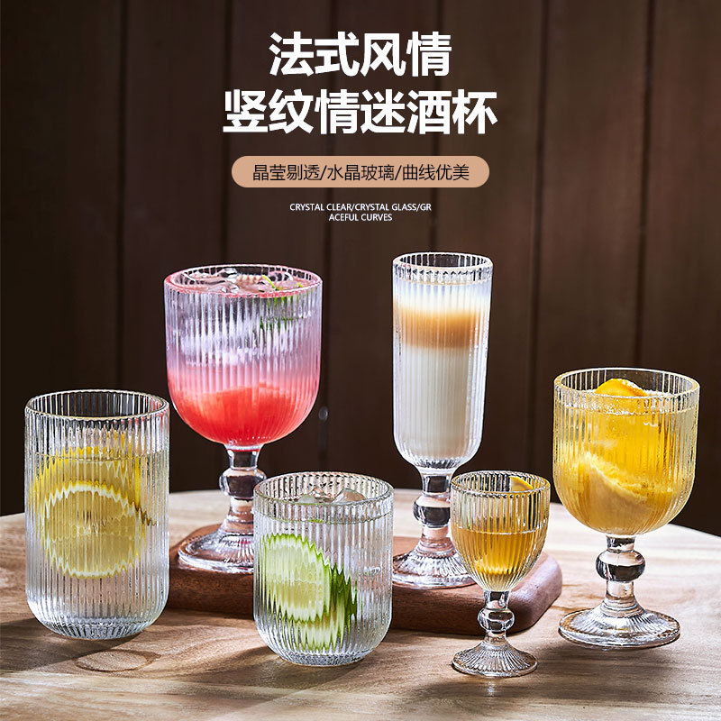 대외 무역 복고풍 유리 세로 패턴 잔 레드 와인 잔 와인 잔 주스 컵 아이스크림 차가운 음료 컵 물 컵