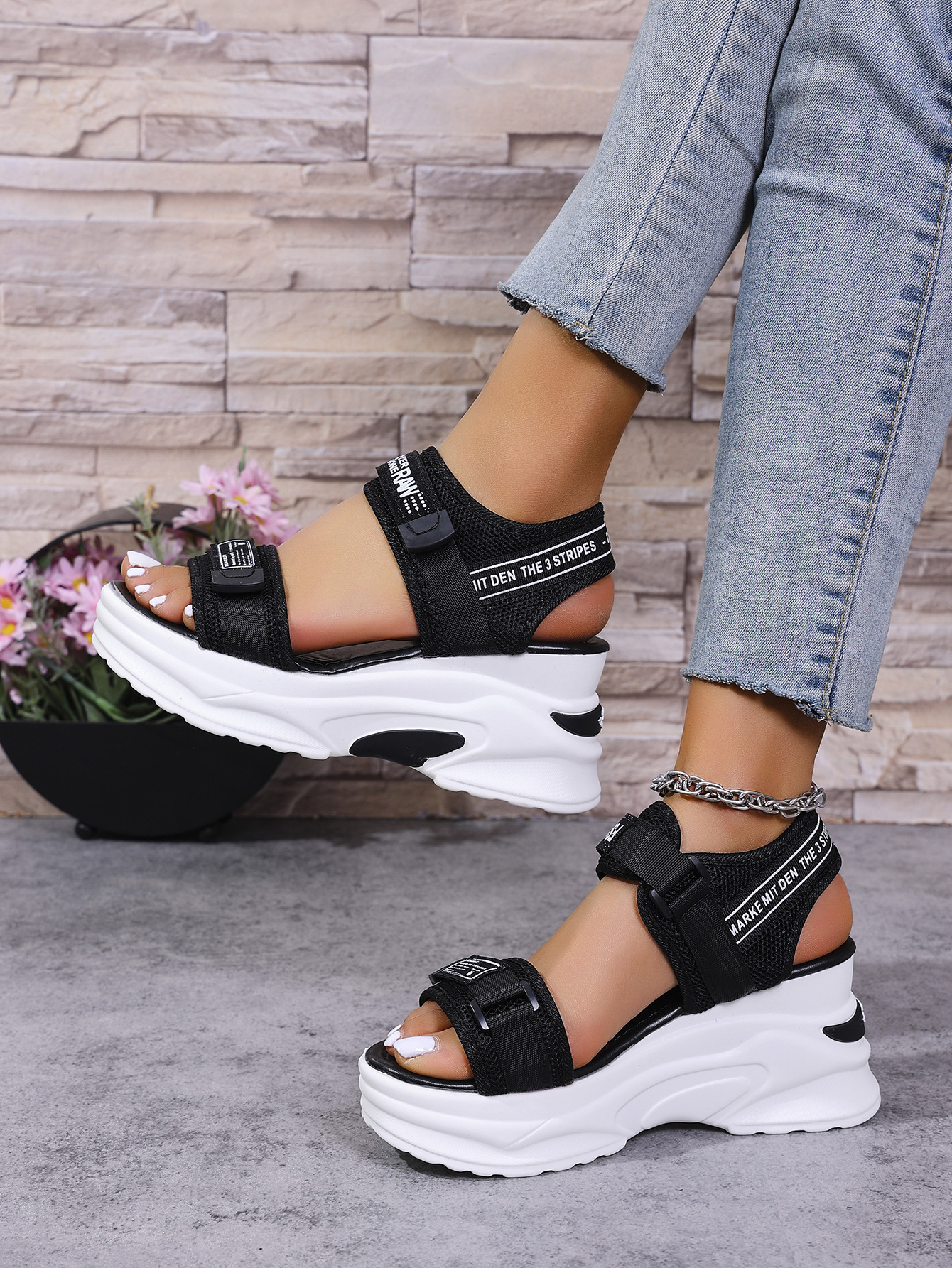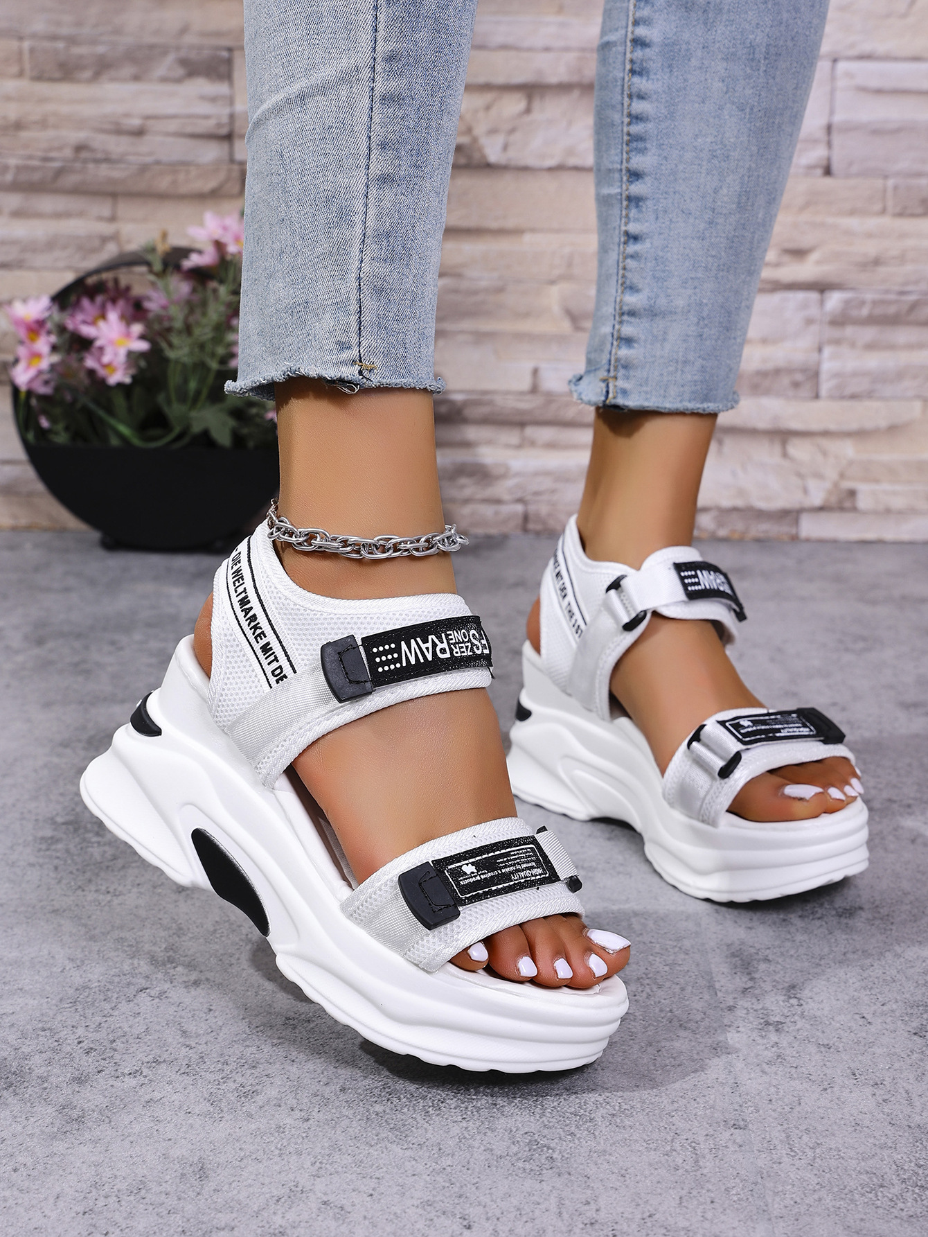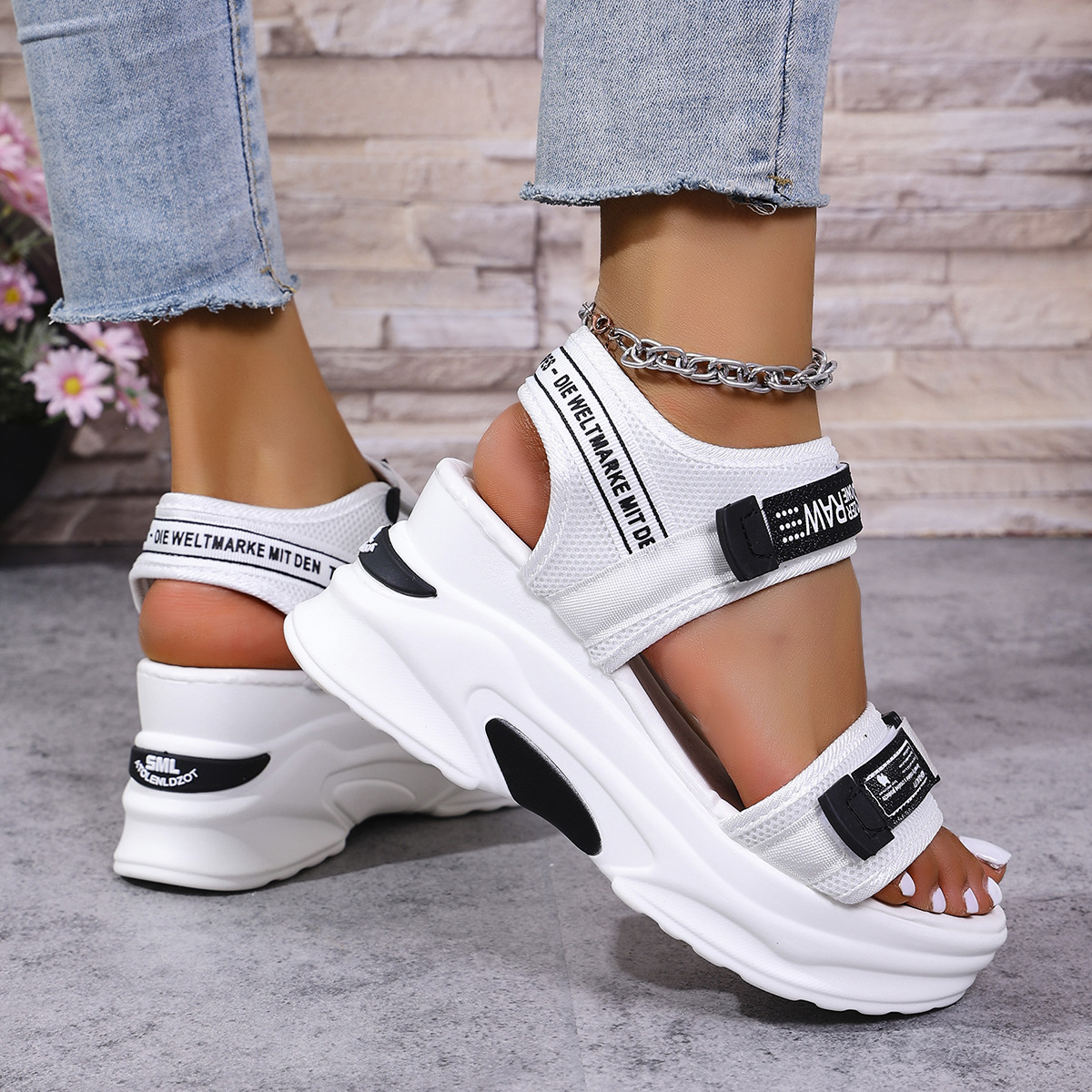 여성을위한 웨지 플랫폼 샌들 2025 여름 새로운 스타일 벨크로 플랫폼 여성을위한 세련되고 다재다능한 비치 샌들