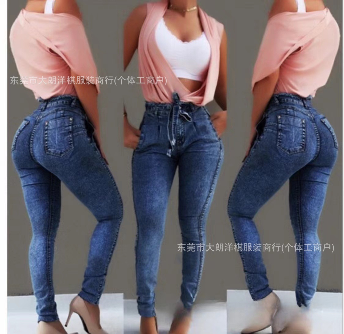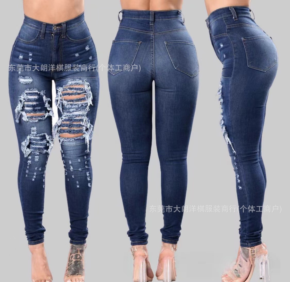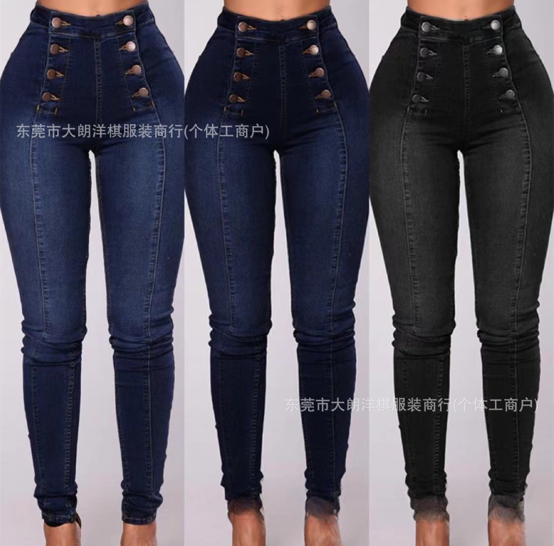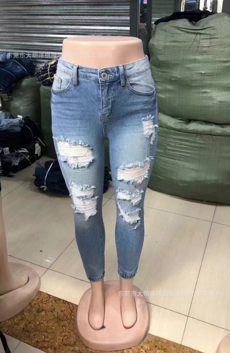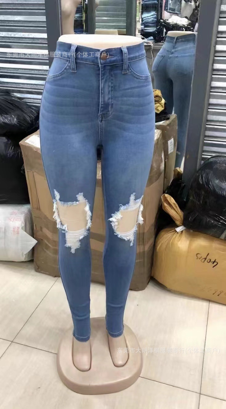 국경 간 대외 무역 스트레치 데님 바지 여성 슬림 높은 스트레치 청바지 연필 바지 공장 직접 머리카락 세대