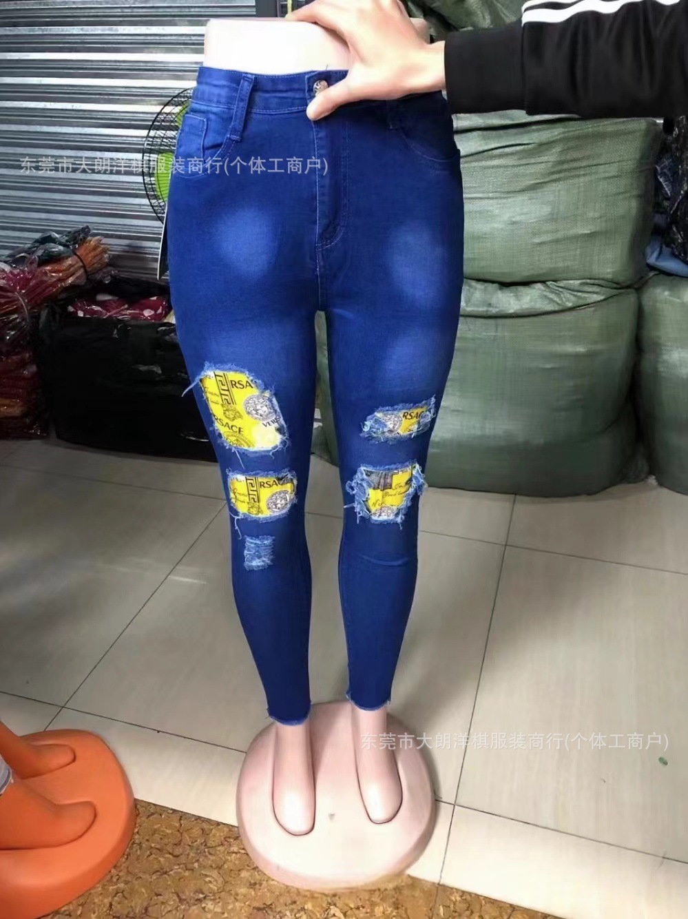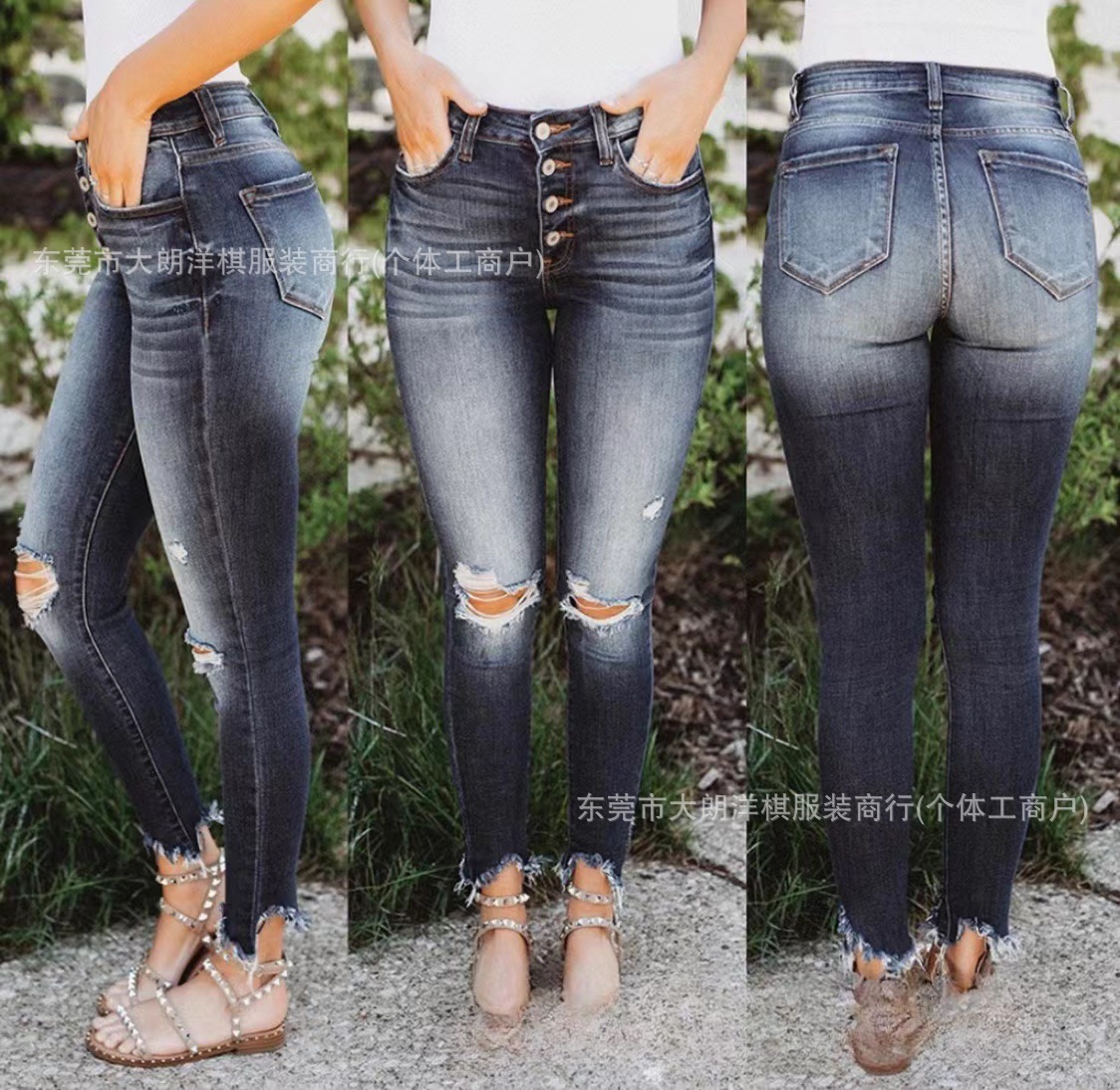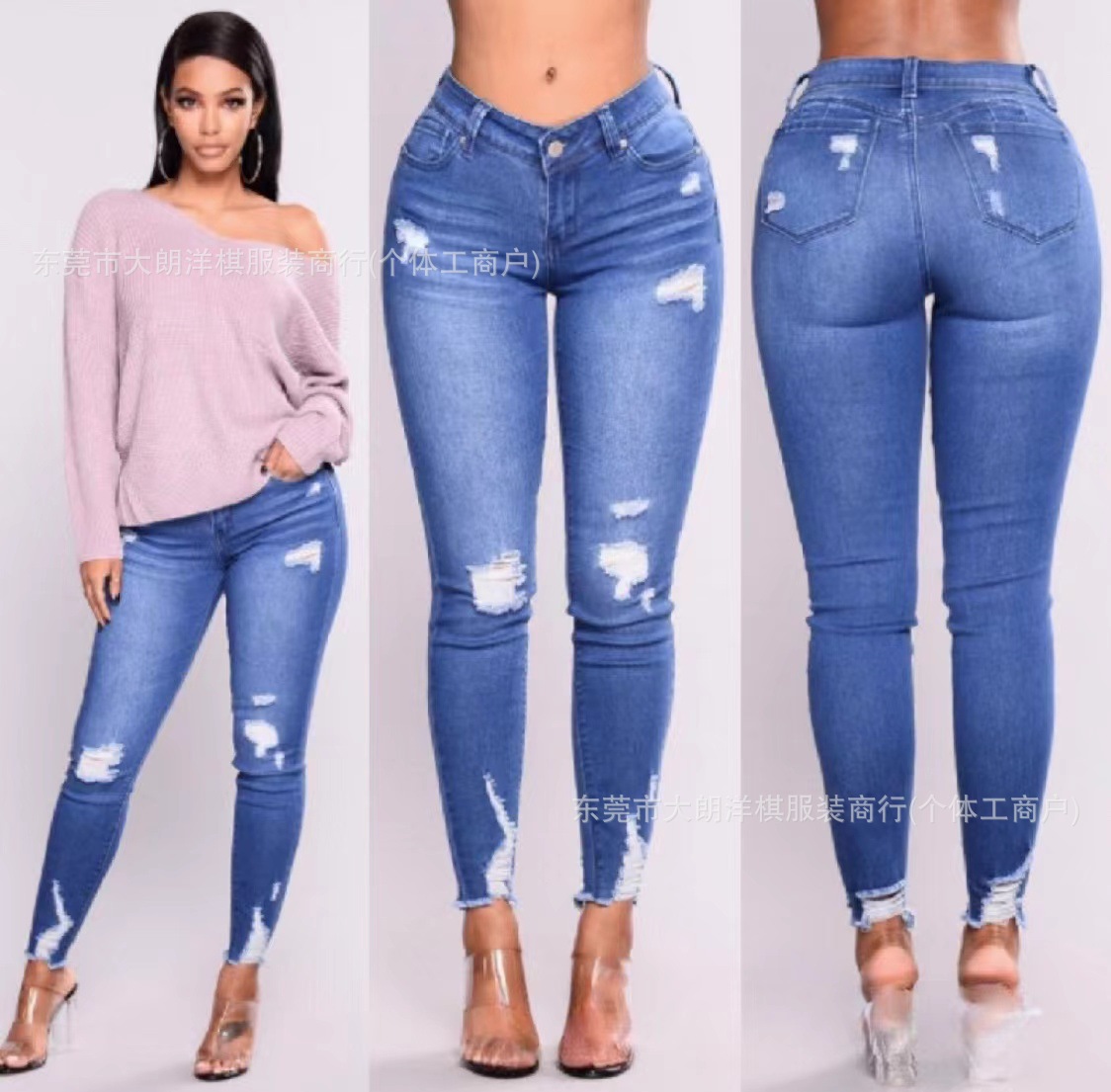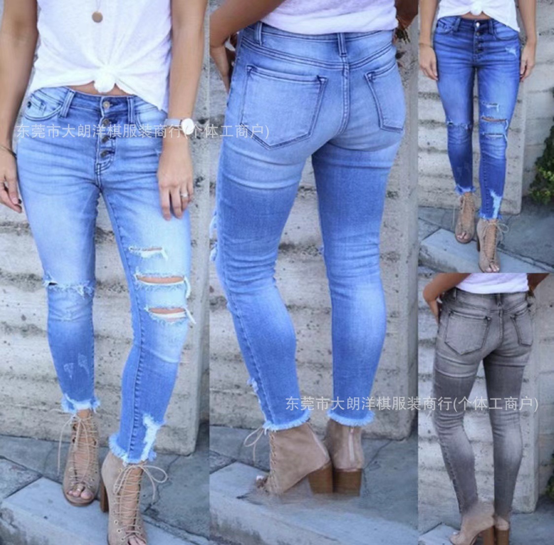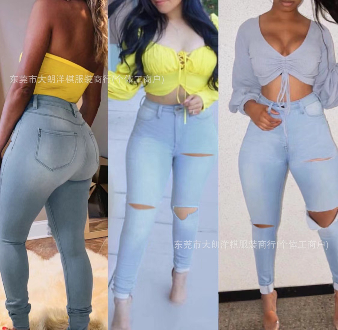 국경 간 대외 무역 스트레치 데님 바지 여성 슬림 높은 스트레치 청바지 연필 바지 공장 직접 머리카락 세대
