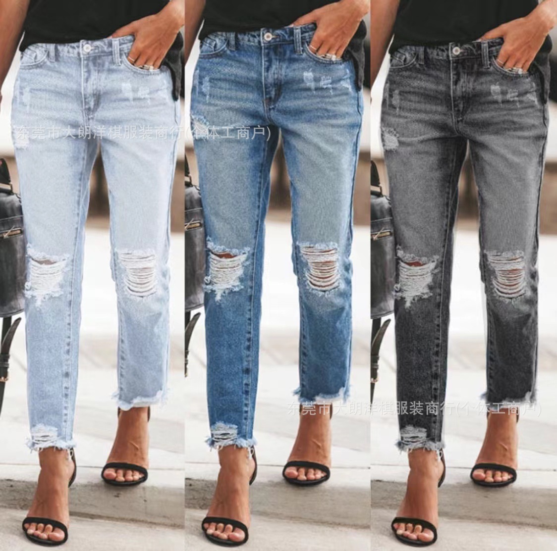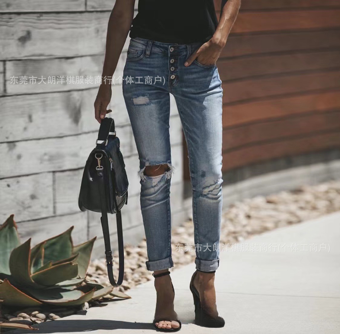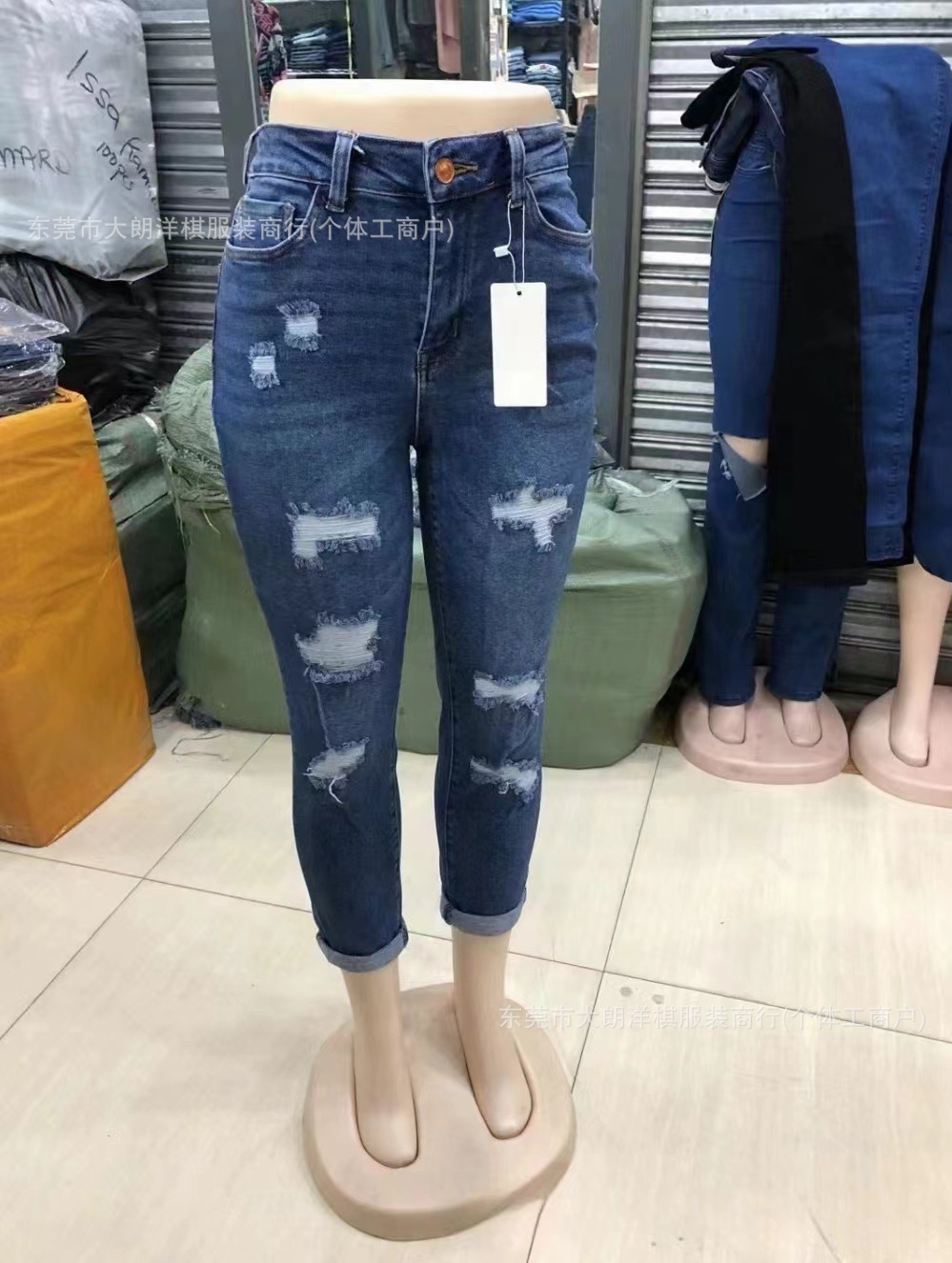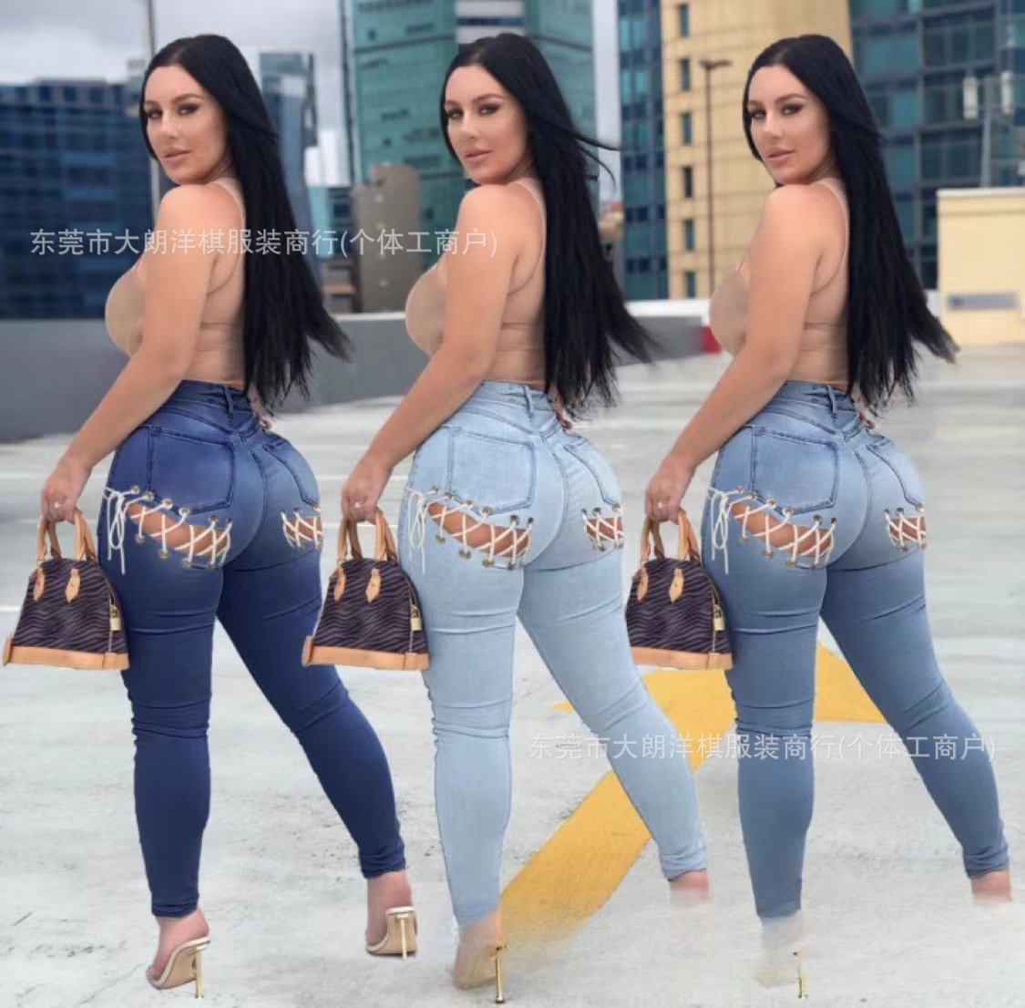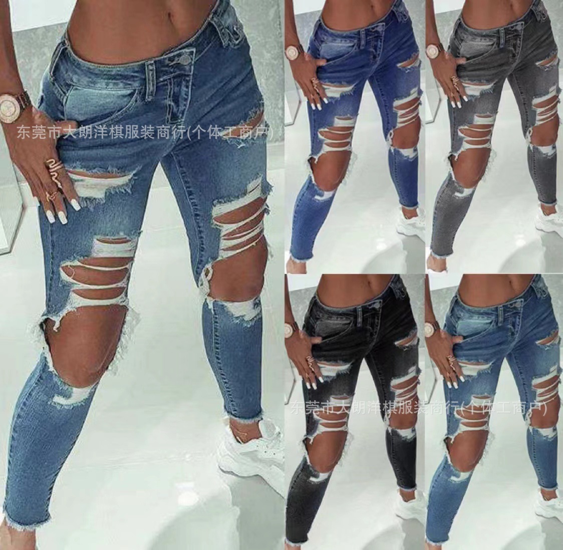 국경 간 대외 무역 스트레치 데님 바지 여성 슬림 높은 스트레치 청바지 연필 바지 공장 직접 머리카락 세대
