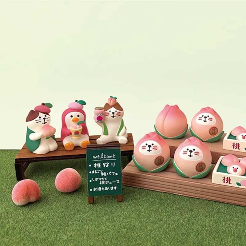 Zakka 일본 고양이 복숭아 시리즈 복숭아 데스크탑 장식품 귀여운 치유 선물 크리 에이 티브 홈 수지 장식품