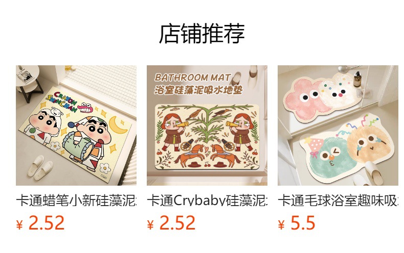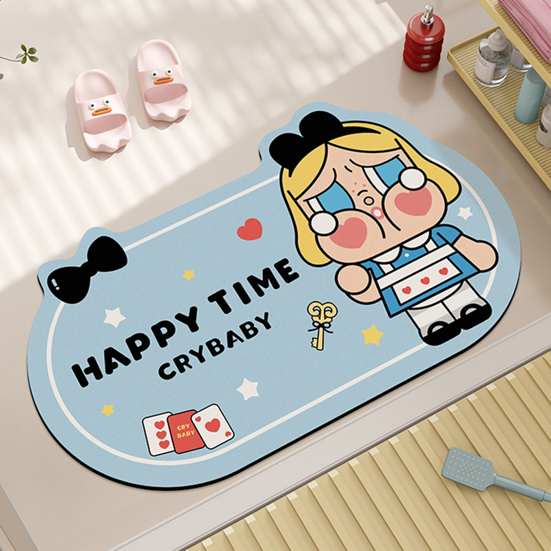 만화 크라이베이비 규조토 진흙 부드러운 바닥 매트, 욕실용 흡수성 속건 발 매트, 미끄럼 방지 및 내마모성 만화 애니메이션