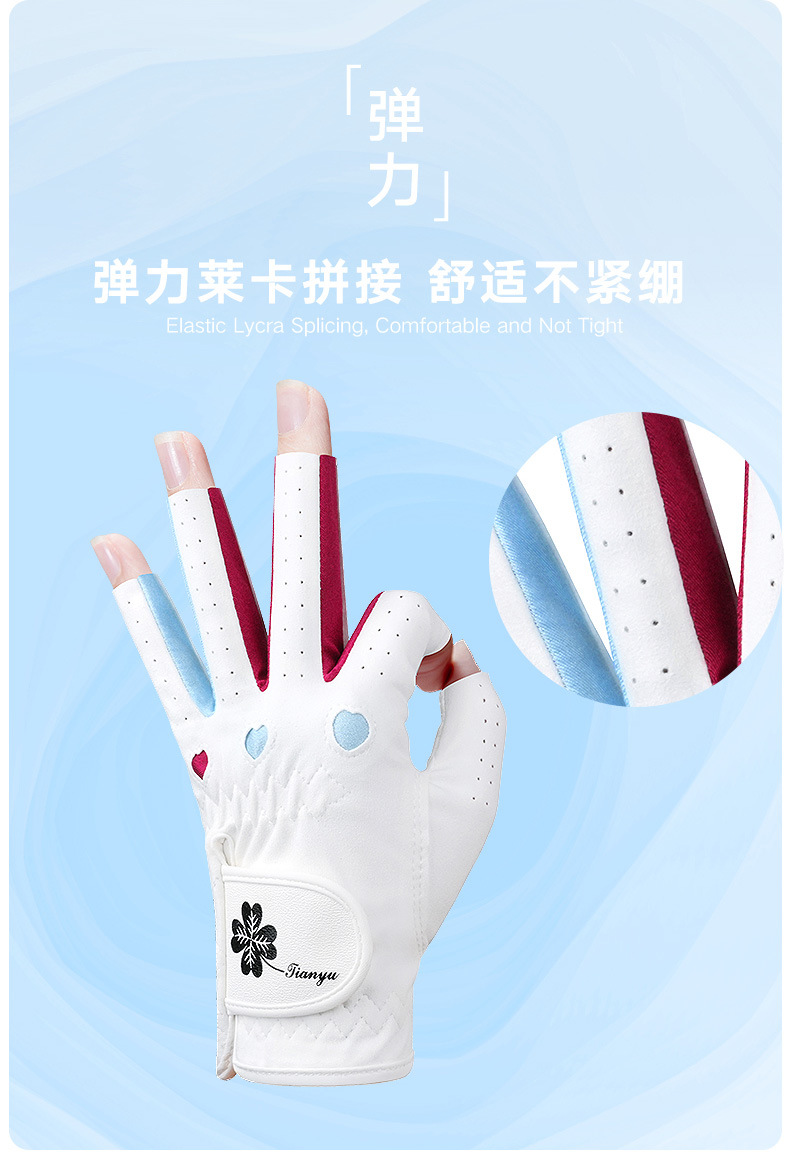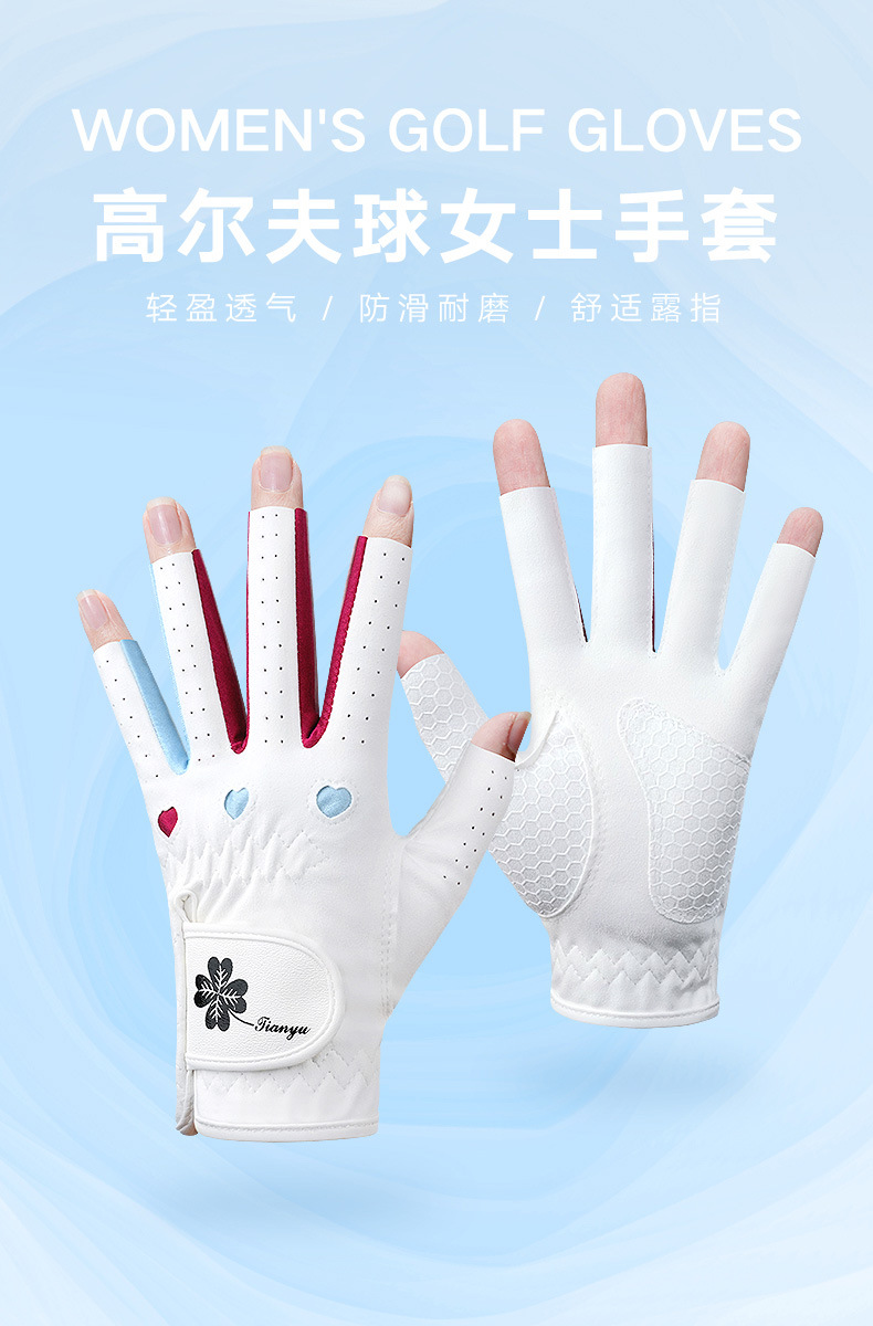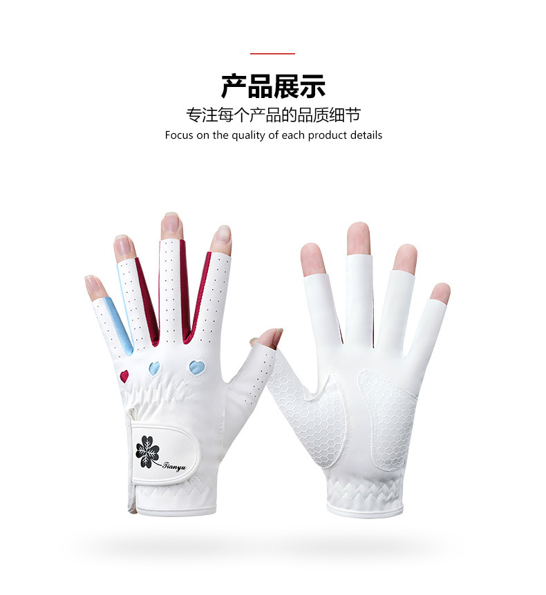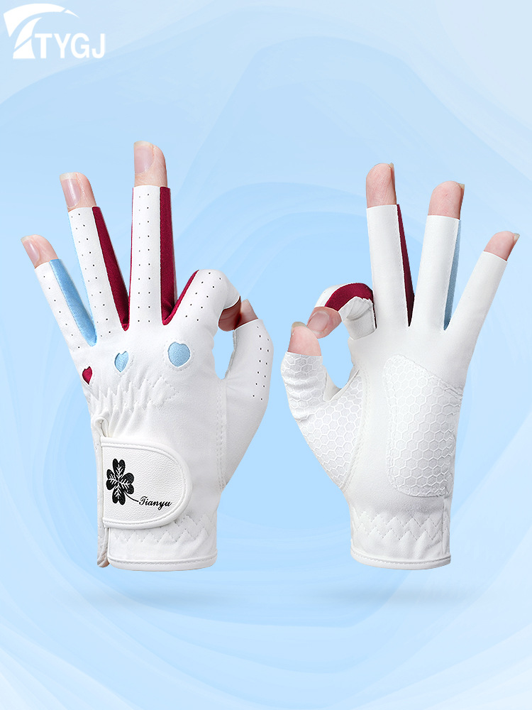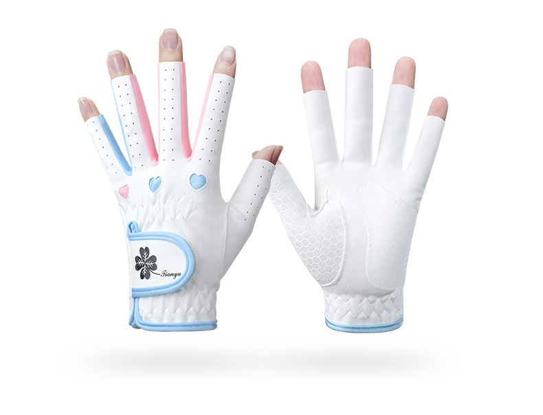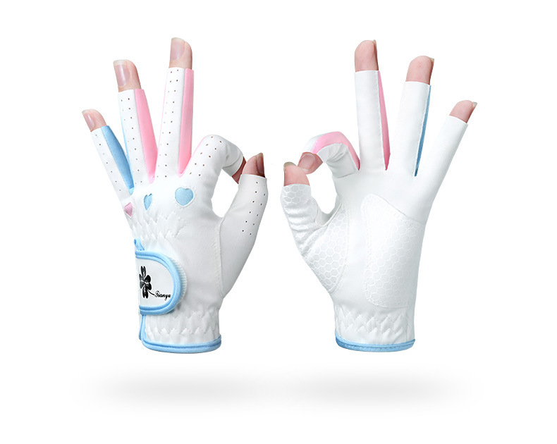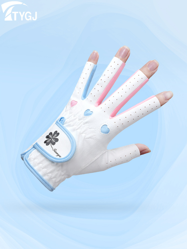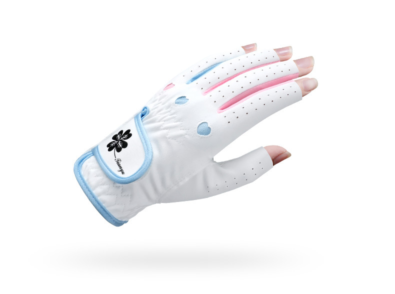 여성용 골프 장갑 한국식 반손가락 미끄럼 방지 GOLF 극세사 천 장갑 통기성 및 내마모성 장갑 1 쌍