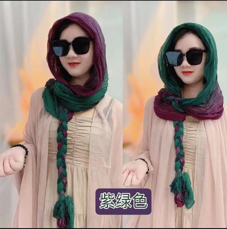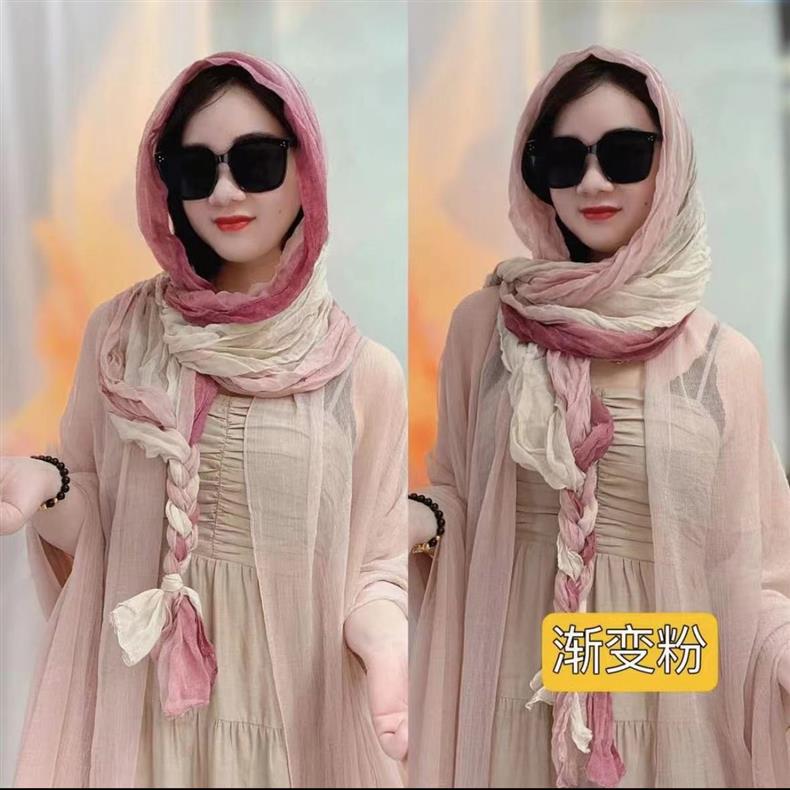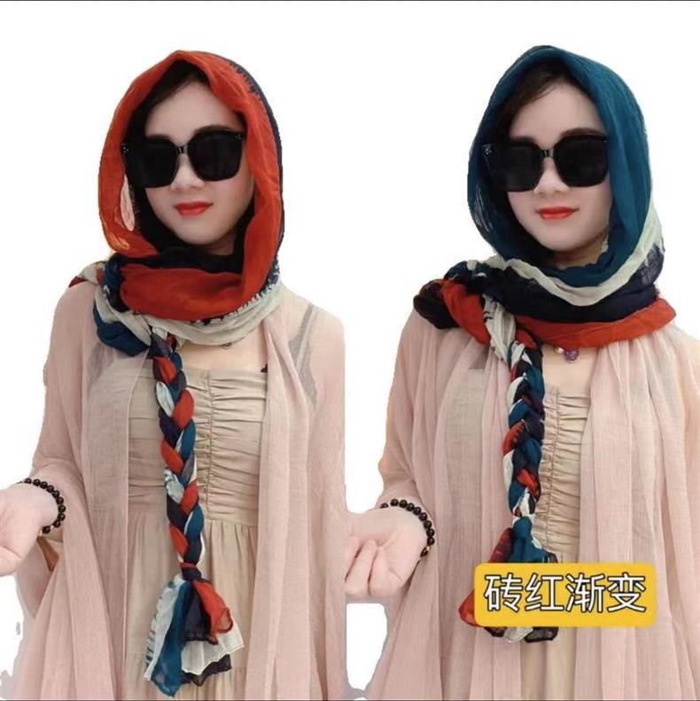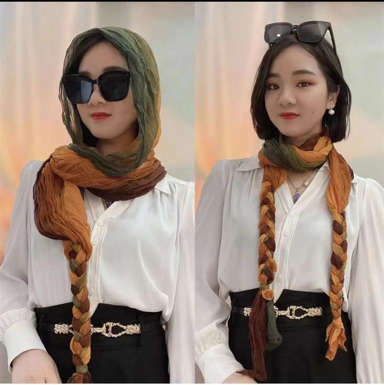 땋은 머리 스카프, 여름 자외선 차단제, 터번, 여행 사진, 패셔너블하고 다재다능한 실크 스카프 숄