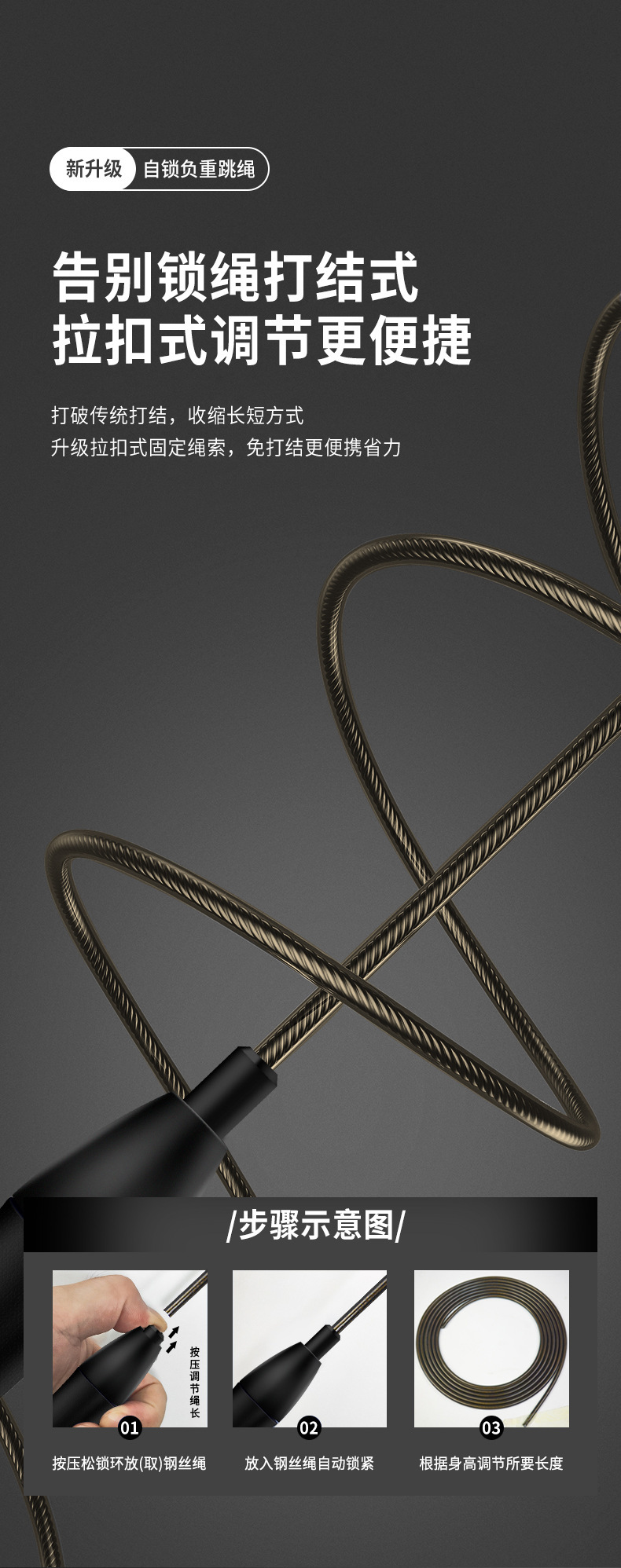 셀프 잠금 조정 가능한 레이싱 와이어 로프 건너 뛰는 학생 고등학교 입학 시험 경쟁 피트니스 로프 로드 지방 연소 스포츠 장비