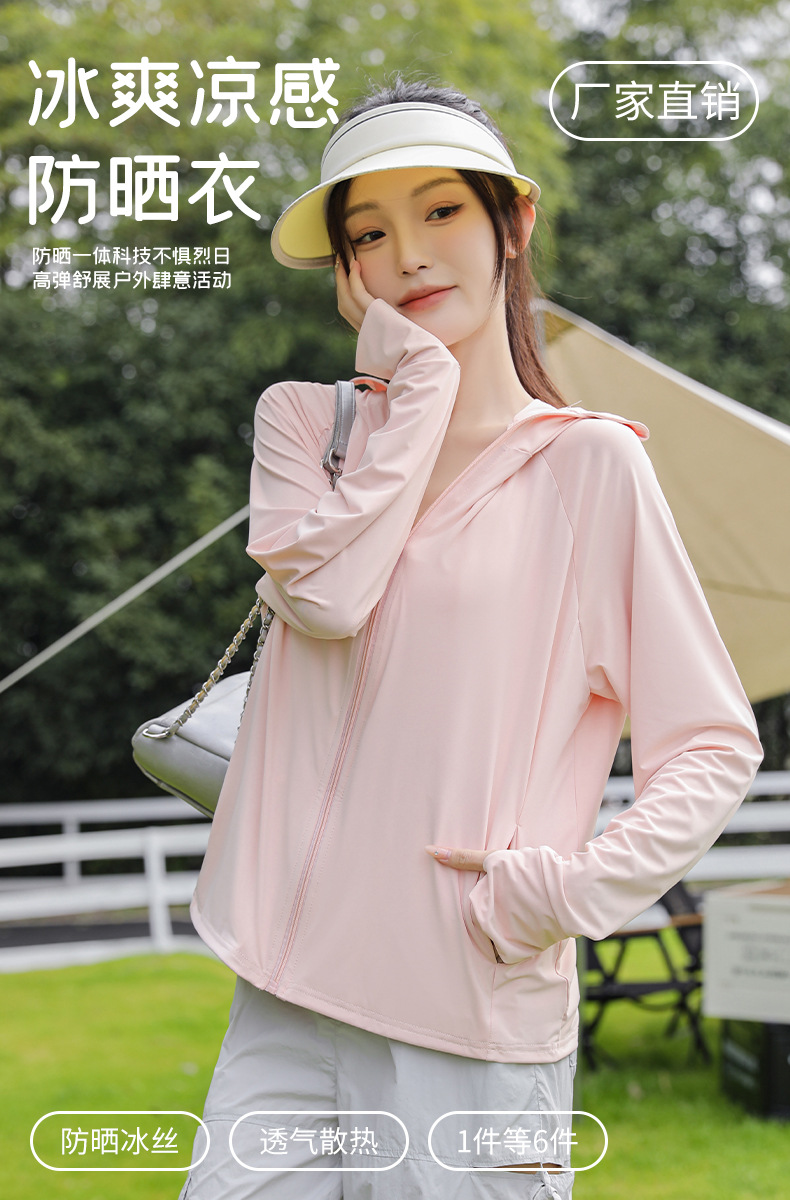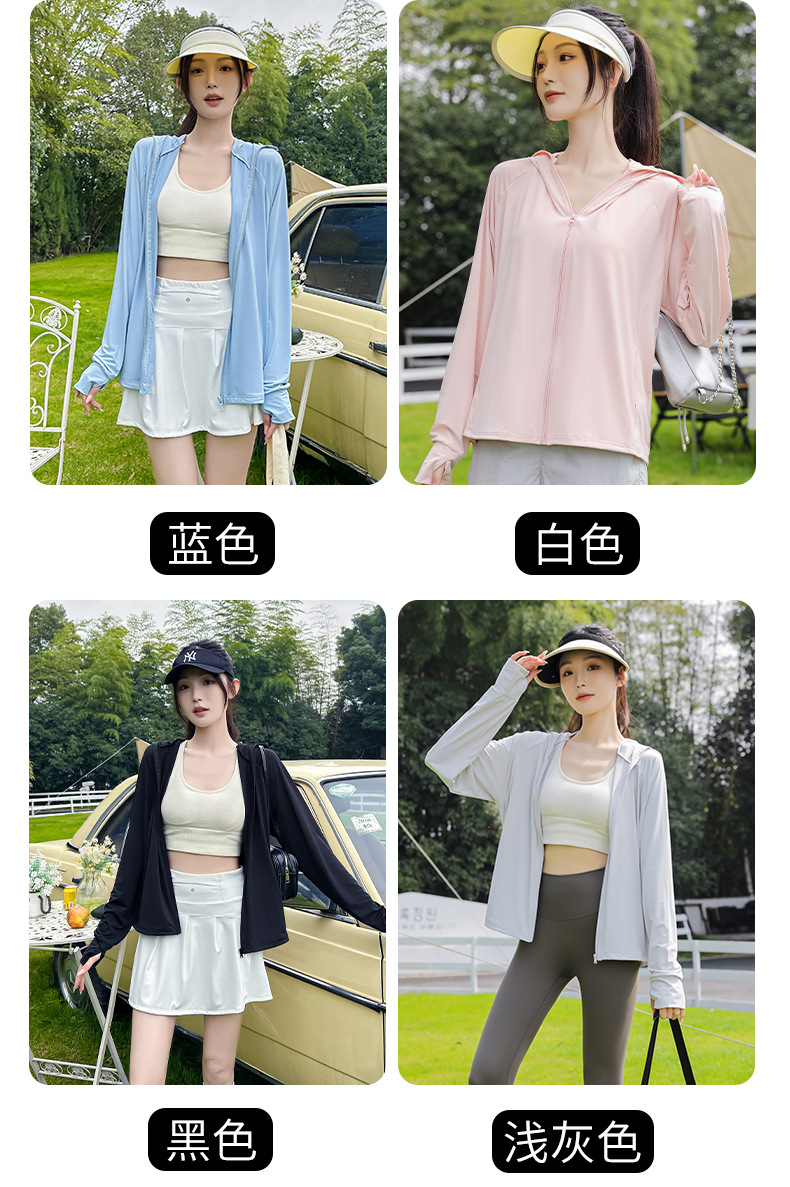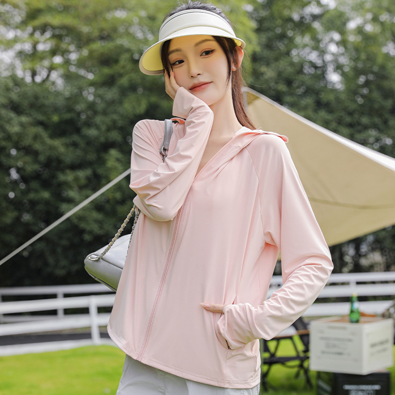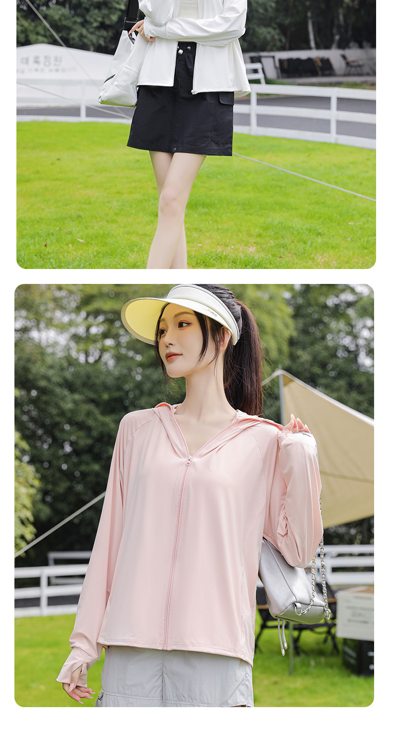 아이스 실크 자외선 차단 의류 여성용 스포츠 캐주얼 후드 재킷 통기성 야외 의류 자외선 차단 및 차양 기능