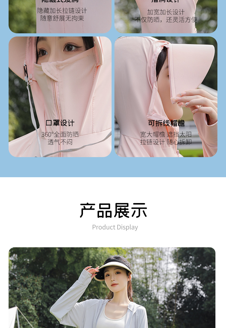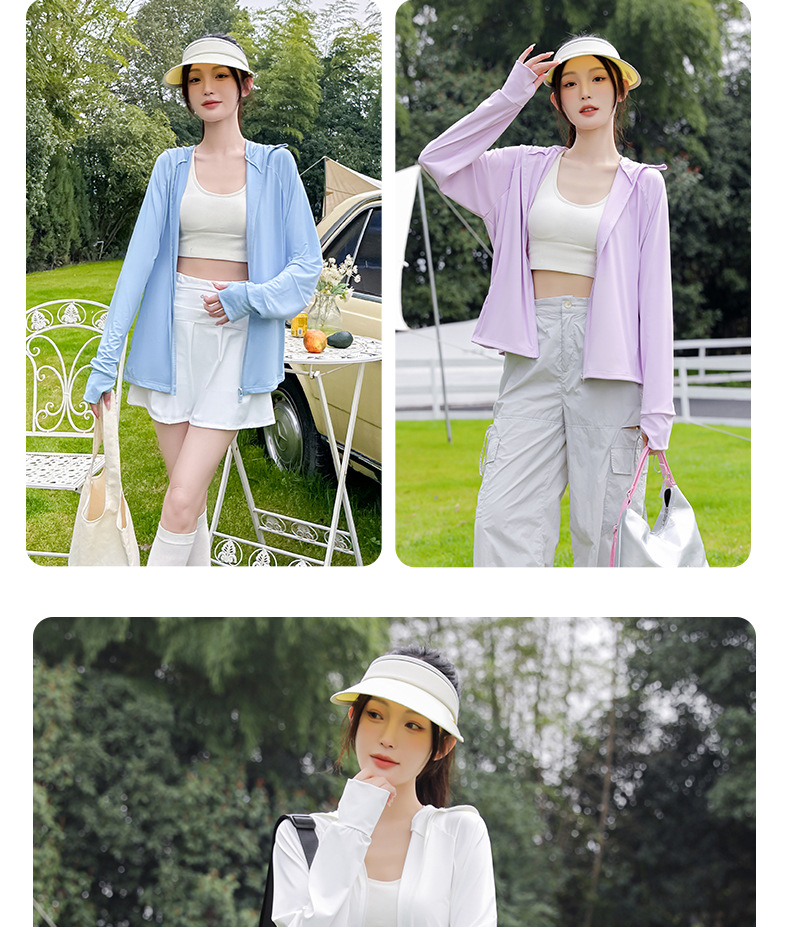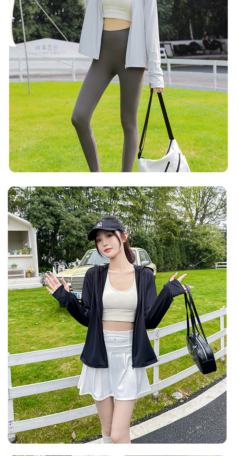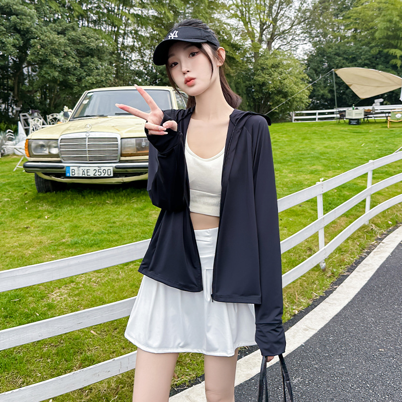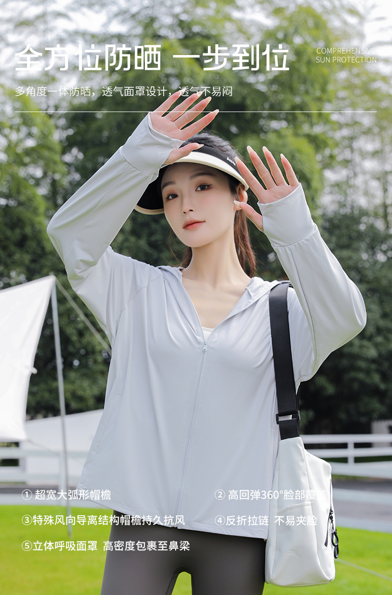 아이스 실크 자외선 차단 의류 여성용 스포츠 캐주얼 후드 재킷 통기성 야외 의류 자외선 차단 및 차양 기능
