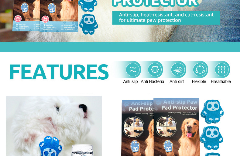 국경 간 개 발 패치, 인기 판매 애완 동물 미끄럼 방지 발 패치, 통기성 야외 보이지 않는 발 깔창, 개 산책 발 보호대