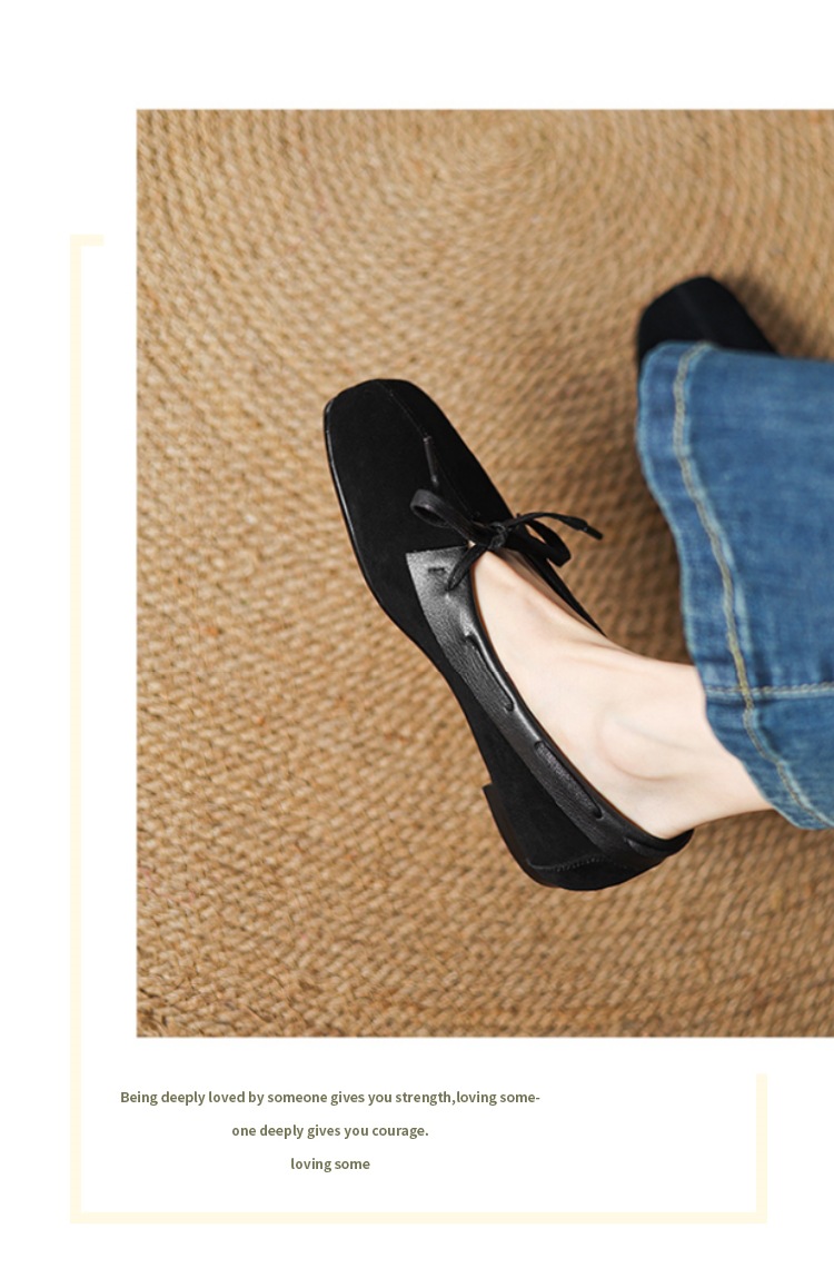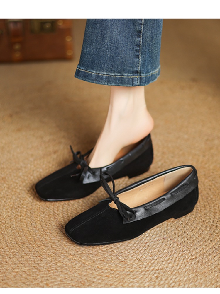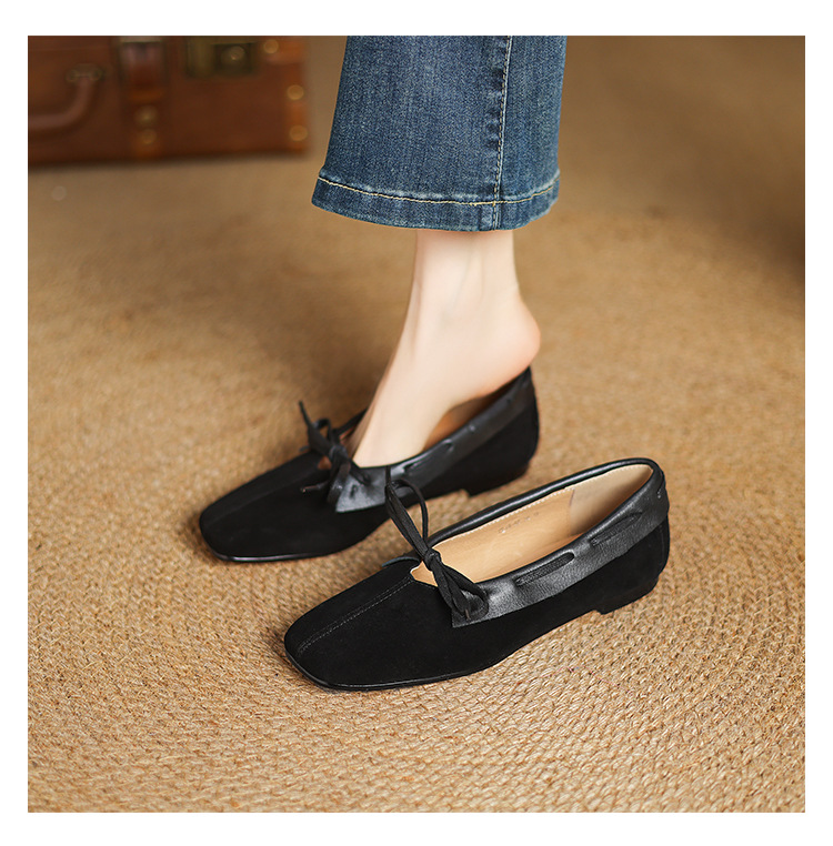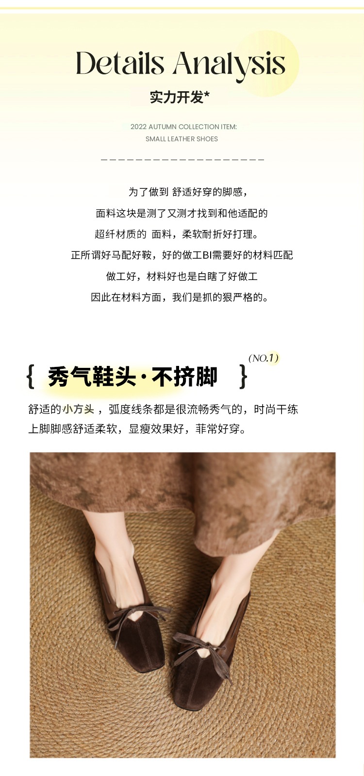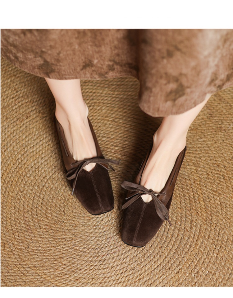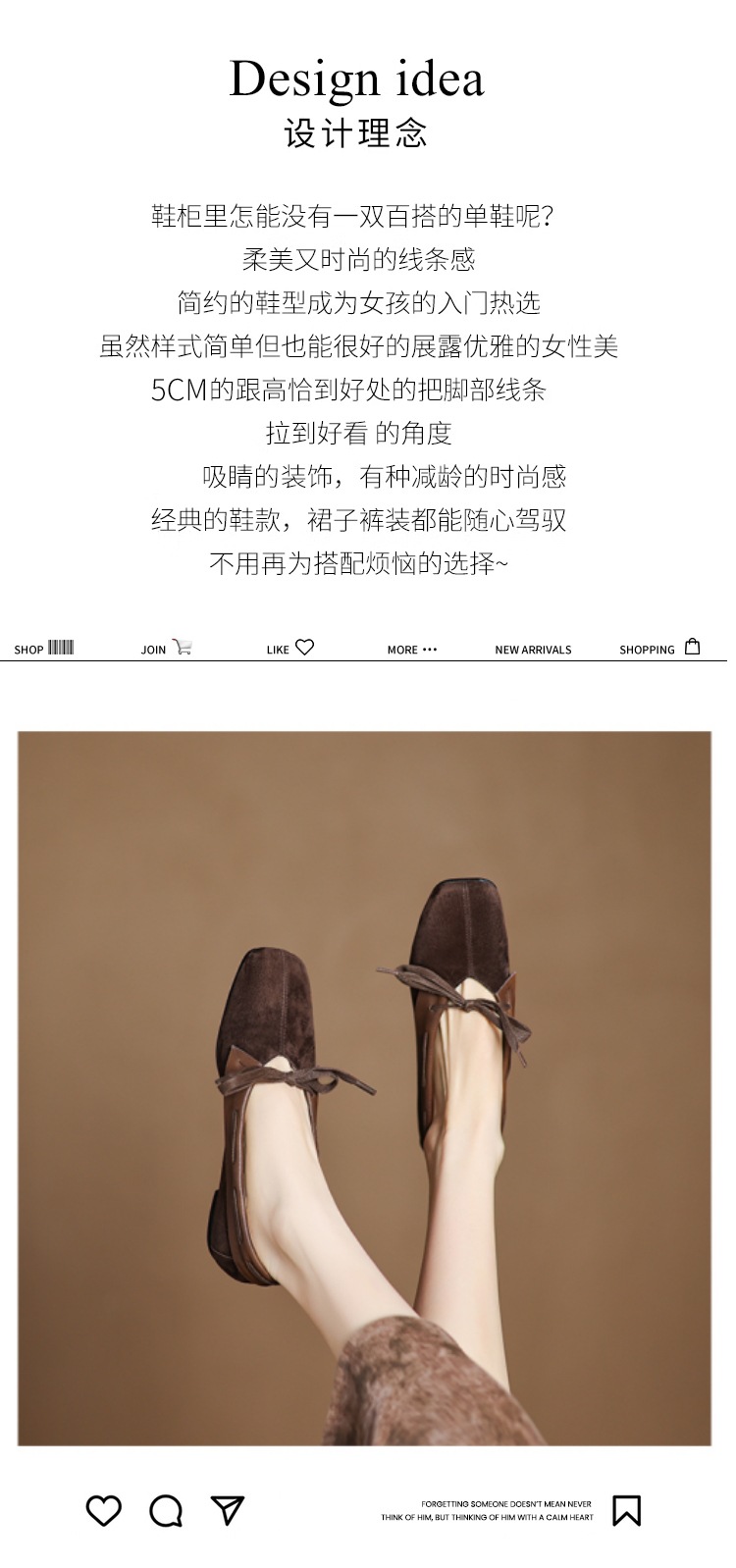 프랑스 스타일 작은 광장 발가락 메리 제인 신발 여성 봄과 여름 스웨이드 얕은 활 레트로 청키 힐 플랫 신발 작은 싱글 레이어 신발