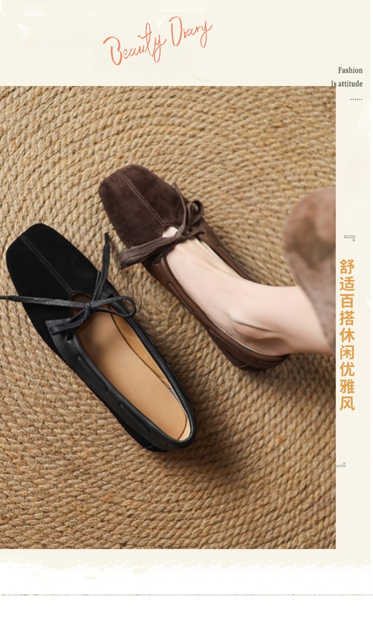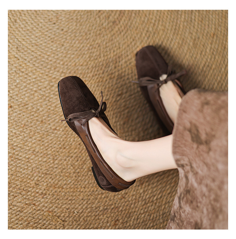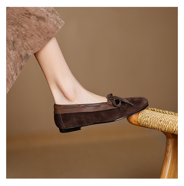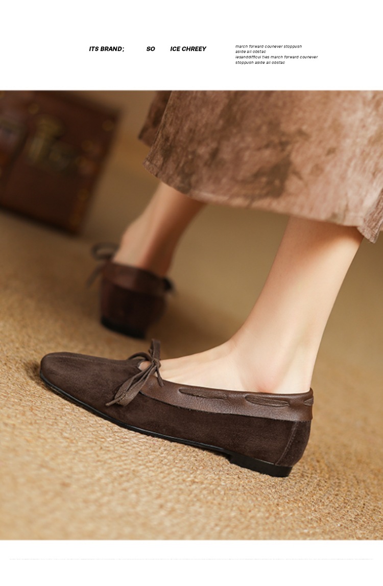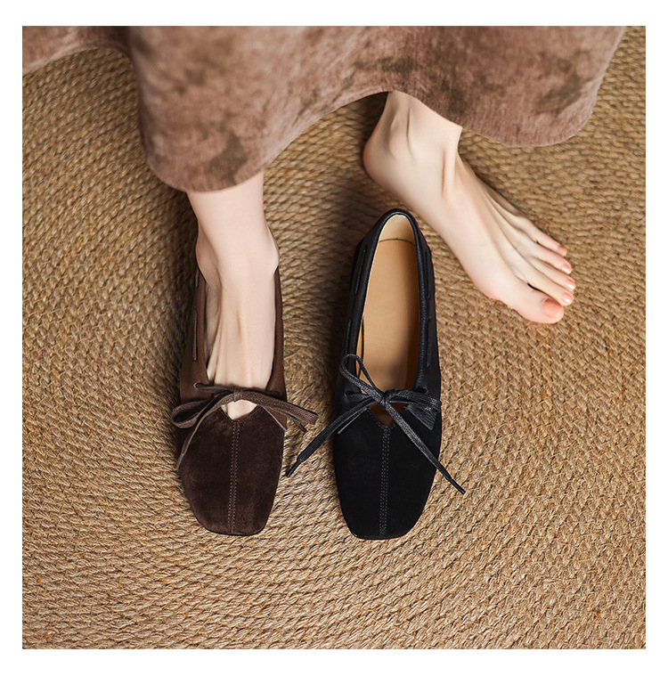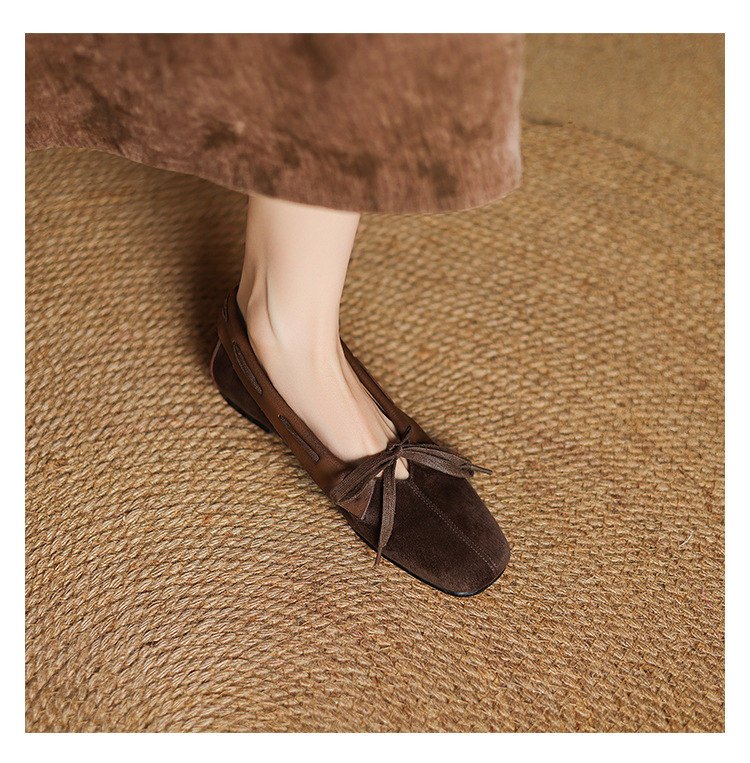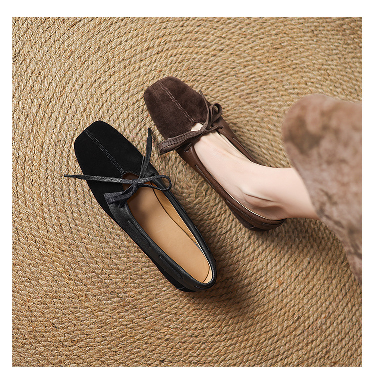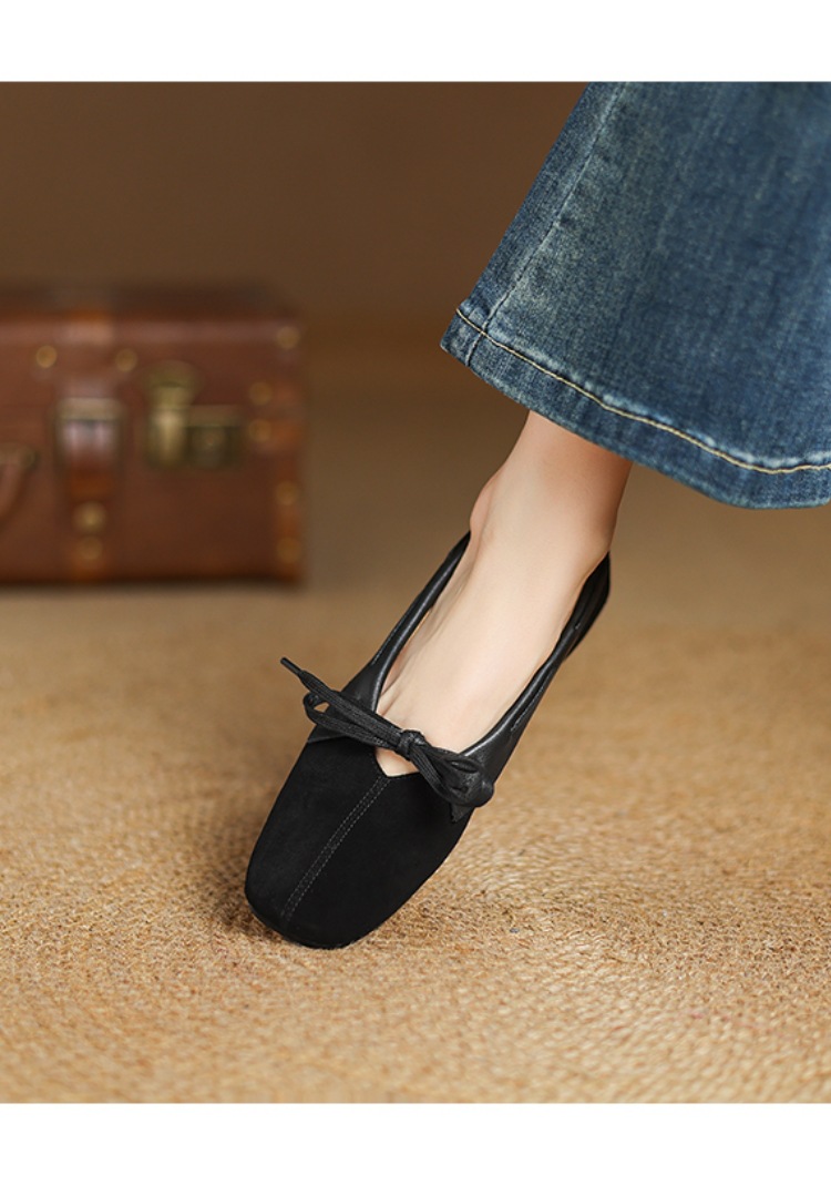 프랑스 스타일 작은 광장 발가락 메리 제인 신발 여성 봄과 여름 스웨이드 얕은 활 레트로 청키 힐 플랫 신발 작은 싱글 레이어 신발