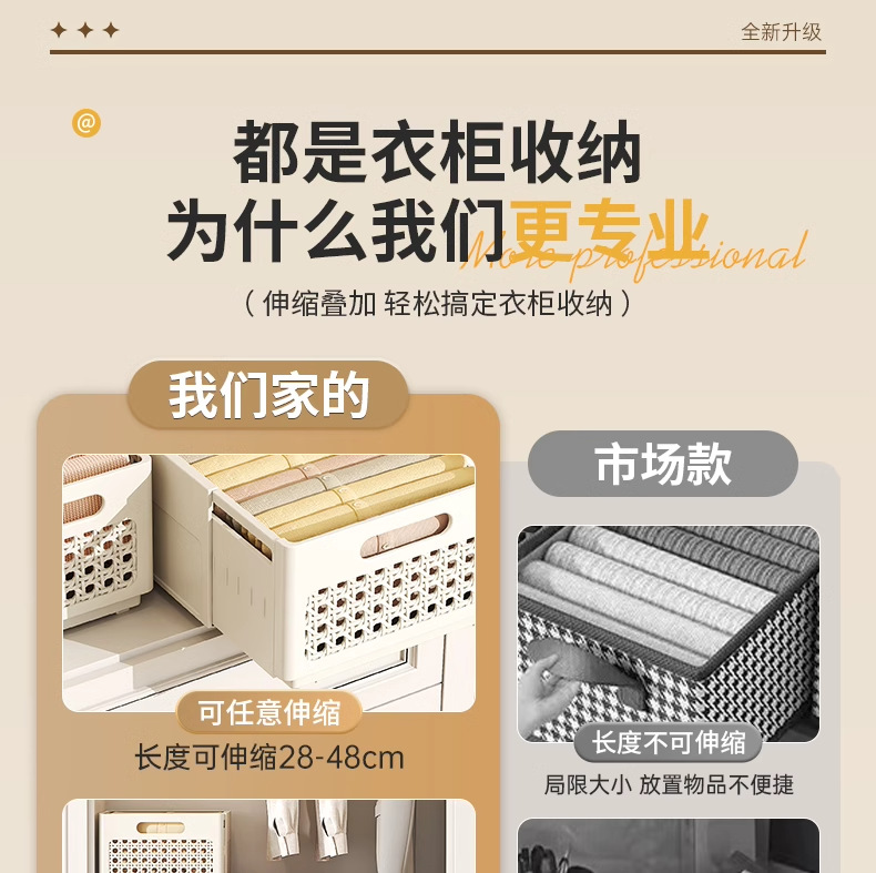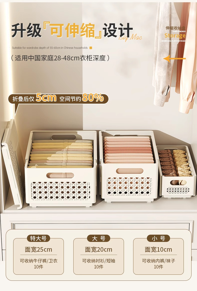 확장형 수납함 가정용 옷장 속옷 양말 분리형 정리함 서랍형 수납 바구니 옷 수납 바구니