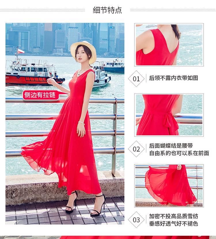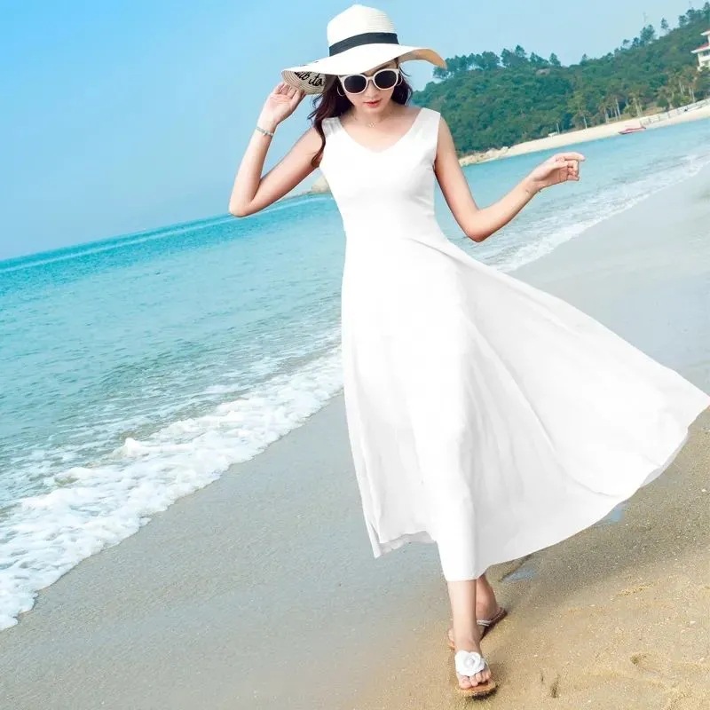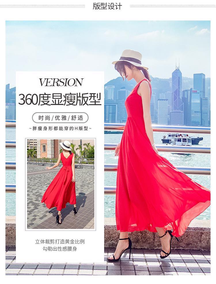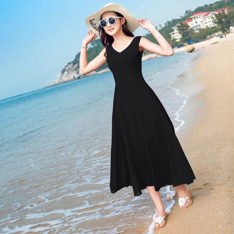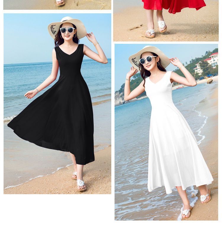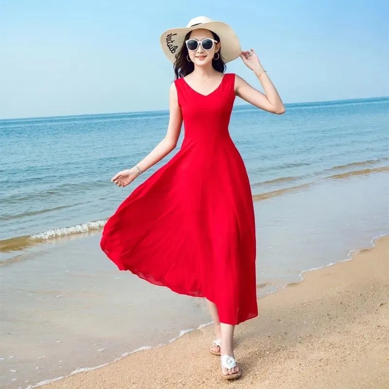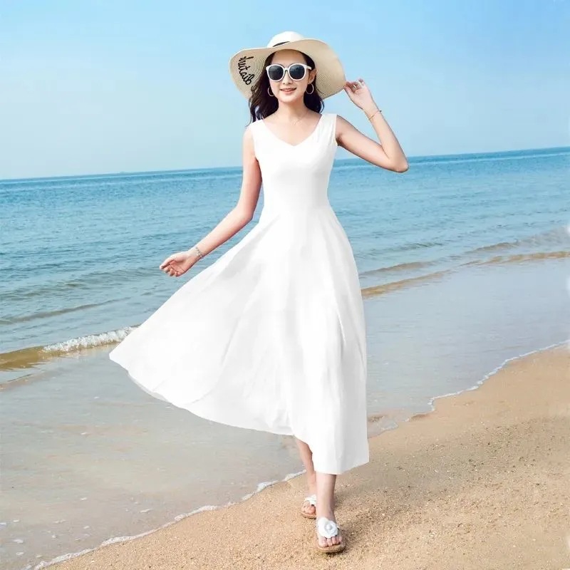 8869 쉬폰 드레스 여성 2024 해변 휴가 롱 스커트 여름 슬리밍 하이난 비치 스커트 조끼 섹시하고 패셔너블