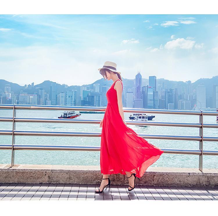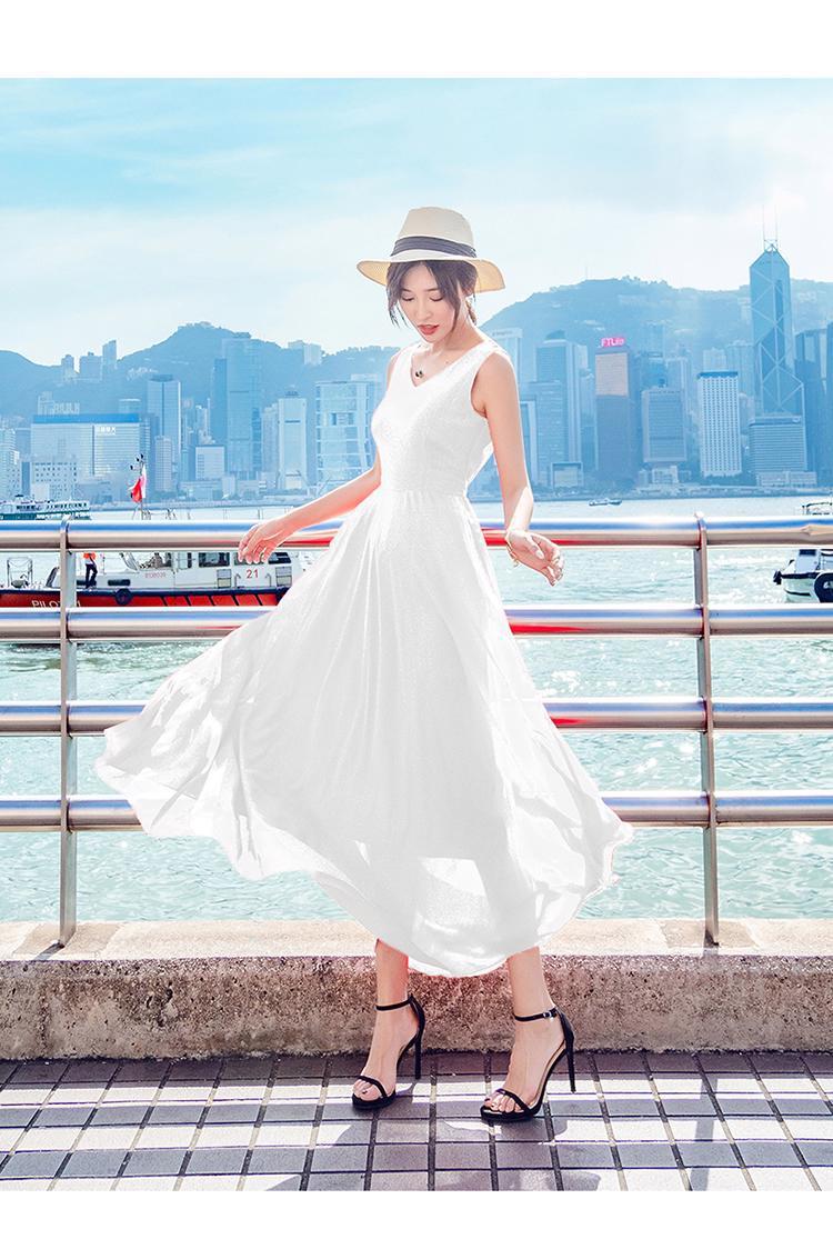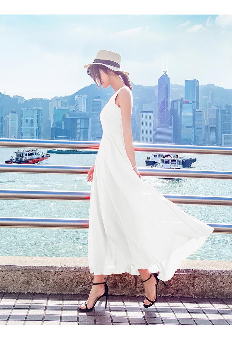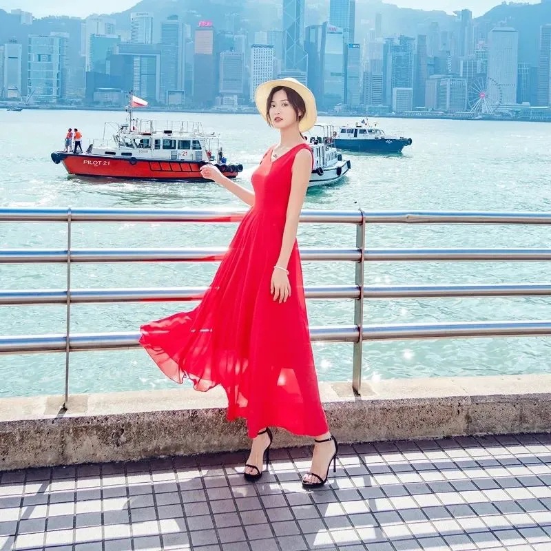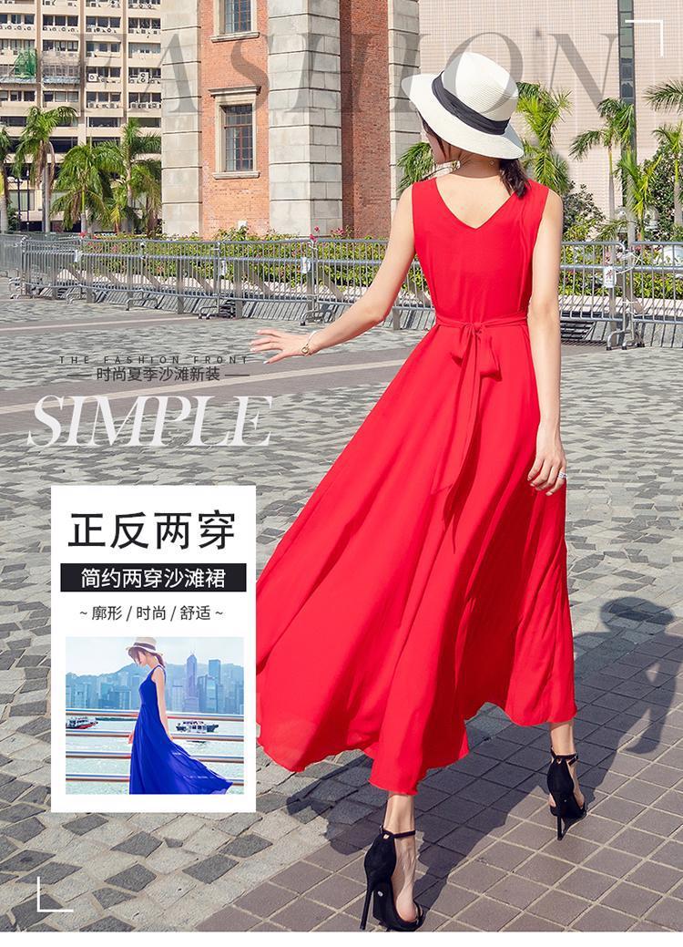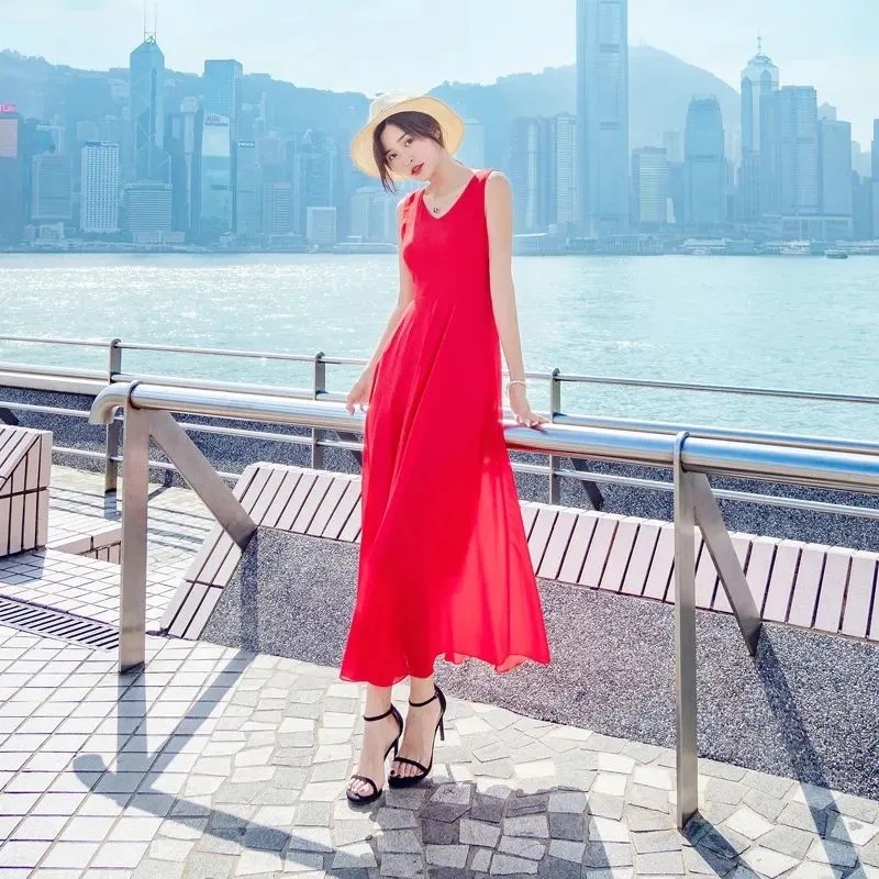 8869 쉬폰 드레스 여성 2024 해변 휴가 롱 스커트 여름 슬리밍 하이난 비치 스커트 조끼 섹시하고 패셔너블