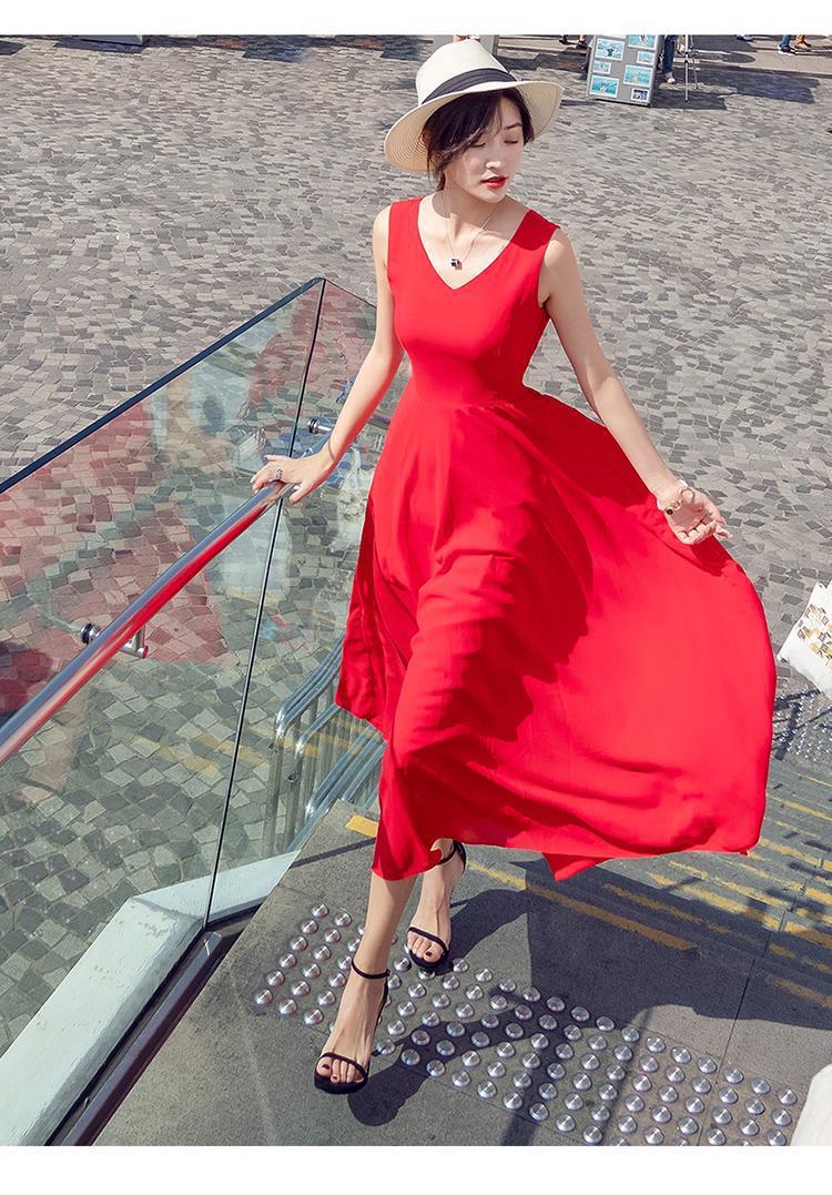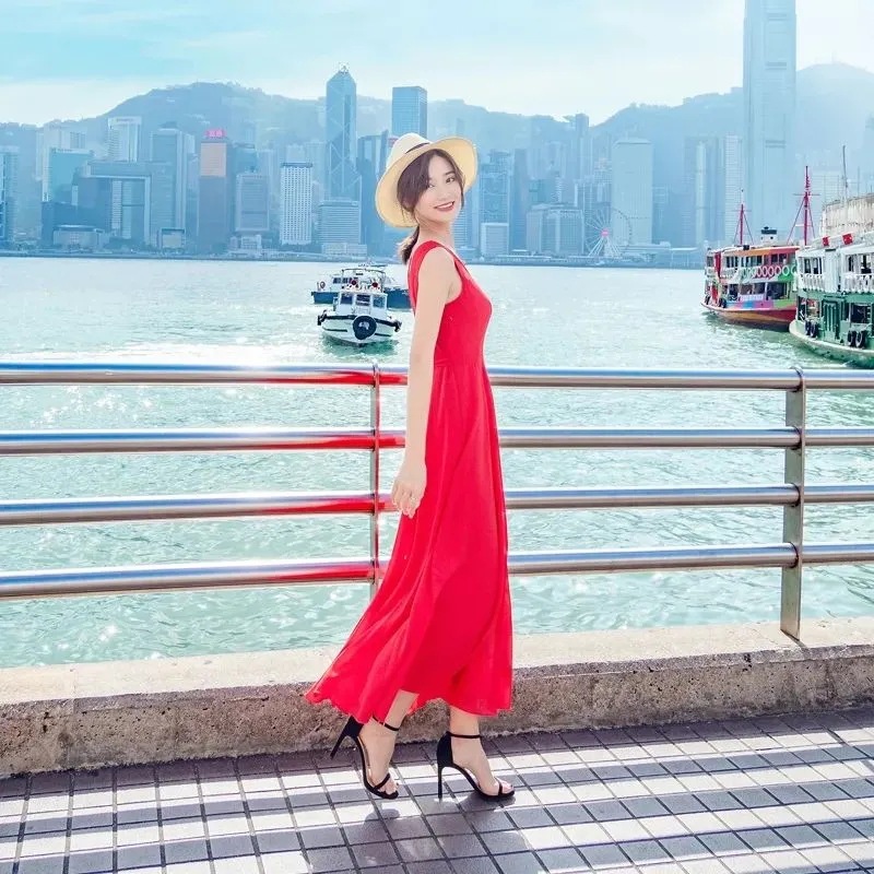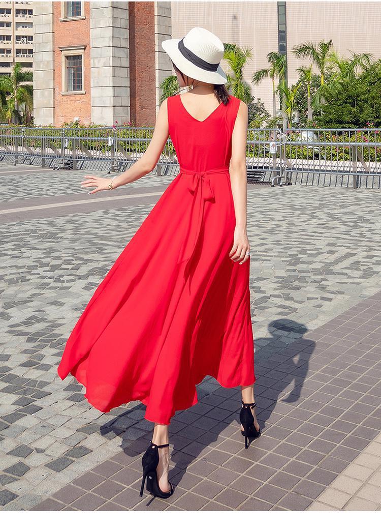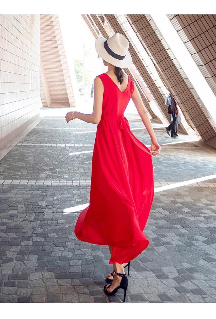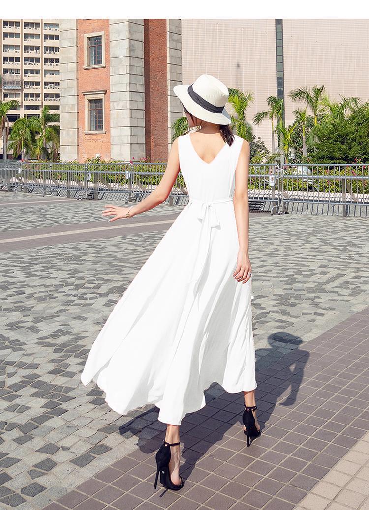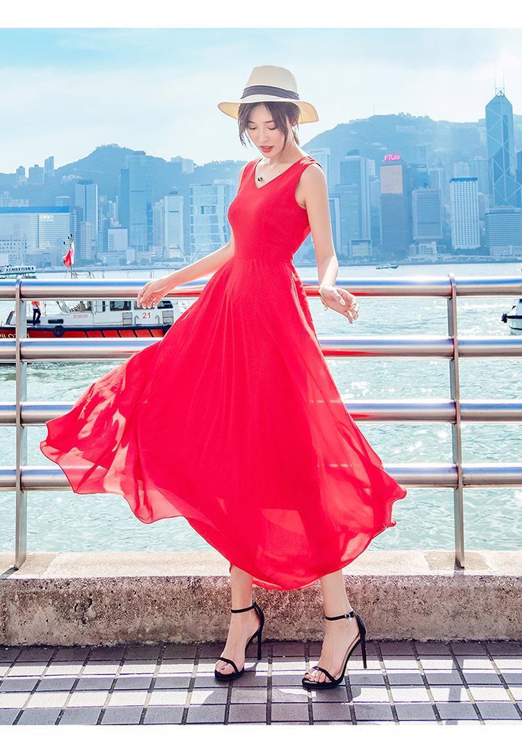 8869 쉬폰 드레스 여성 2024 해변 휴가 롱 스커트 여름 슬리밍 하이난 비치 스커트 조끼 섹시하고 패셔너블