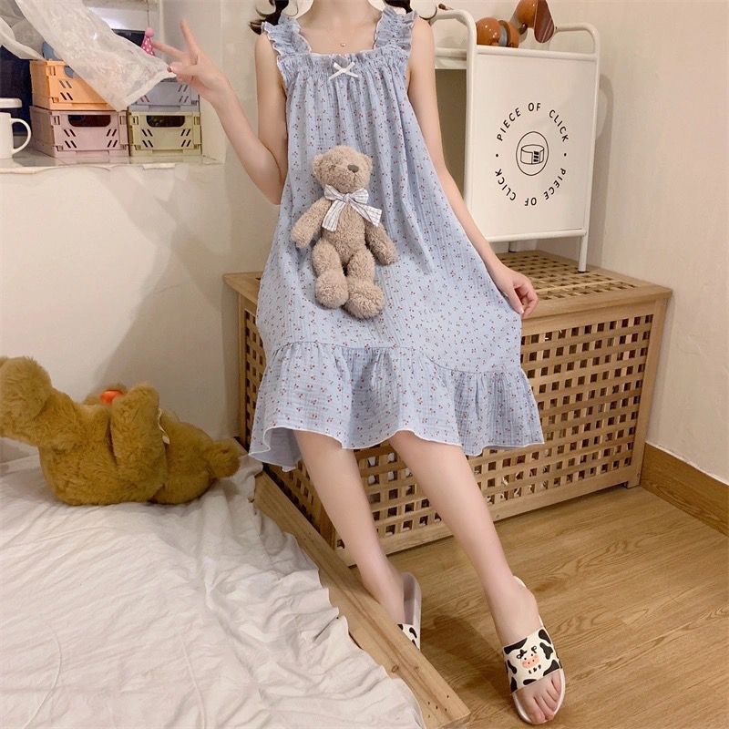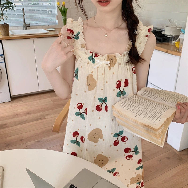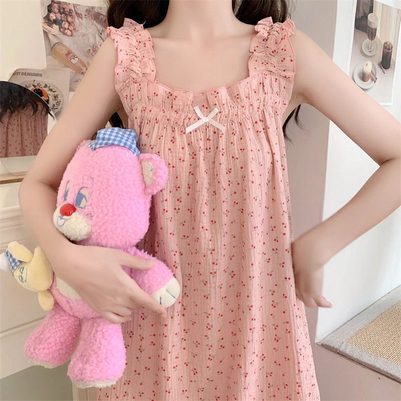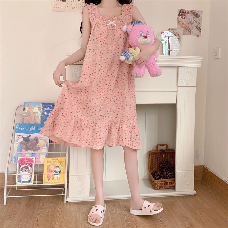 프랑스 스타일 순수한 욕망 스타일 외부 착용 슬립 스커트 여름 파자마 여성의 얇은 귀여운 니스 스타일 긴 스타일 홈 옷 나이트 드레스