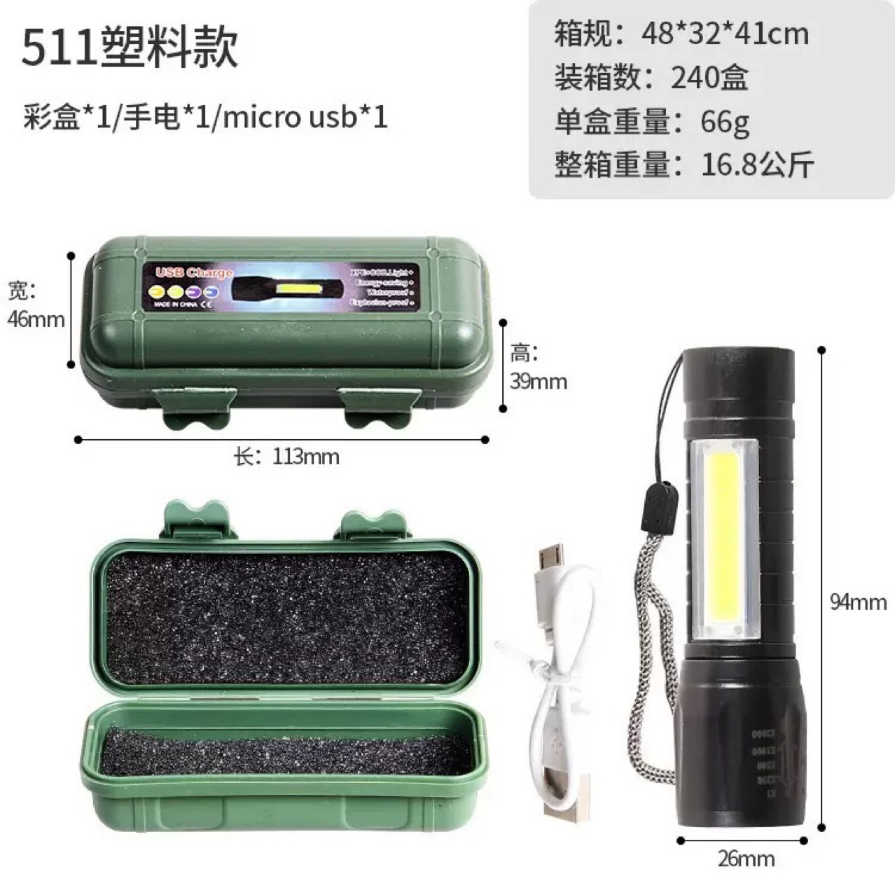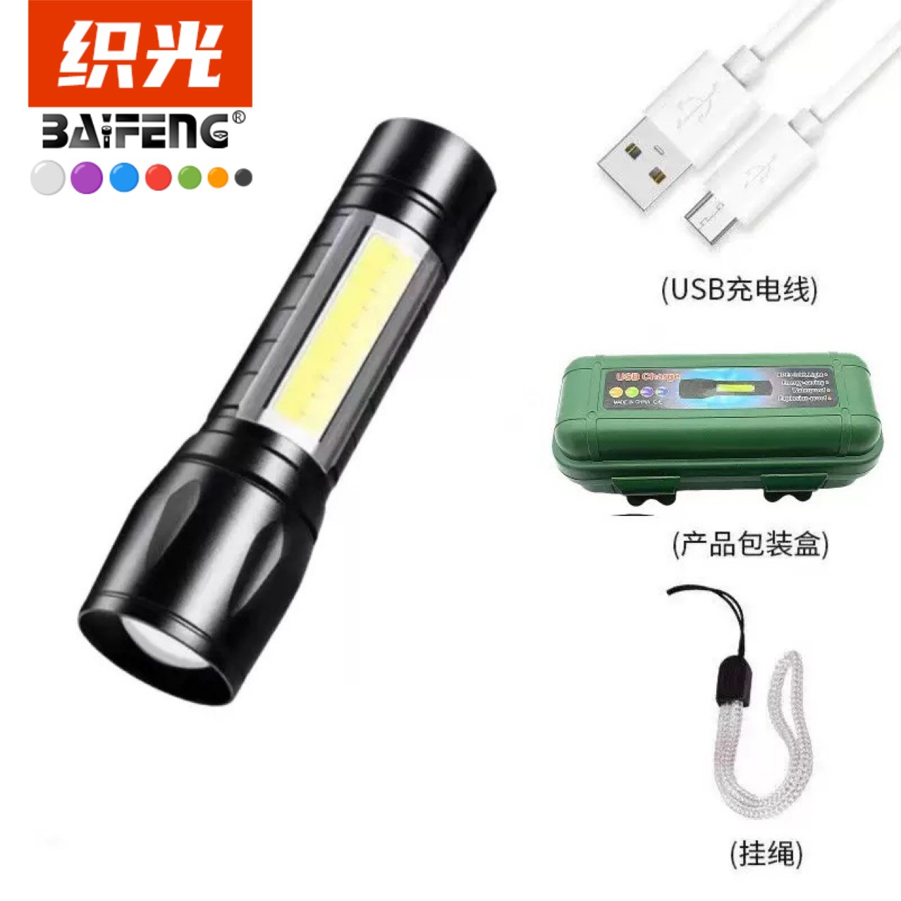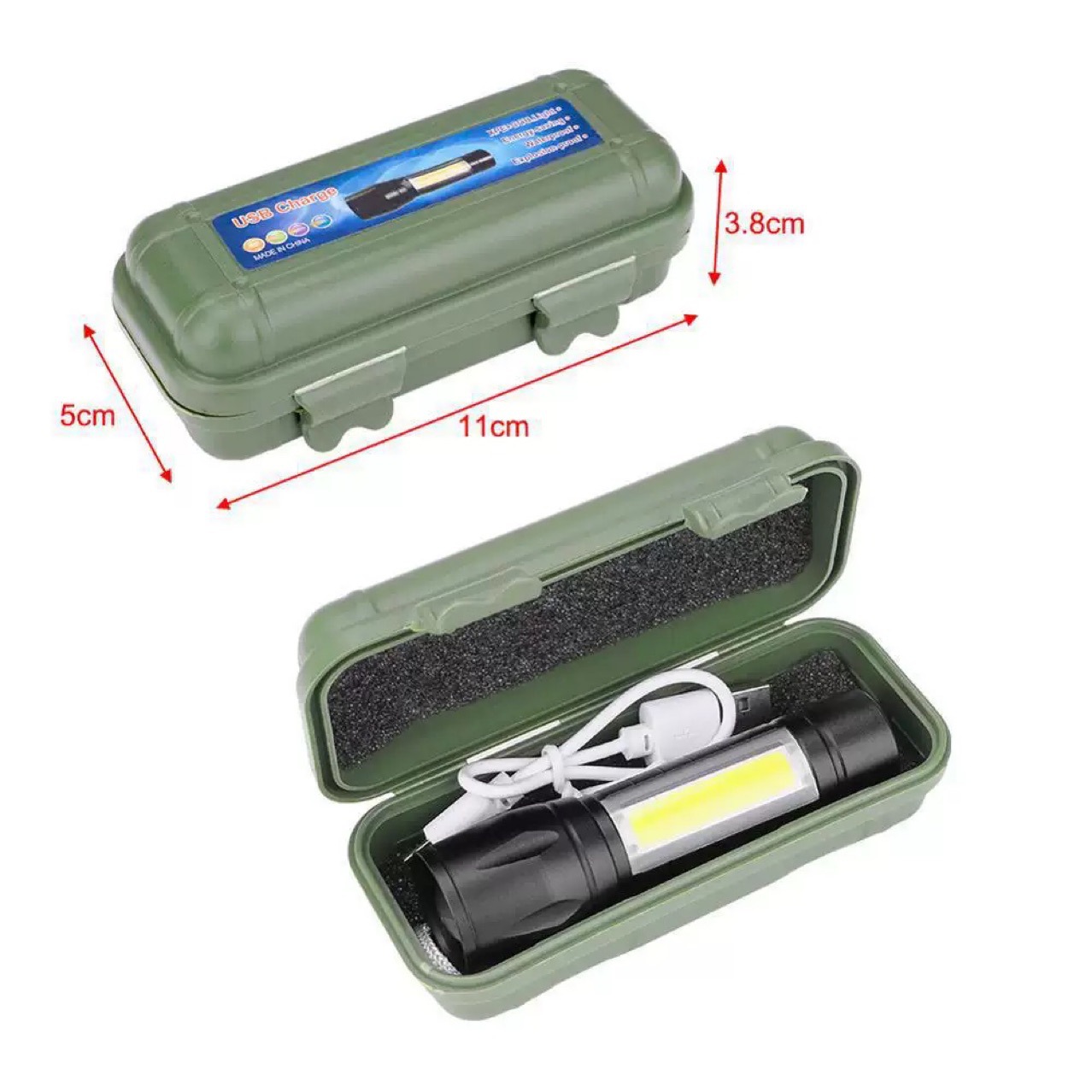 야외 강한 빛 손전등 텔레스코픽 줌 USB 충전식 미니 손전등 작고 휴대용 골든 후프 손전등