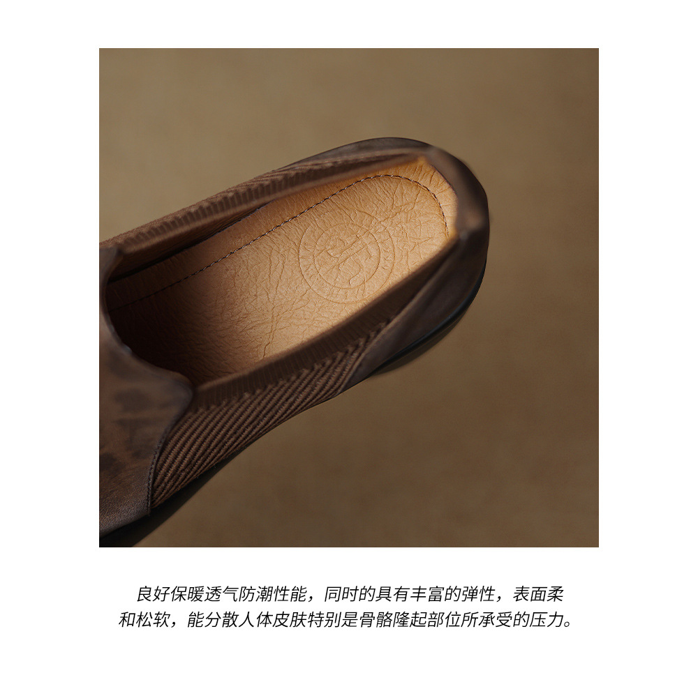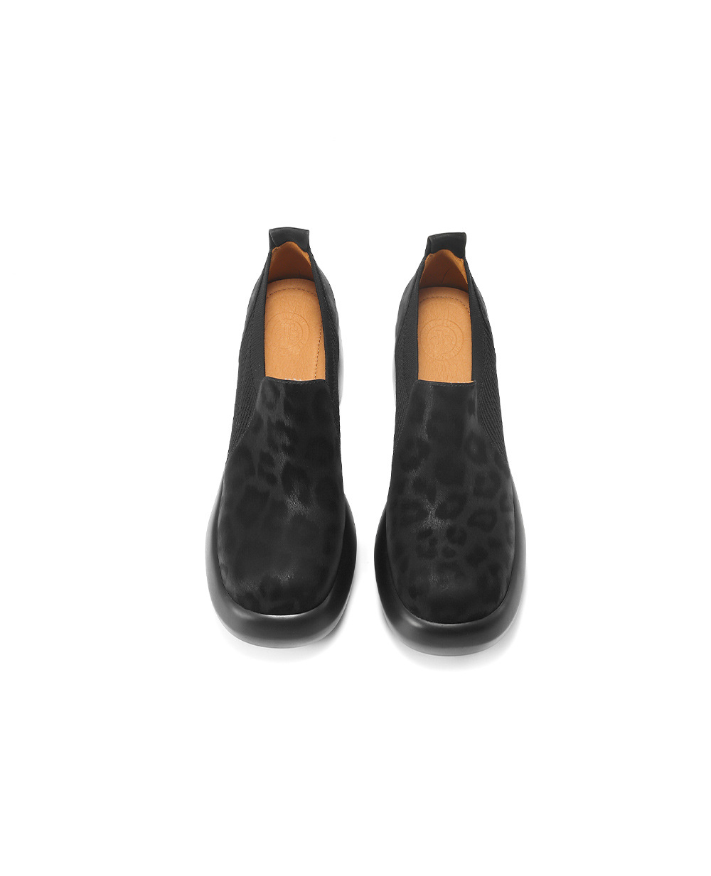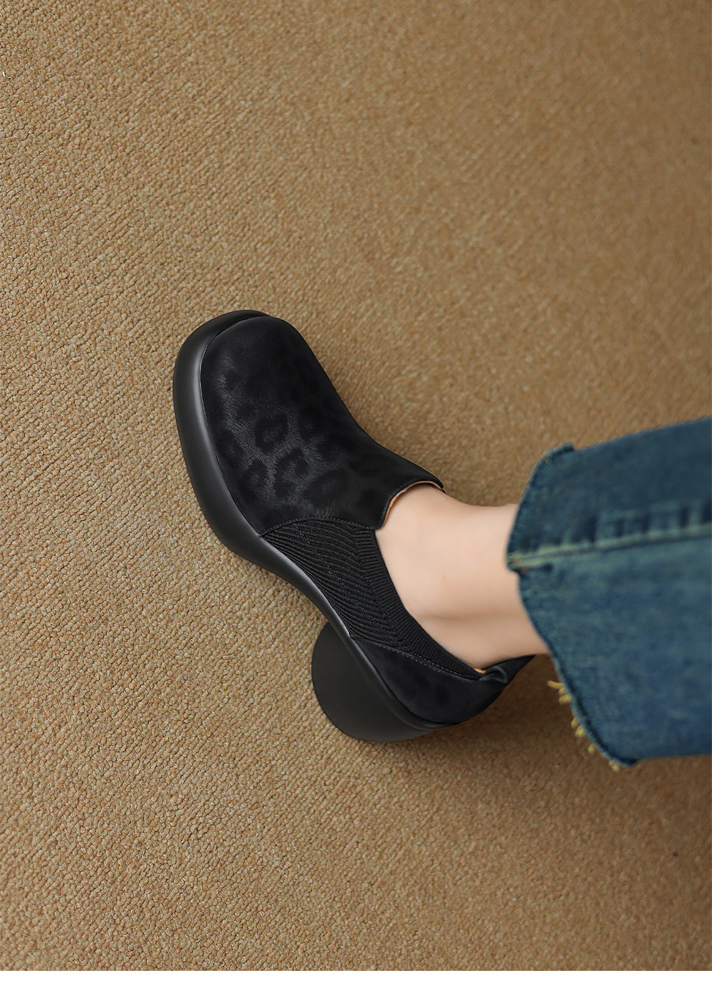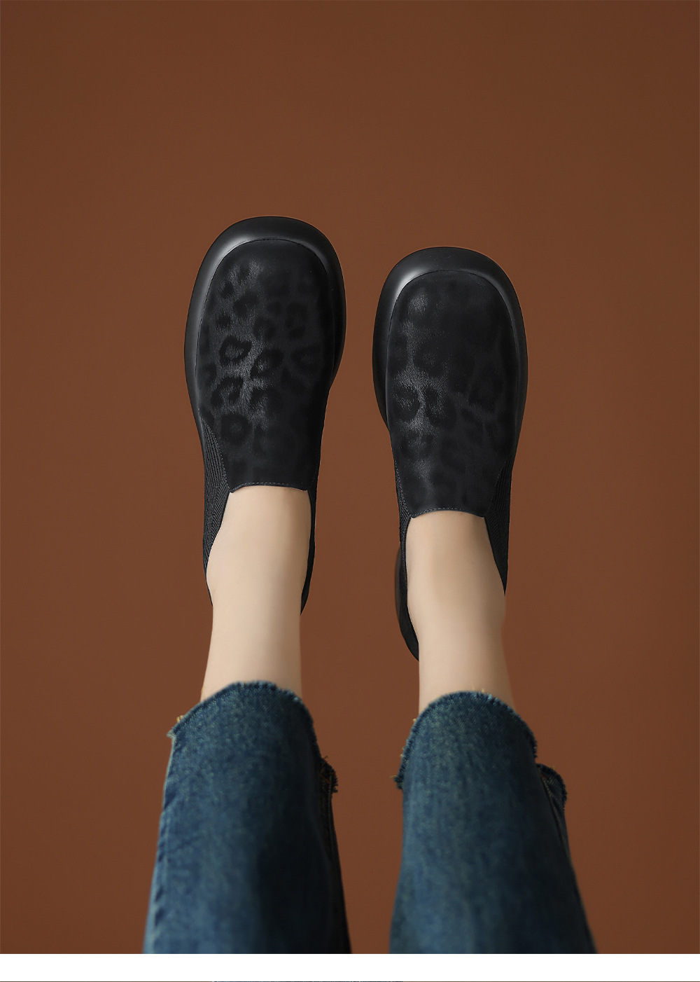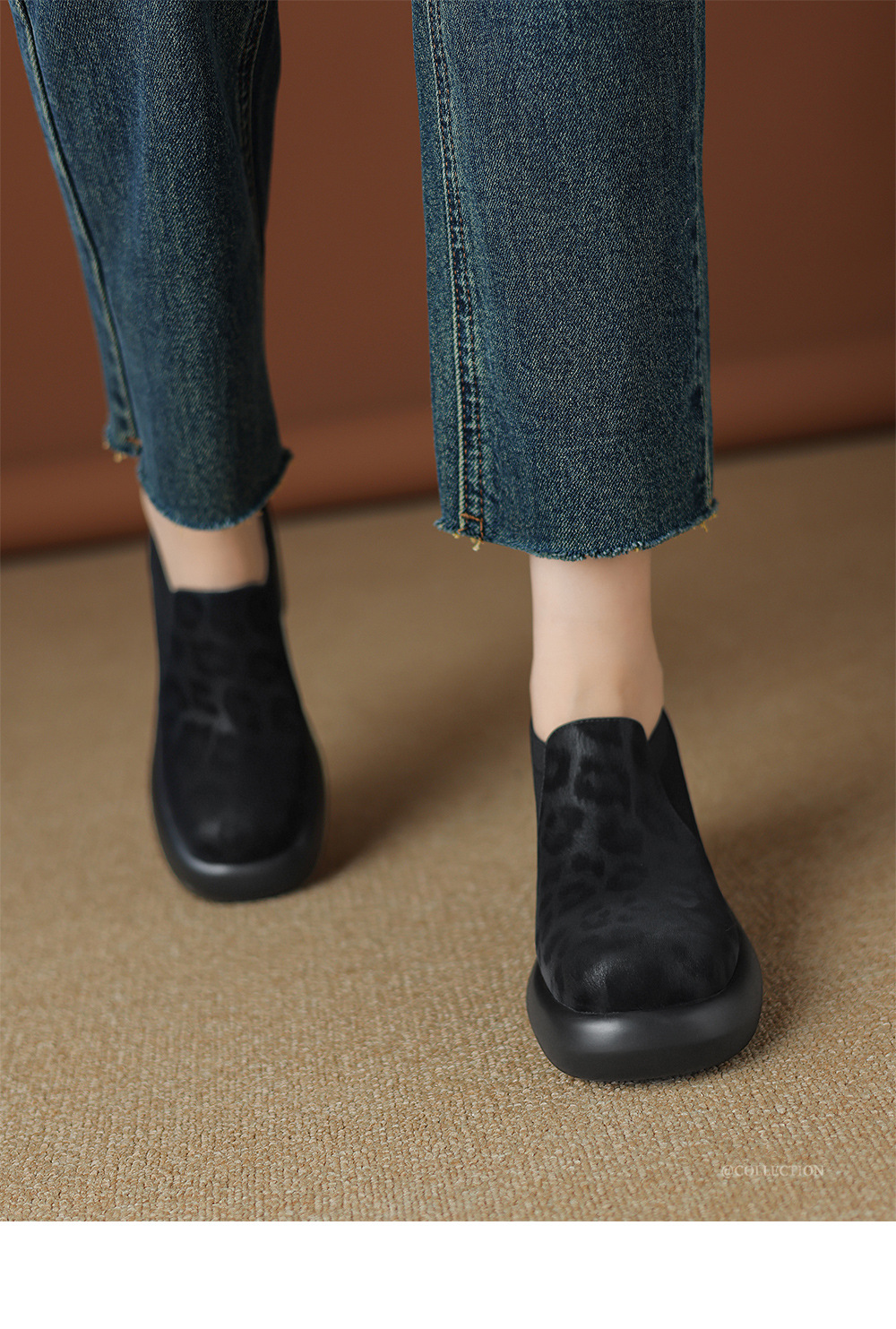 여성을위한 복고풍 스퀘어 토 레오파드 프린트 소가죽 두꺼운 굽 두꺼운 밑창 신발 2025 봄 새로운 딥 로퍼 슈즈는 매치하기 쉽습니다.