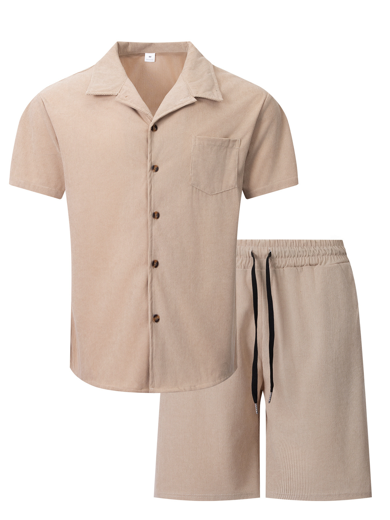 유럽과 미국의 국경 간 반팔 쿠바 칼라 셔츠 남자 여름 얇은 세트 캐주얼 운동복 여름 반바지 셔츠