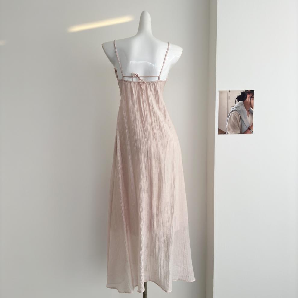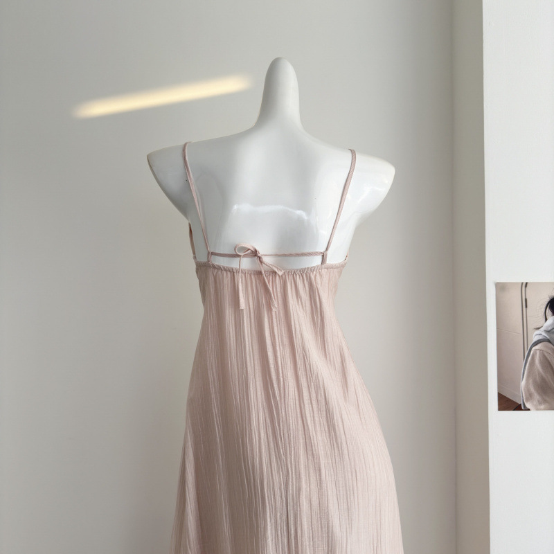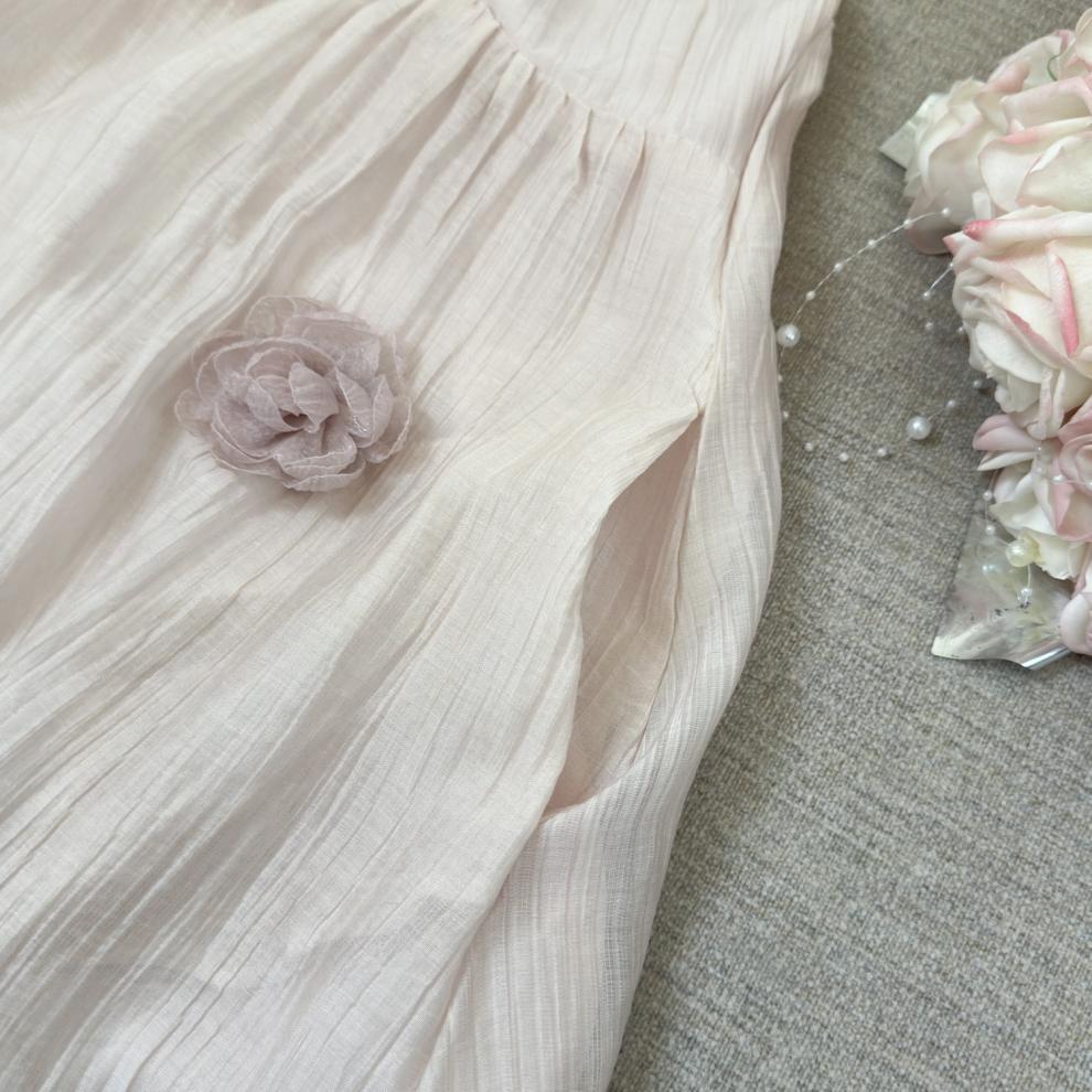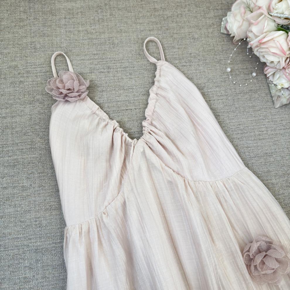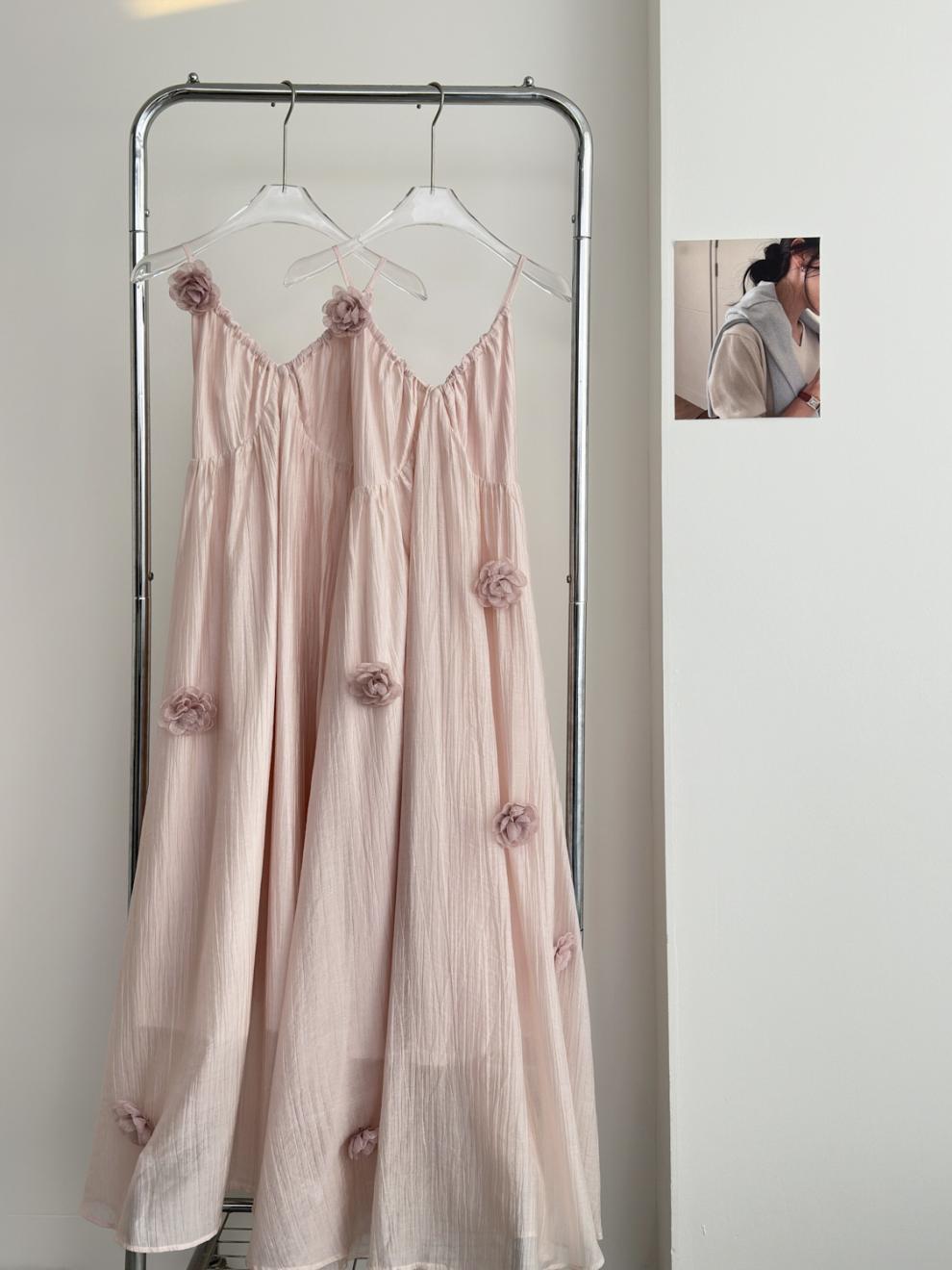 핑크 꽃 휴가 스타일 홀터넥 드레스 부드럽고 달콤한 요정 하이 엔드 비치 드레스