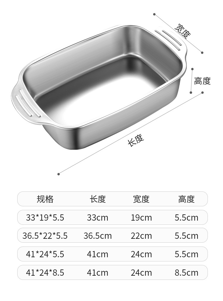 [길이 41*가로 24 높이 5] 대형 - 평평한 바닥 - 얕은 스타일 + 스테인레스 스틸 뚜껑