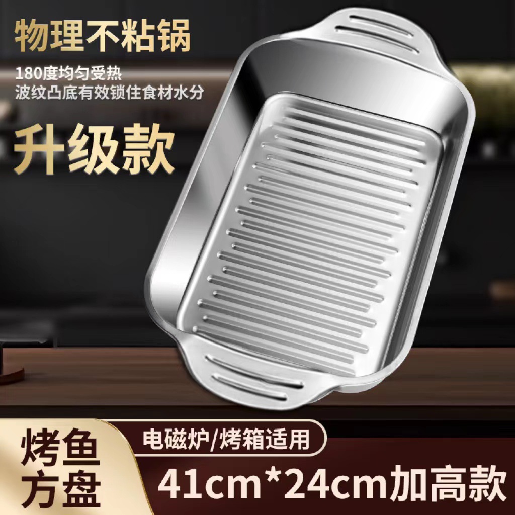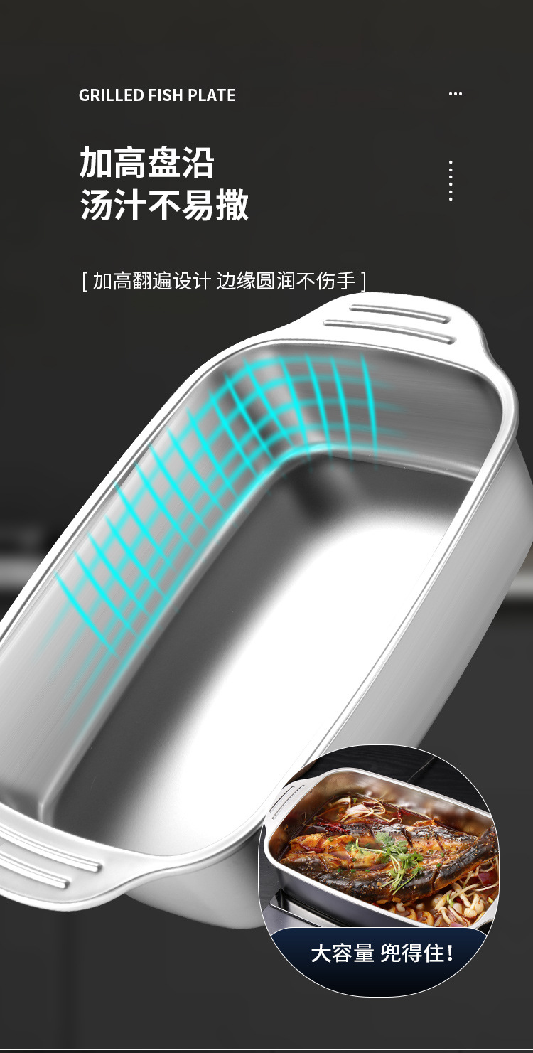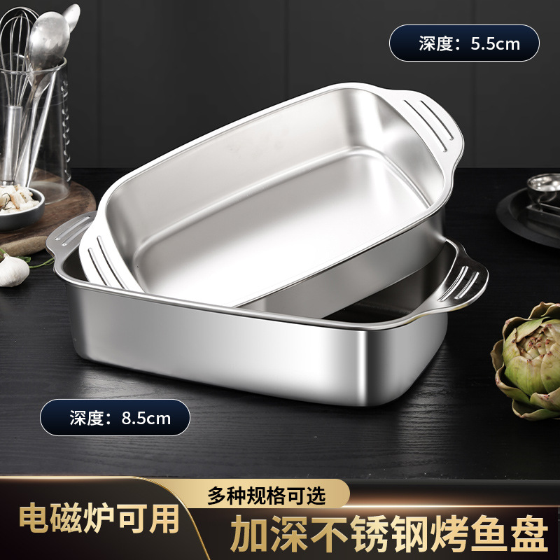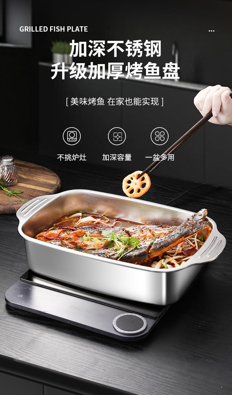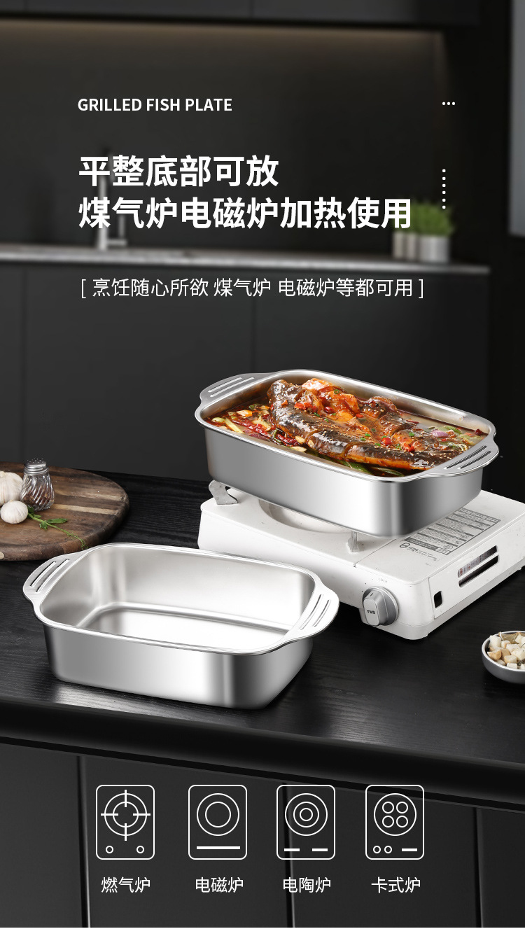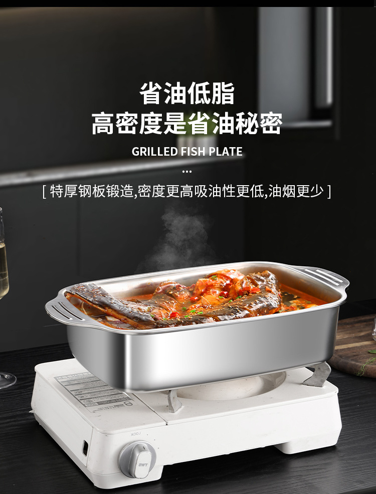 스테인레스 스틸 생선 구이 접시, 찜 접시, 그릴 접시, 샤브 샤브 바베큐 접시, 두꺼운 생선 구이 접시, 대형, 중형 및 소형