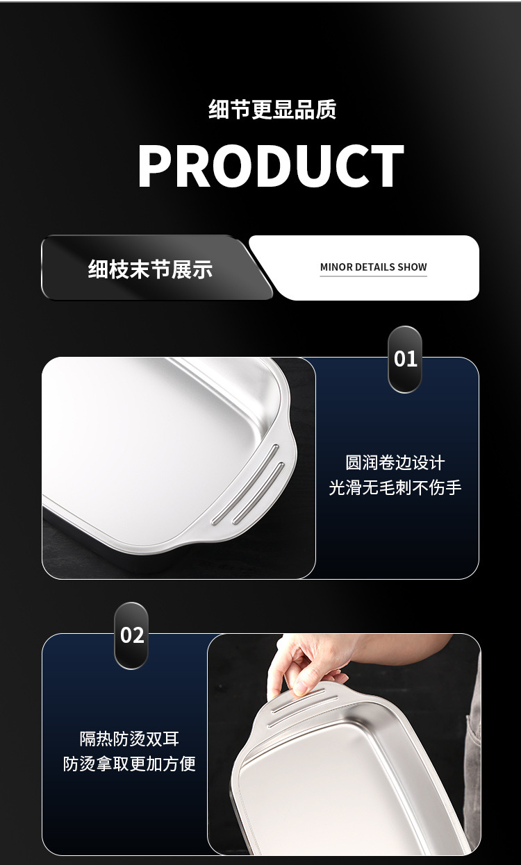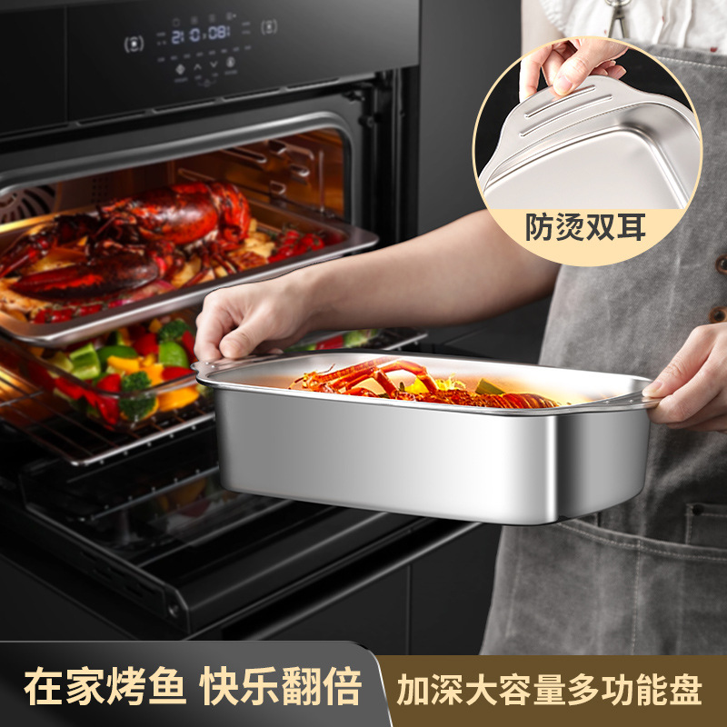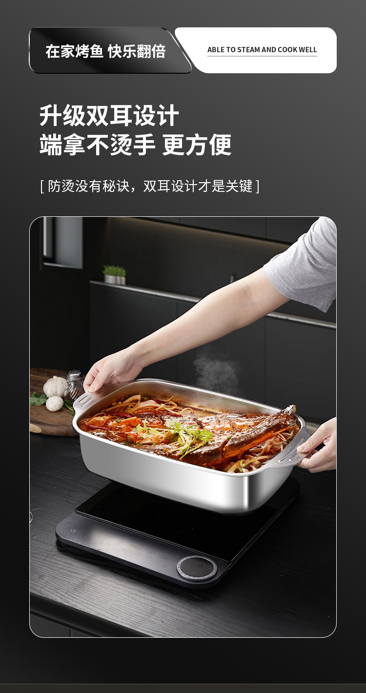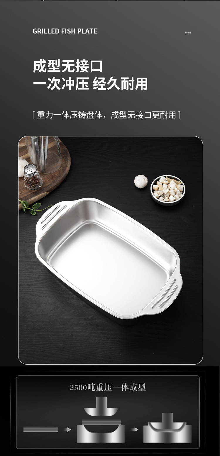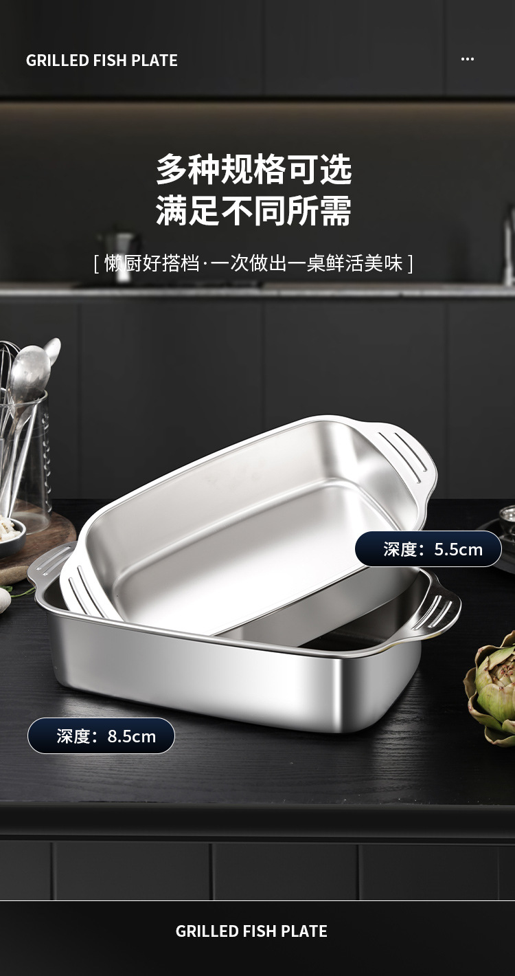 스테인레스 스틸 생선 구이 접시, 찜 접시, 그릴 접시, 샤브 샤브 바베큐 접시, 두꺼운 생선 구이 접시, 대형, 중형 및 소형