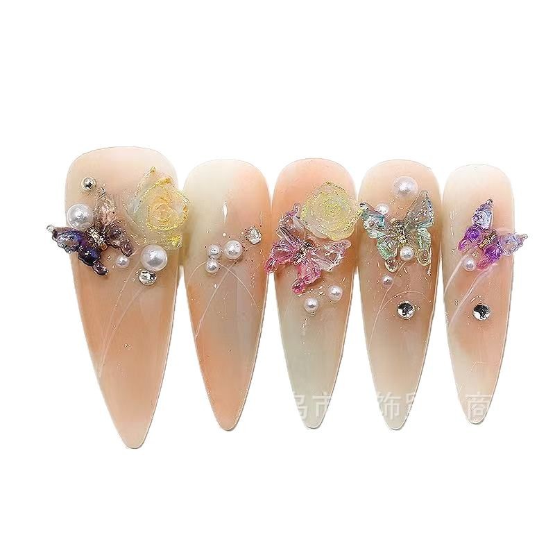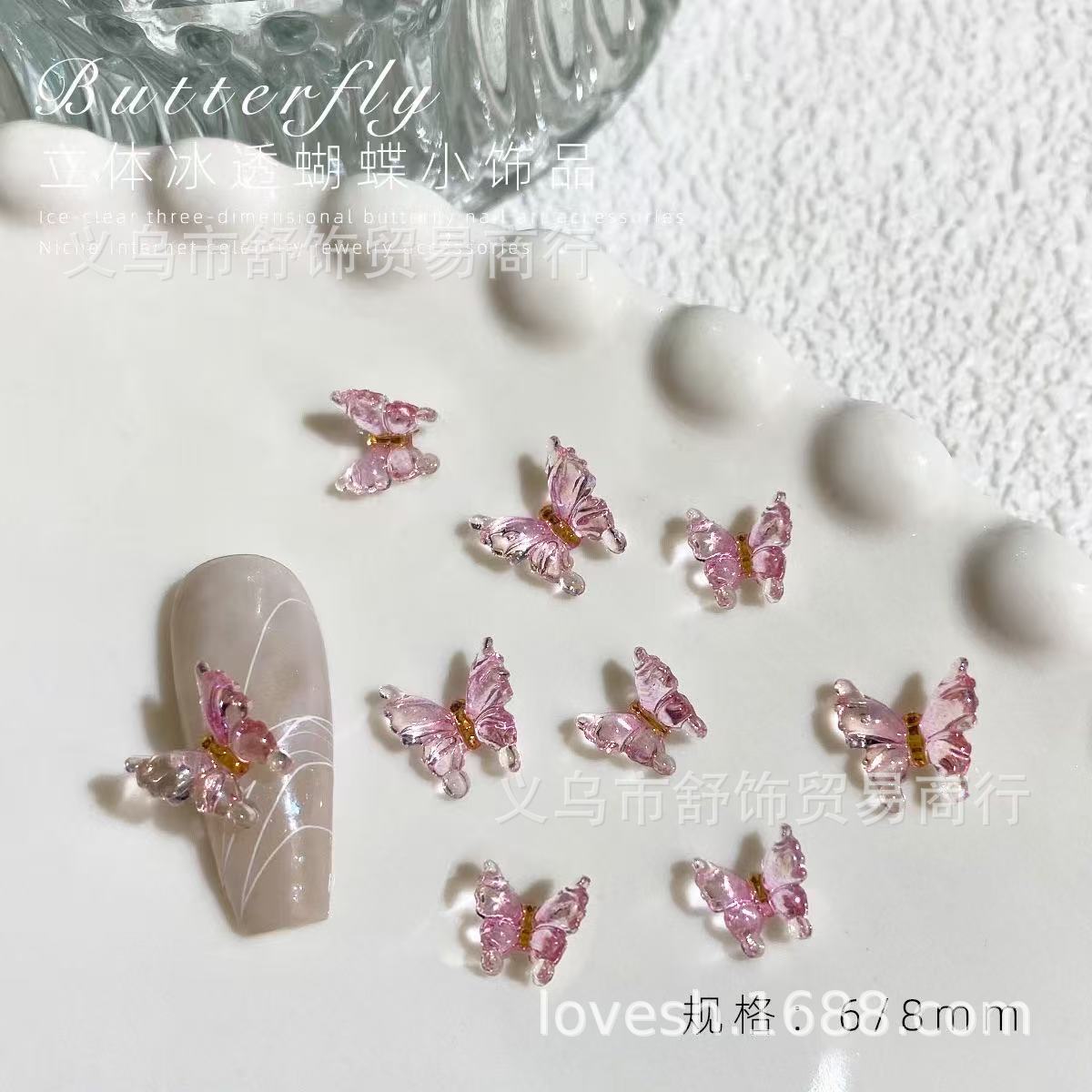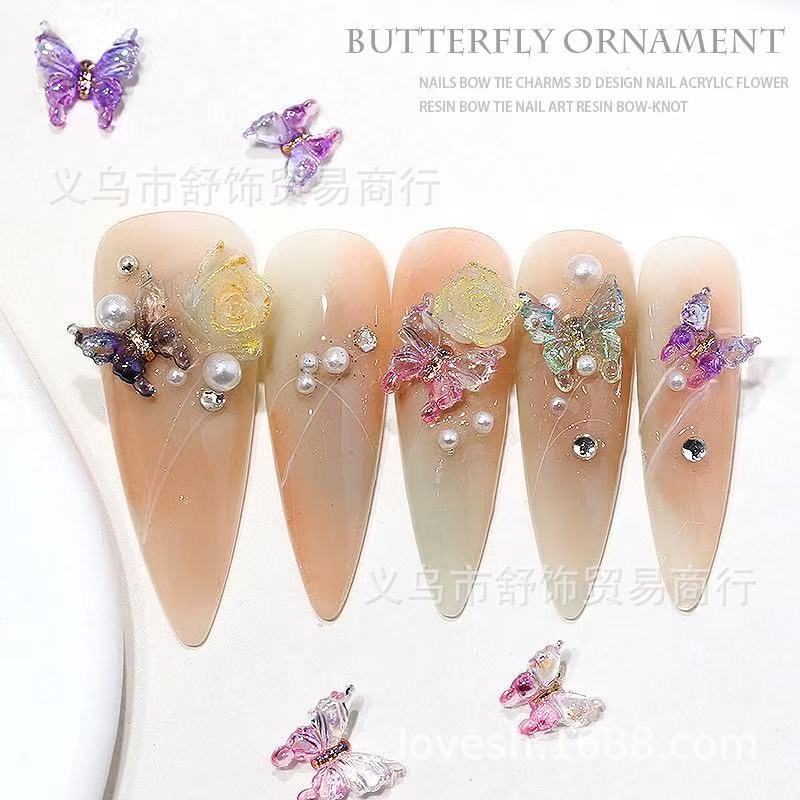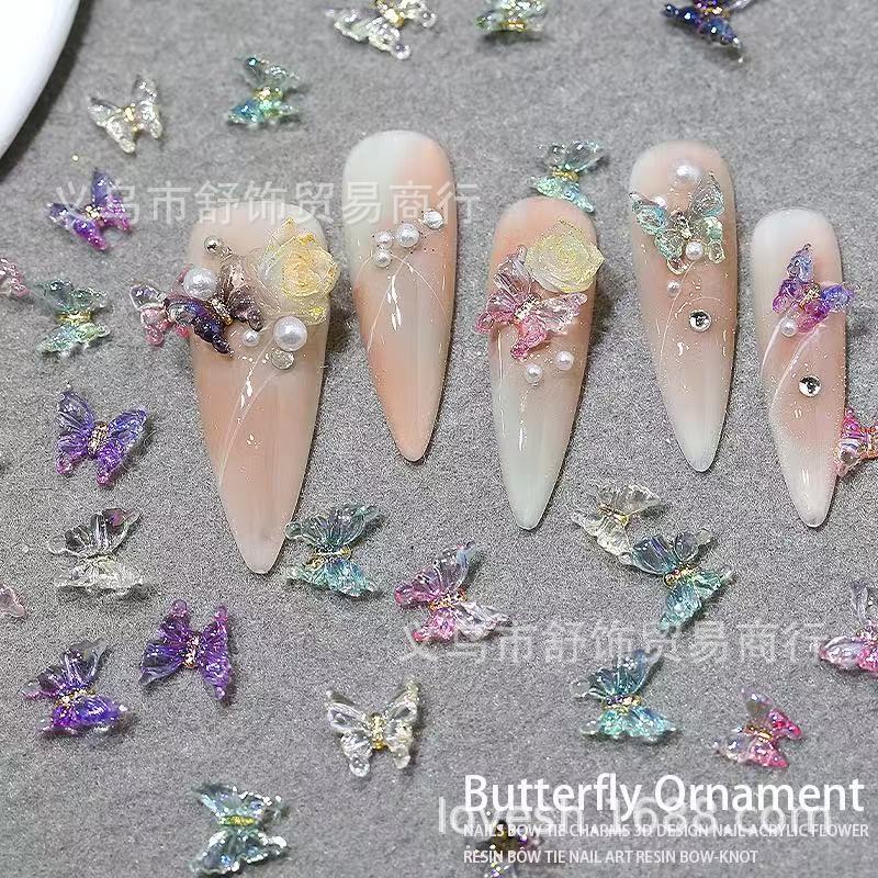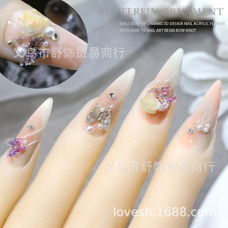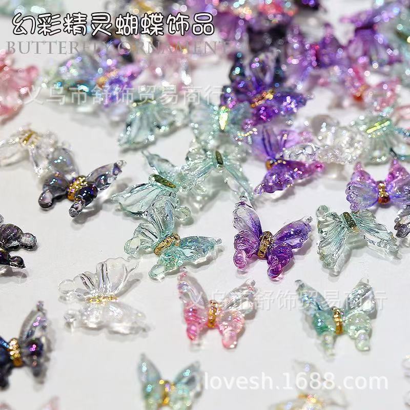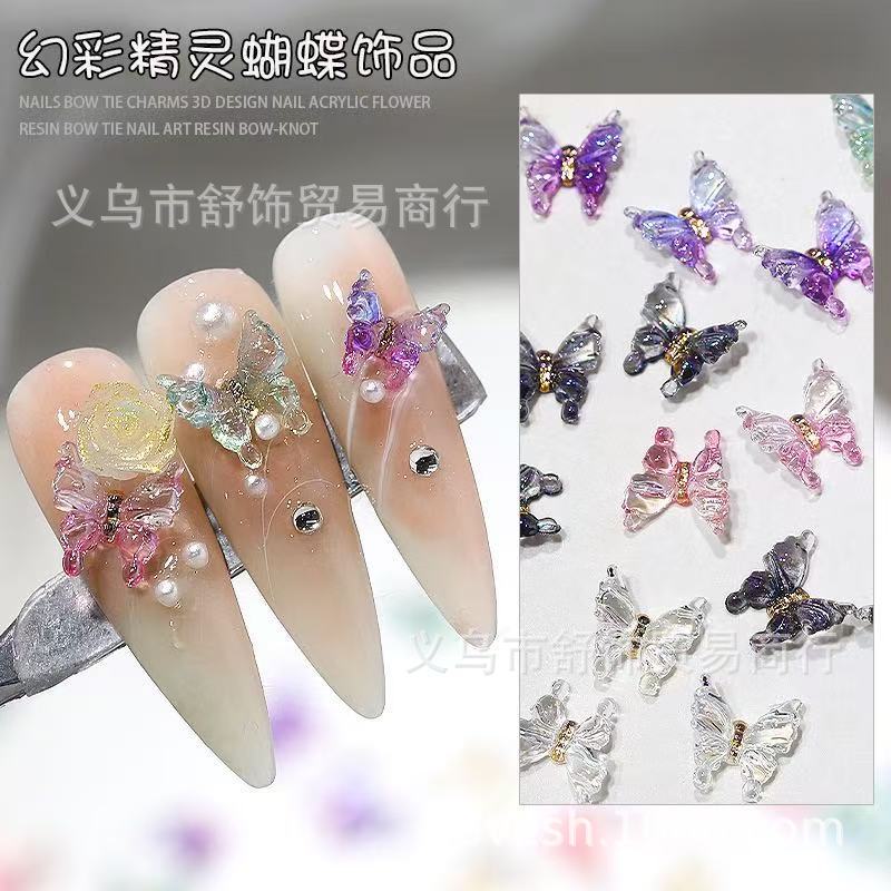 웨어러블 네일 장식 도매 심포니 엘프 나비 네일 아트 액세서리 컬러 아이스 투명 수지 3 차원 네일 다이아몬드 액세서리