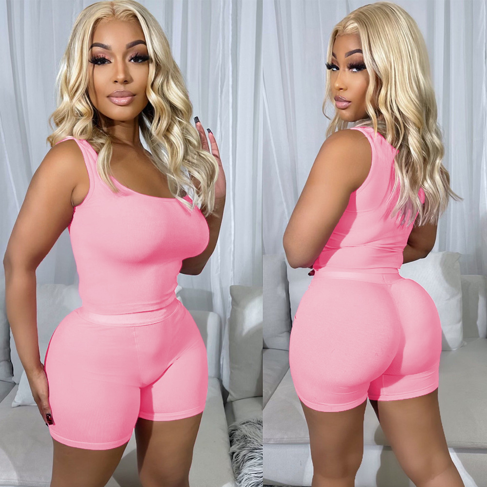 CN0209 유럽과 미국의 새로운 스타일 의류 Amazon AliExpress 독립 스테이션 솔리드 컬러 핏 스트립 스포츠 투피스 슈트