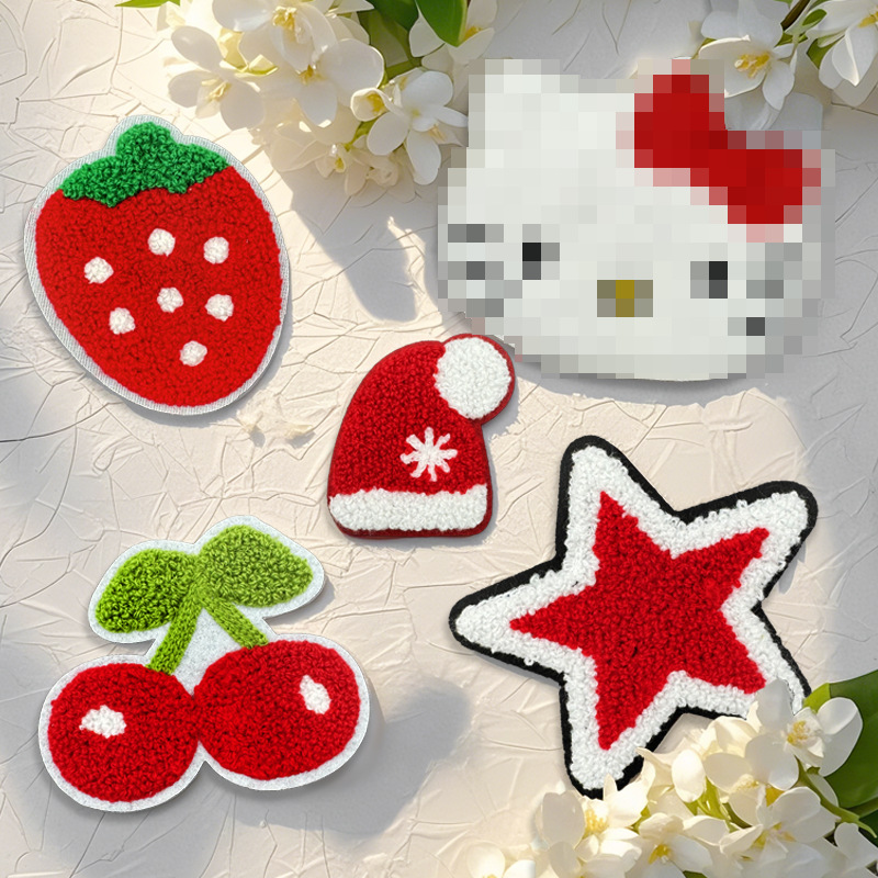 만화 딸기 헬로키티 핑크 시리즈 수건 자수 패치 재킷 바지 장식 자수