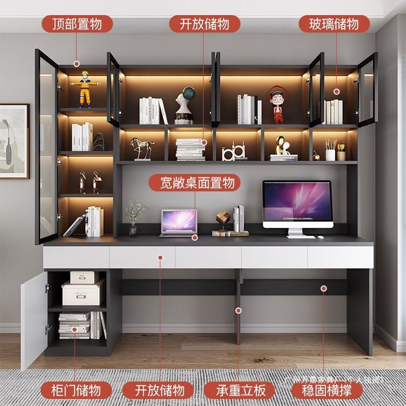 더블 책상 책장 일체형 테이블 라이트 럭셔리 사무실 책상 컴퓨터 책상 홈 데스크탑 책상 학생 학습 테이블