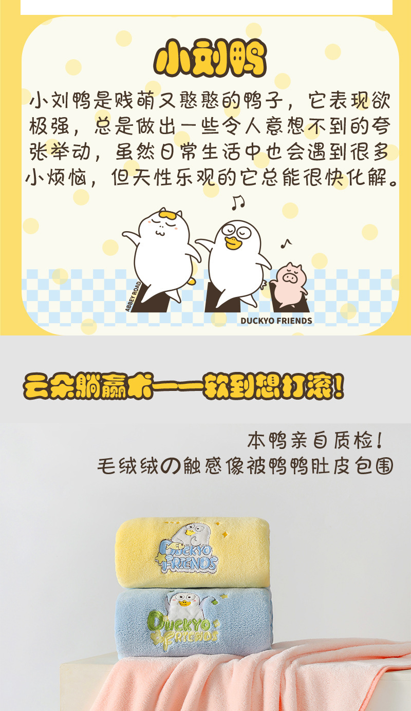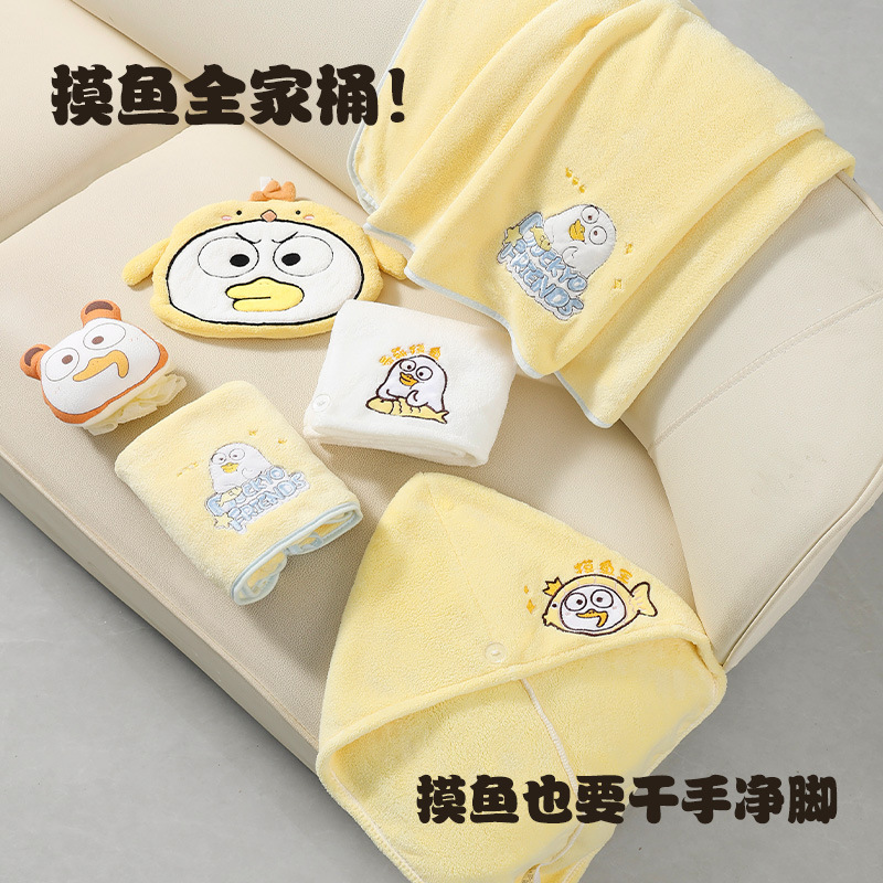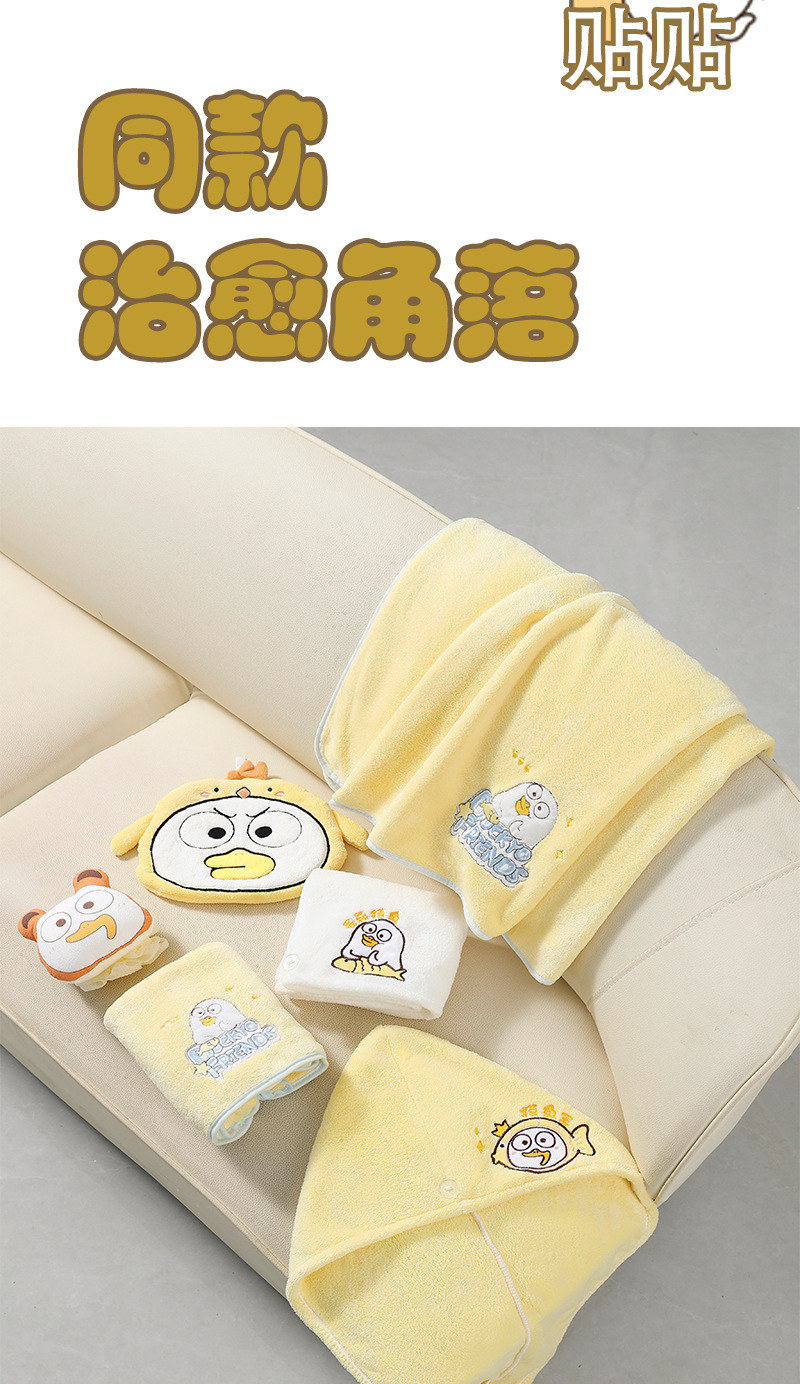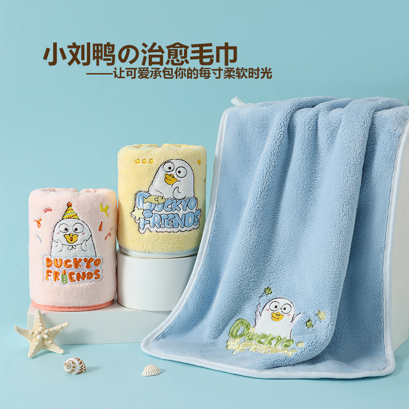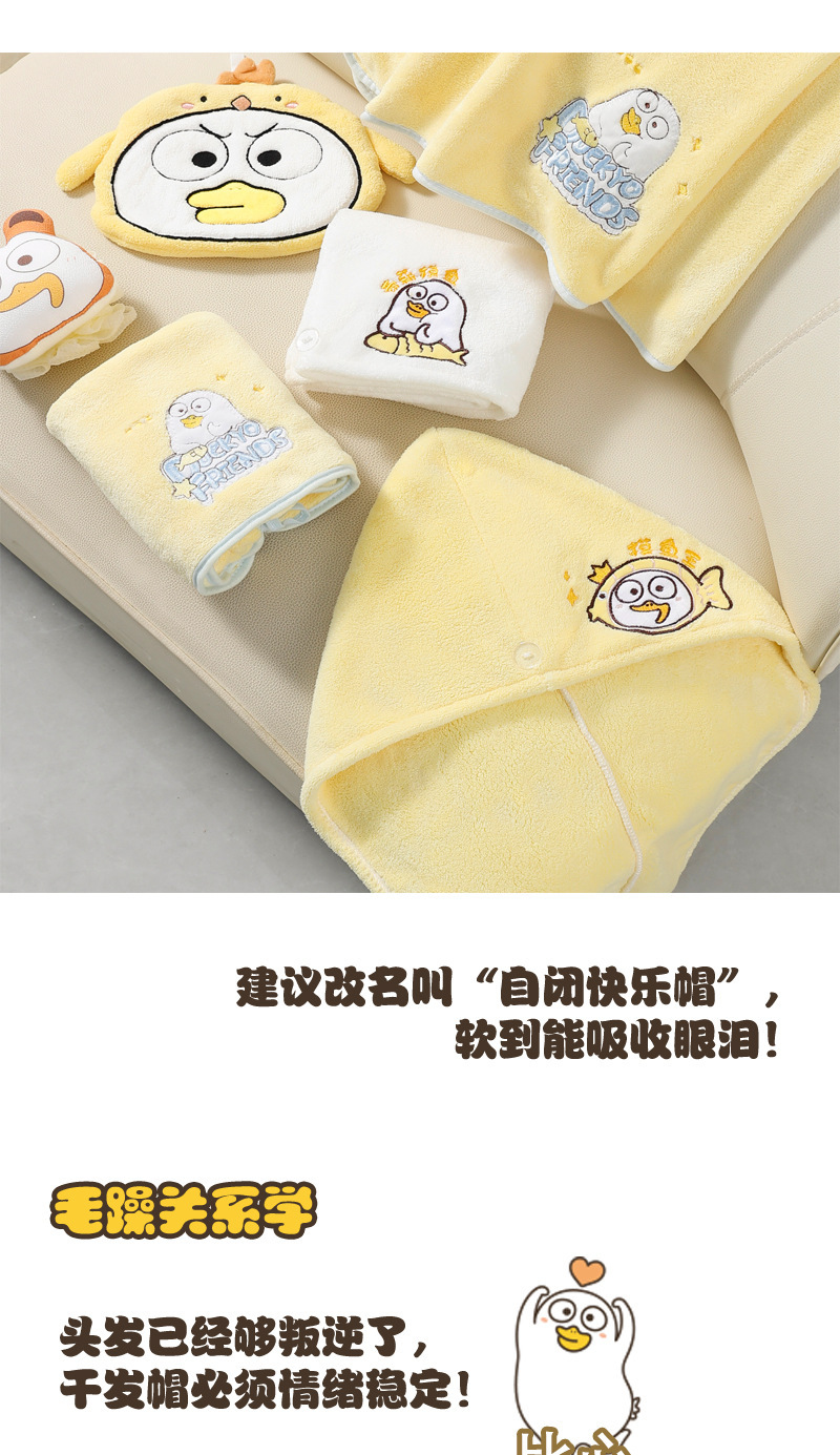 Xiao Liu Duck 정품 수건 목욕 타월 만화 수건 머리 건조 모자 산호 양털 모든 사람을위한 빠른 건조 강한 흡수 세트