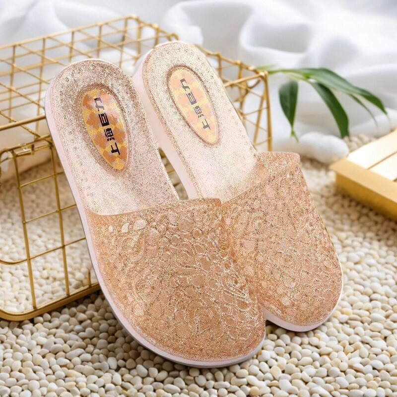 여성용 상하이 Juli 크리스탈 바오터우 슬리퍼, 가정용 실내 및 실외 캐주얼 샌들, 통기성 욕실 목욕 슬리퍼