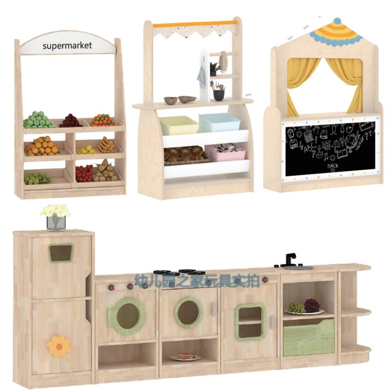 유치원 어린이 인형 집 코너 슈퍼마켓 판매대 판매 캐비닛 시뮬레이션 매장 선반 주방 스토브 장난감