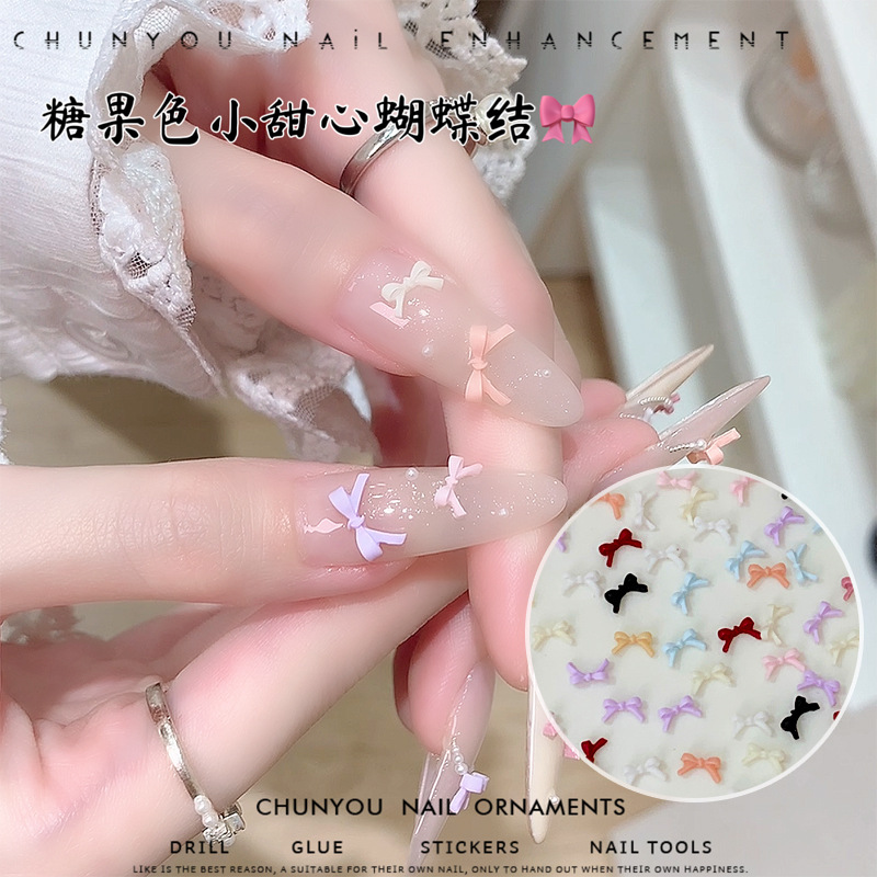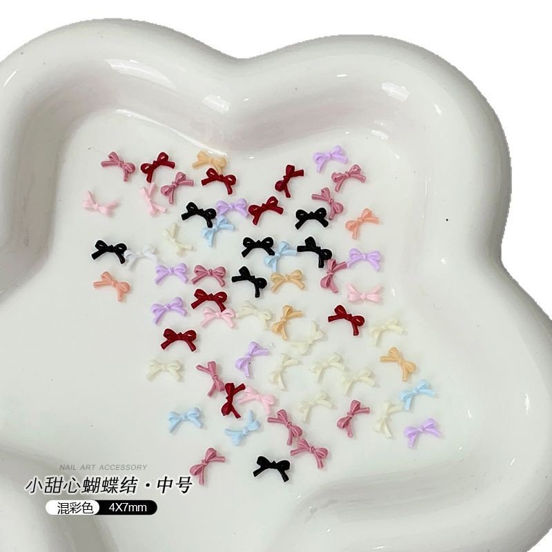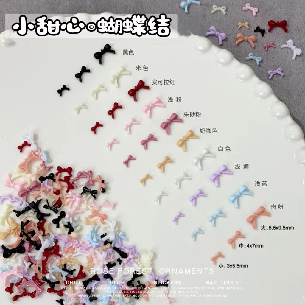 100 미니 나비 매니큐어 액세서리, 크고 작은 혼합 액세서리, 컬러 핑크 레드 레진 매니큐어 다이아몬드
