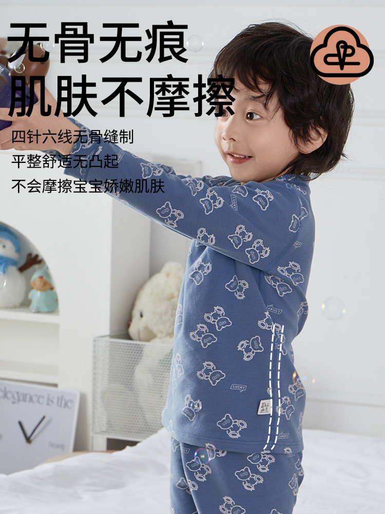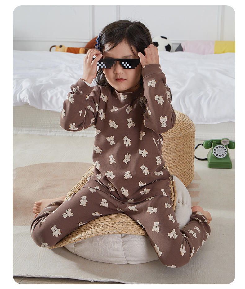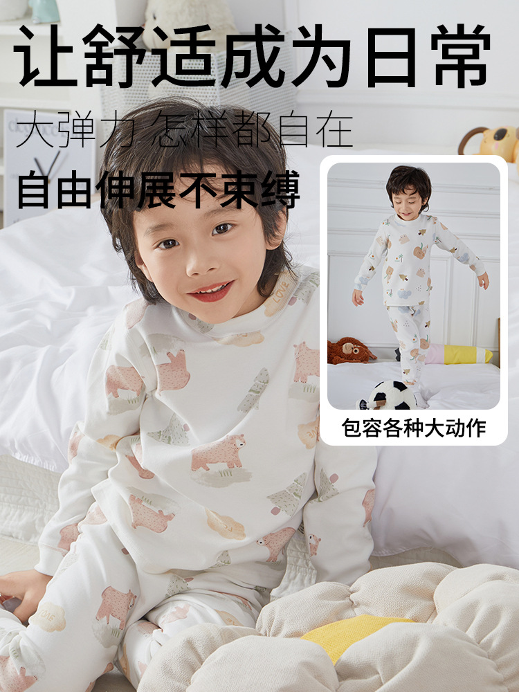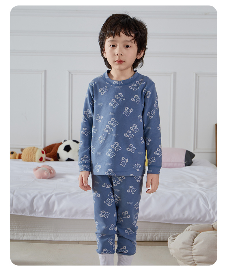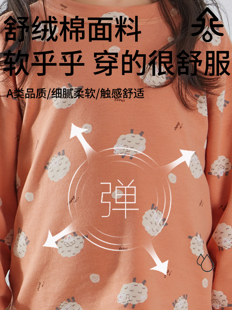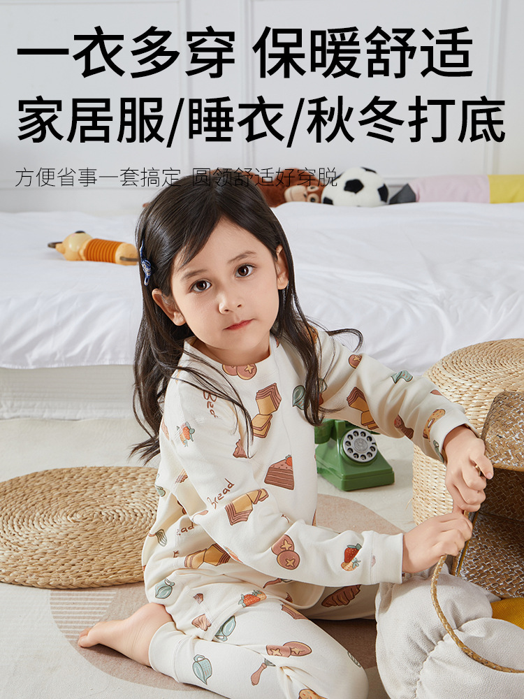 어린이 속옷 세트 소년 소녀 가을 옷과 바지 큰 어린이 뼈없는 벨벳 스트레치 홈 옷 따뜻한 잠옷
