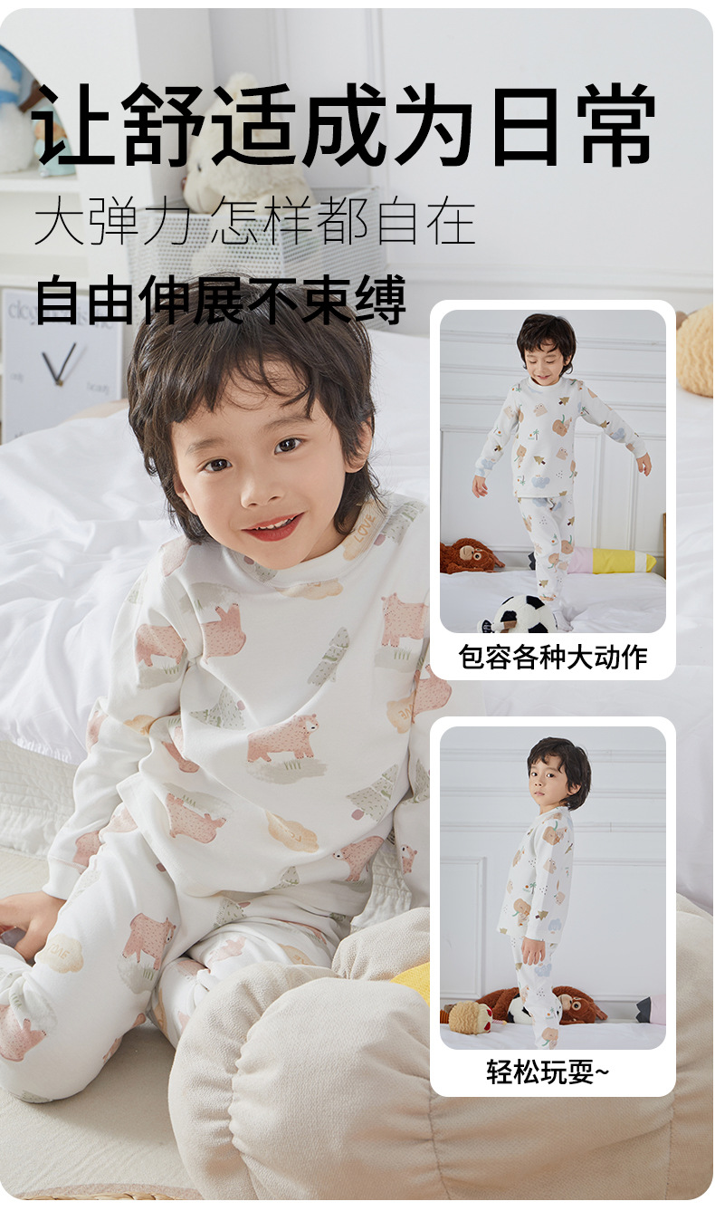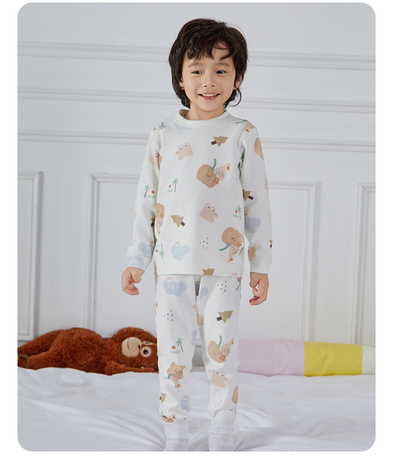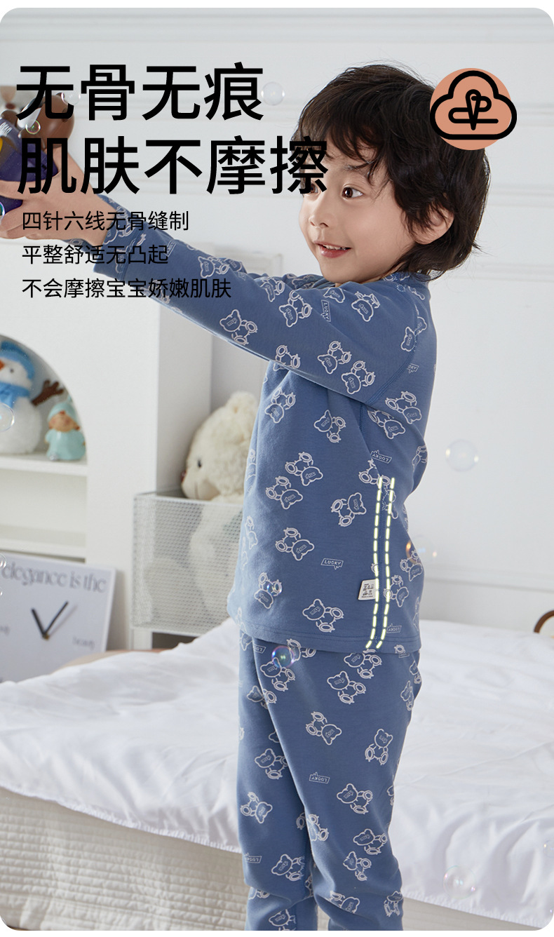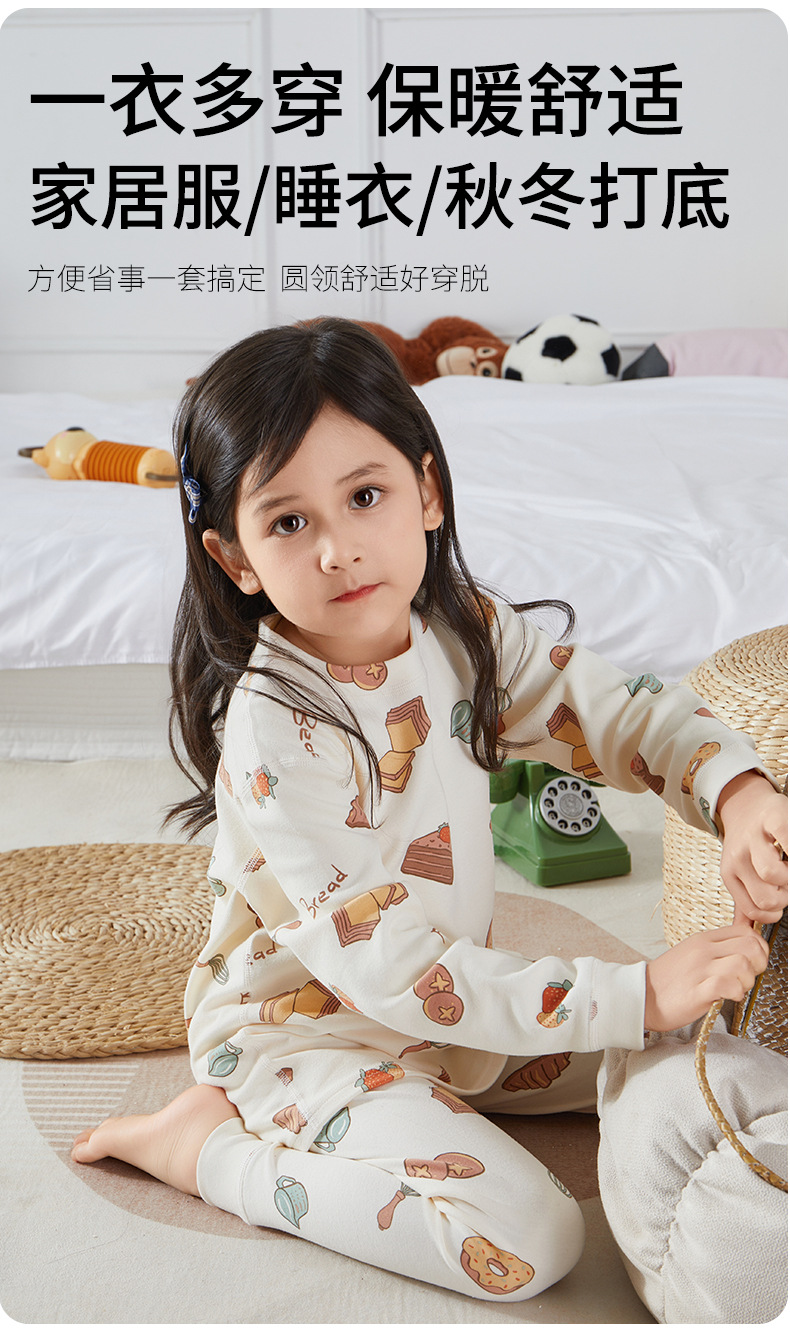 어린이 속옷 세트 소년 소녀 가을 옷과 바지 큰 어린이 뼈없는 벨벳 스트레치 홈 옷 따뜻한 잠옷