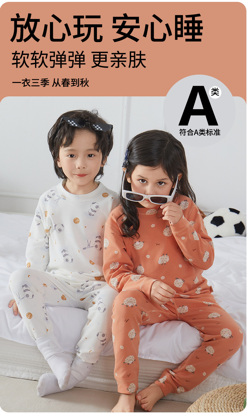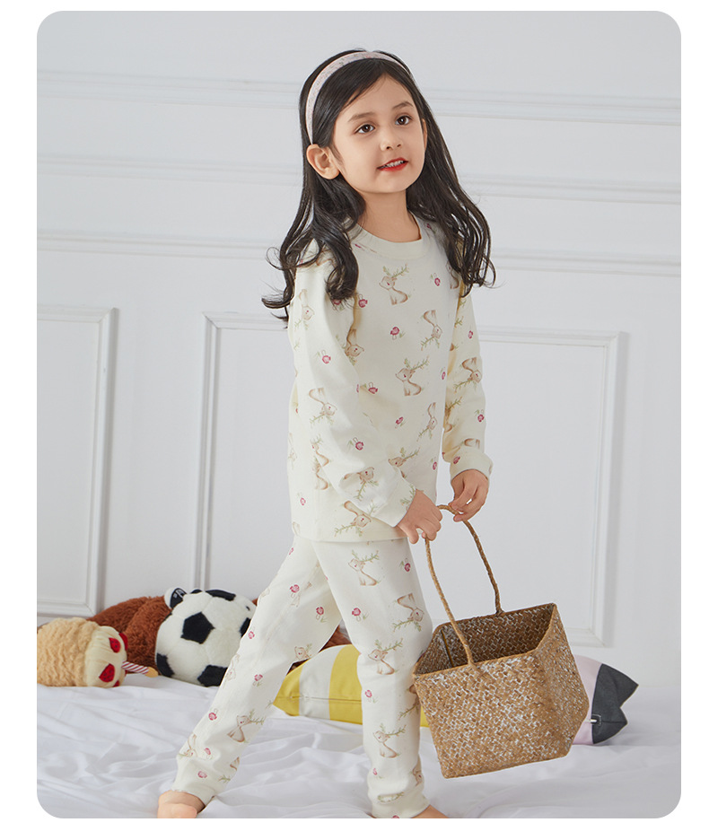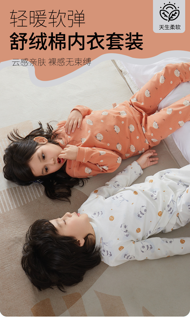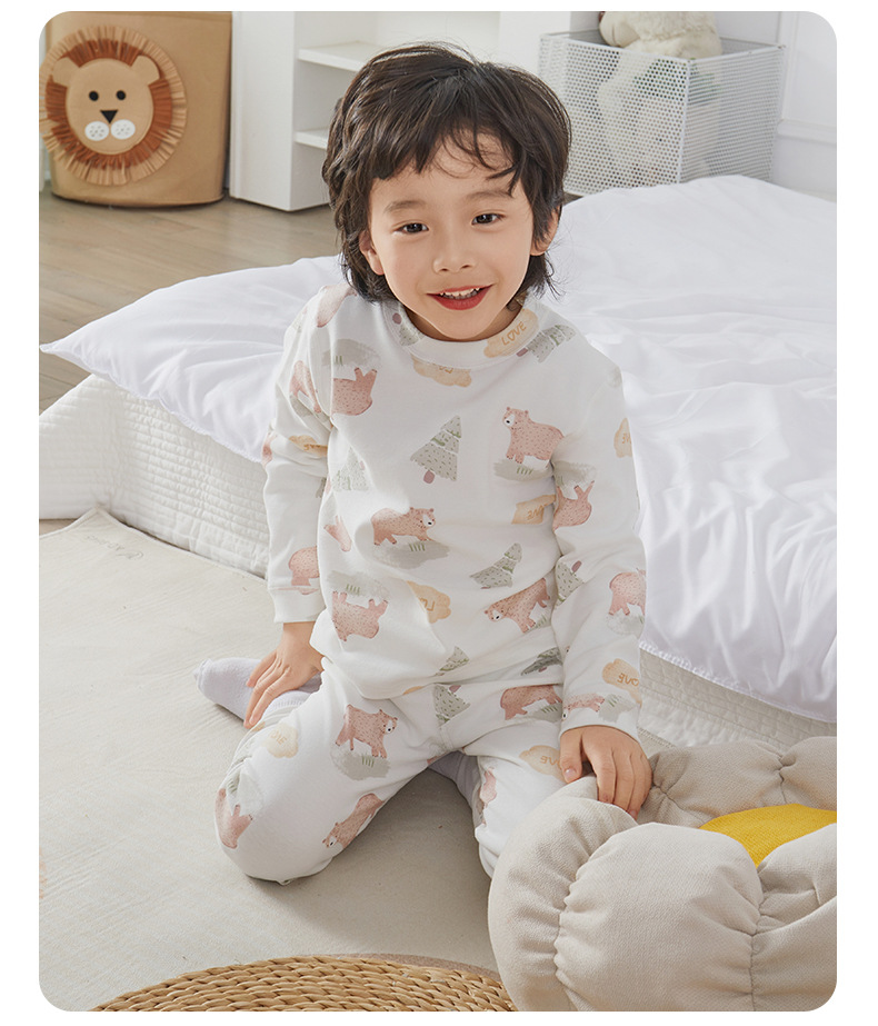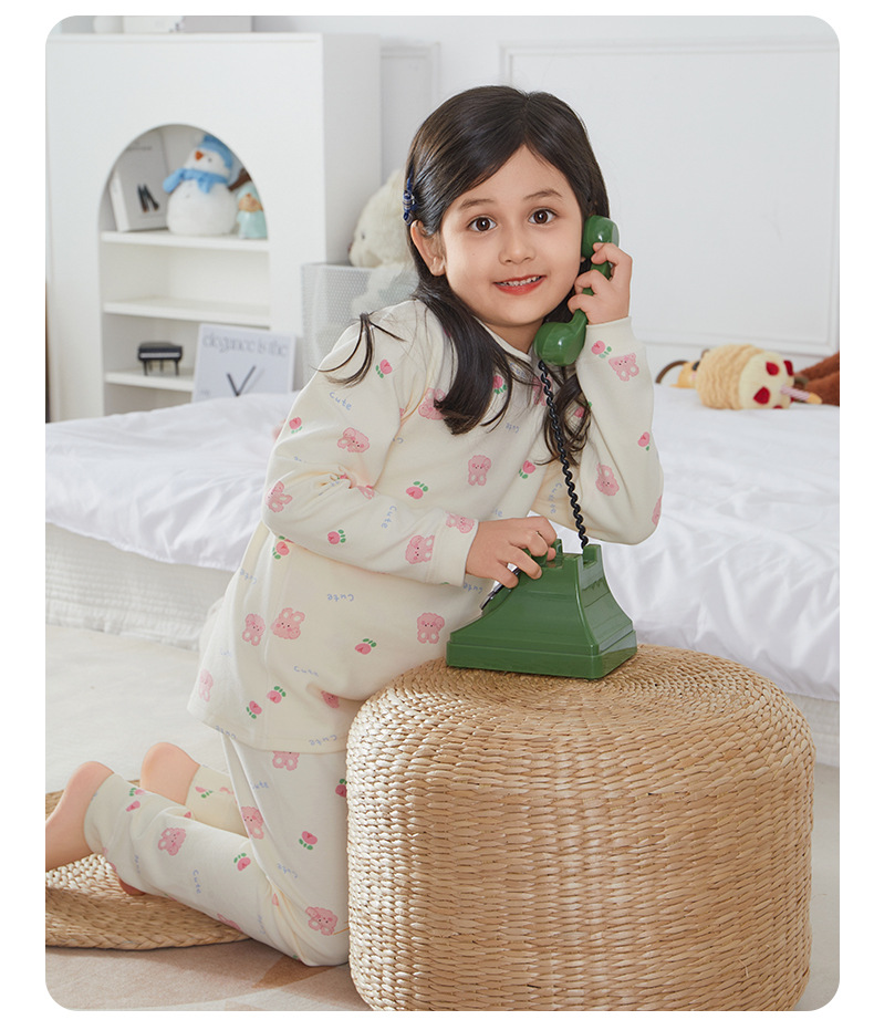 어린이 속옷 세트 소년 소녀 가을 옷과 바지 큰 어린이 뼈없는 벨벳 스트레치 홈 옷 따뜻한 잠옷