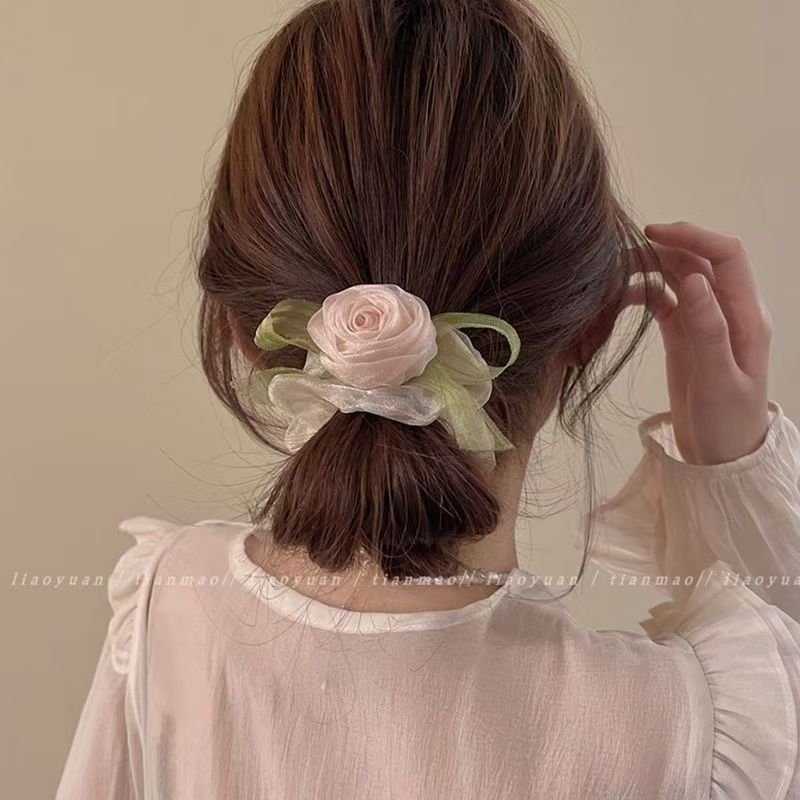 졸업 선물 슈퍼 페어리 헤드 로프 새로운 2025 여성 헤어 링 우아한 손목 꽃 신부 들러리 로즈 하이 엔드 헤어 액세서리